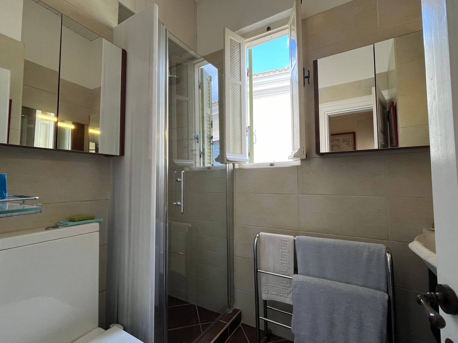 Stairs lead up to the hallway from which all rooms are accessed. There are two bedrooms, one with a view over Guildford street and the other looking towards the Town Hall square and the old Bank of Greece building. There is also a shower room just off the bedrooms.