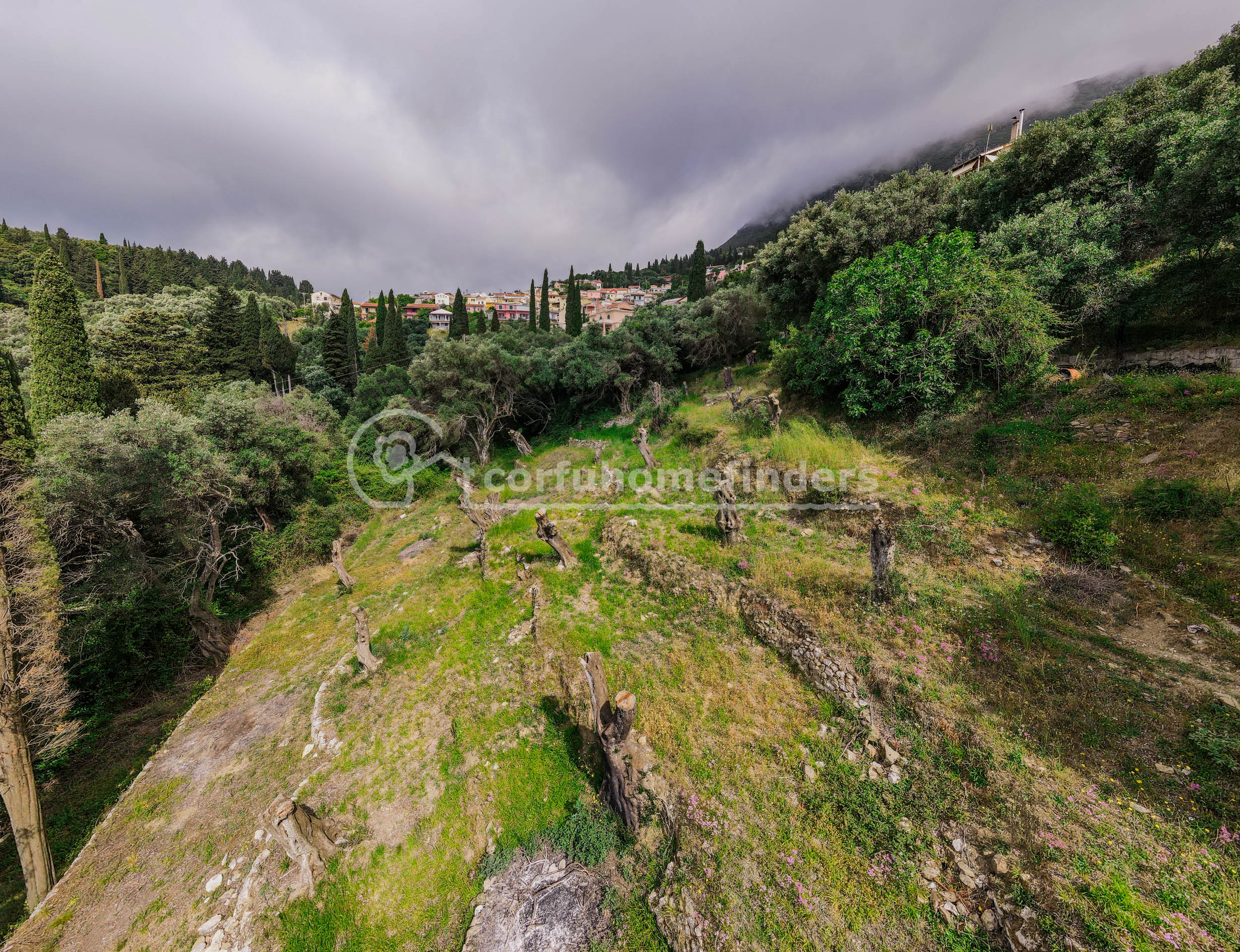 Rizaria plot is located at the lower end of Spartilas village in a quiet neighborhood with pretty views of the sea and Corfu town.