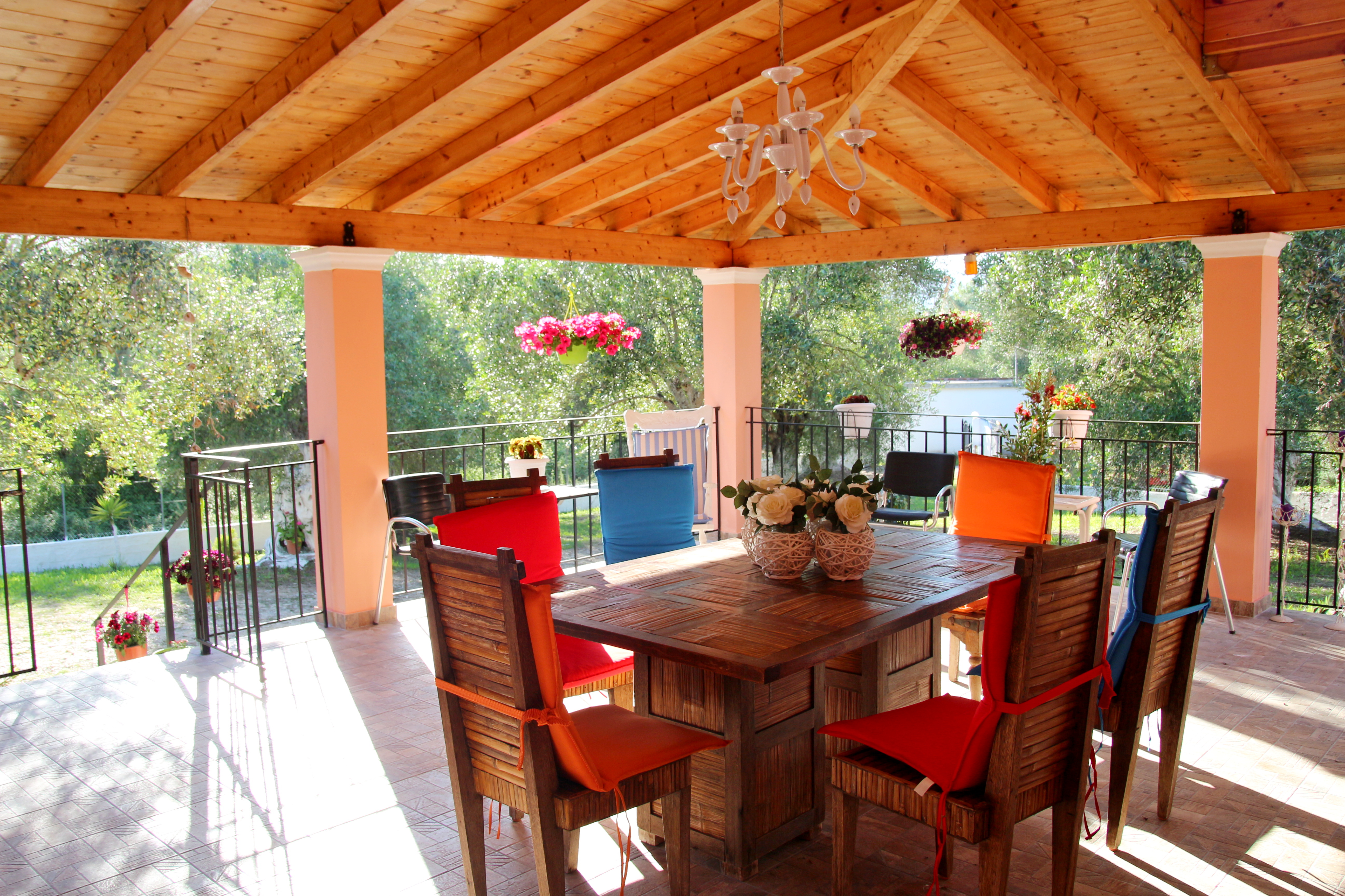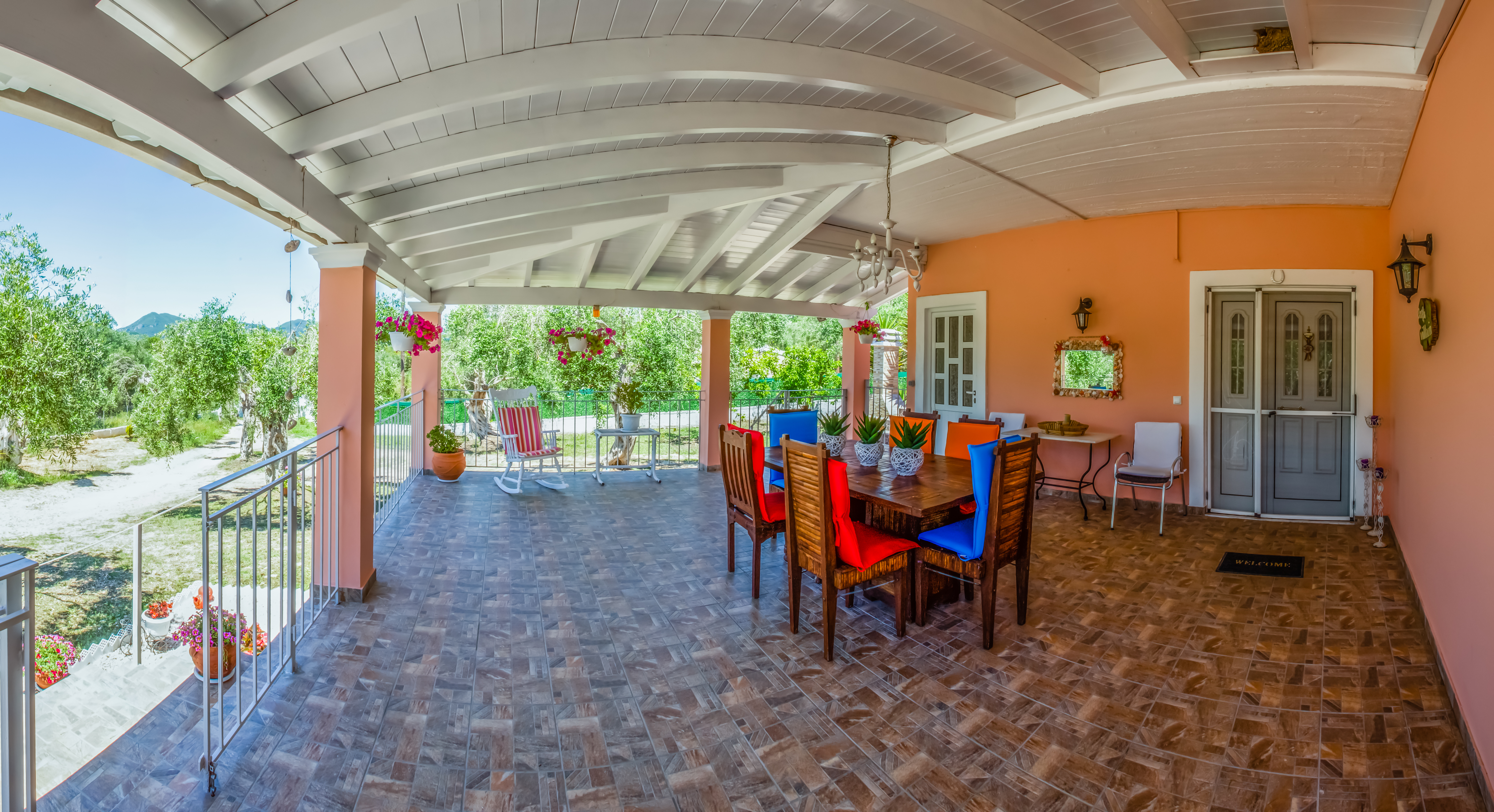 As you walk up the entrance steps to the house there is a large covered terrace perfect for dining and relaxing with a BBQ set off to one side.