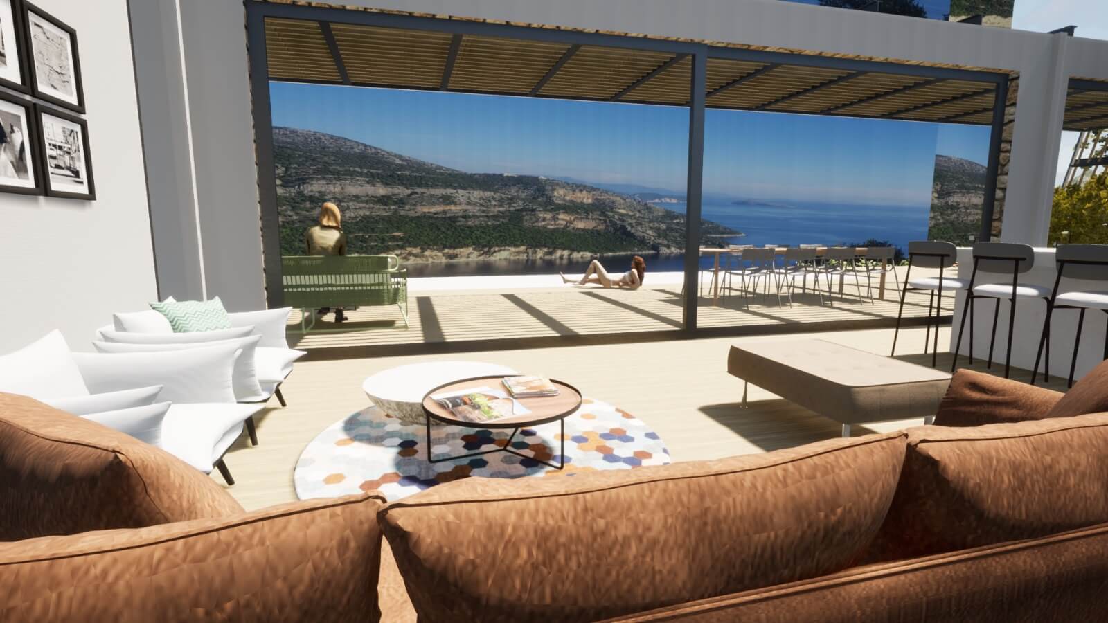 Both of the bays "Mikros Gialos" and "Sivota", which are only 3-5 minutes drive away have all amenities - tavernas, a supermarket, water sports, bars, etc. The main town of Lefkada with its pretty plaza and esplanade, is only a 10 minute drive.