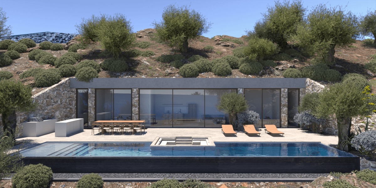 The Ormos project includes 10 off-plan villas (nature houses), each built on a plot of 1000 - 1500 m2 m2. Completion is due within 18-24 months.