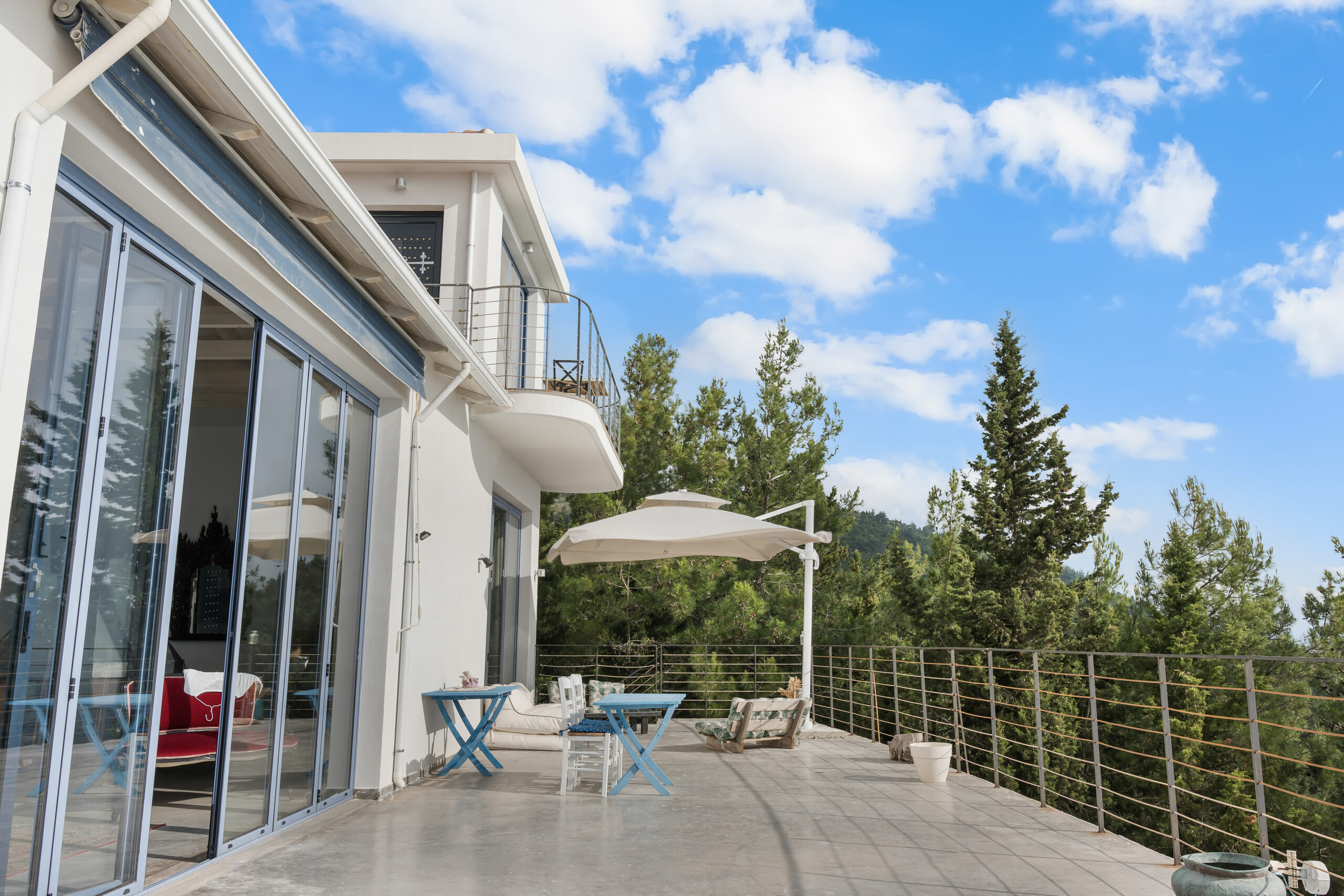 The property is set on a hillside, 360m above the sea in a nature reserve adjacent to the traditional village of Athani, with easy access to the villages of Vasiliki and the fishing village of Agios Nikitas. It enjoys panoramic views across the western part of the island, which is still largely untouched by development, and is close to two fabulous beaches - Egremni and Porto Katsiki.