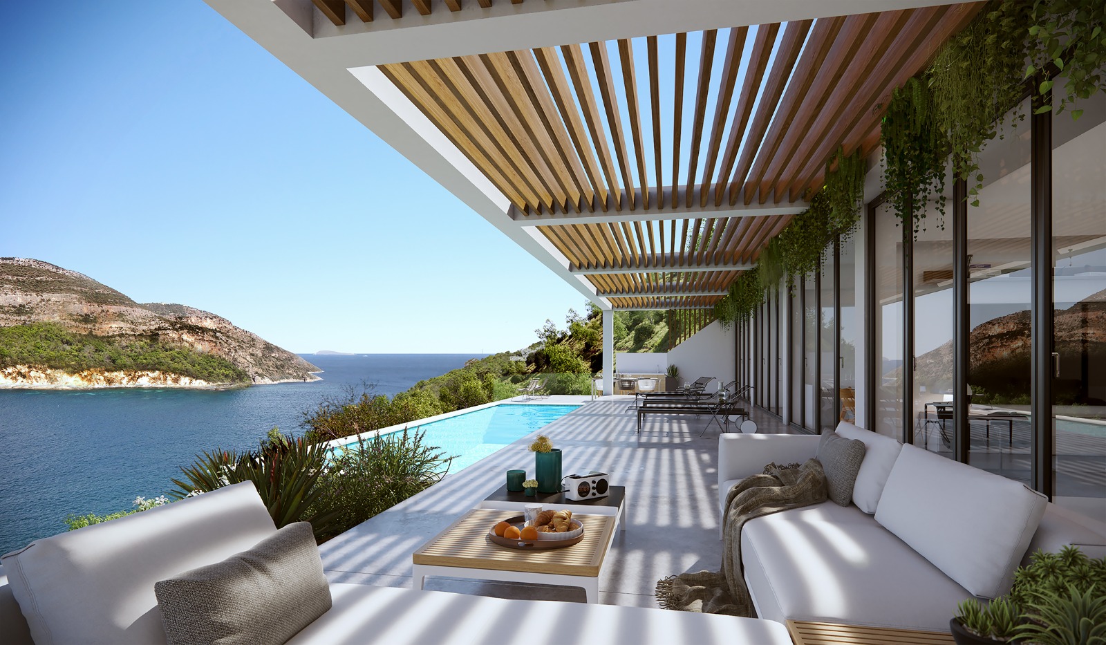 The land is a hillside plot, allowing each villa to have stunning views. There is also a small path down to the bay underneath the land.