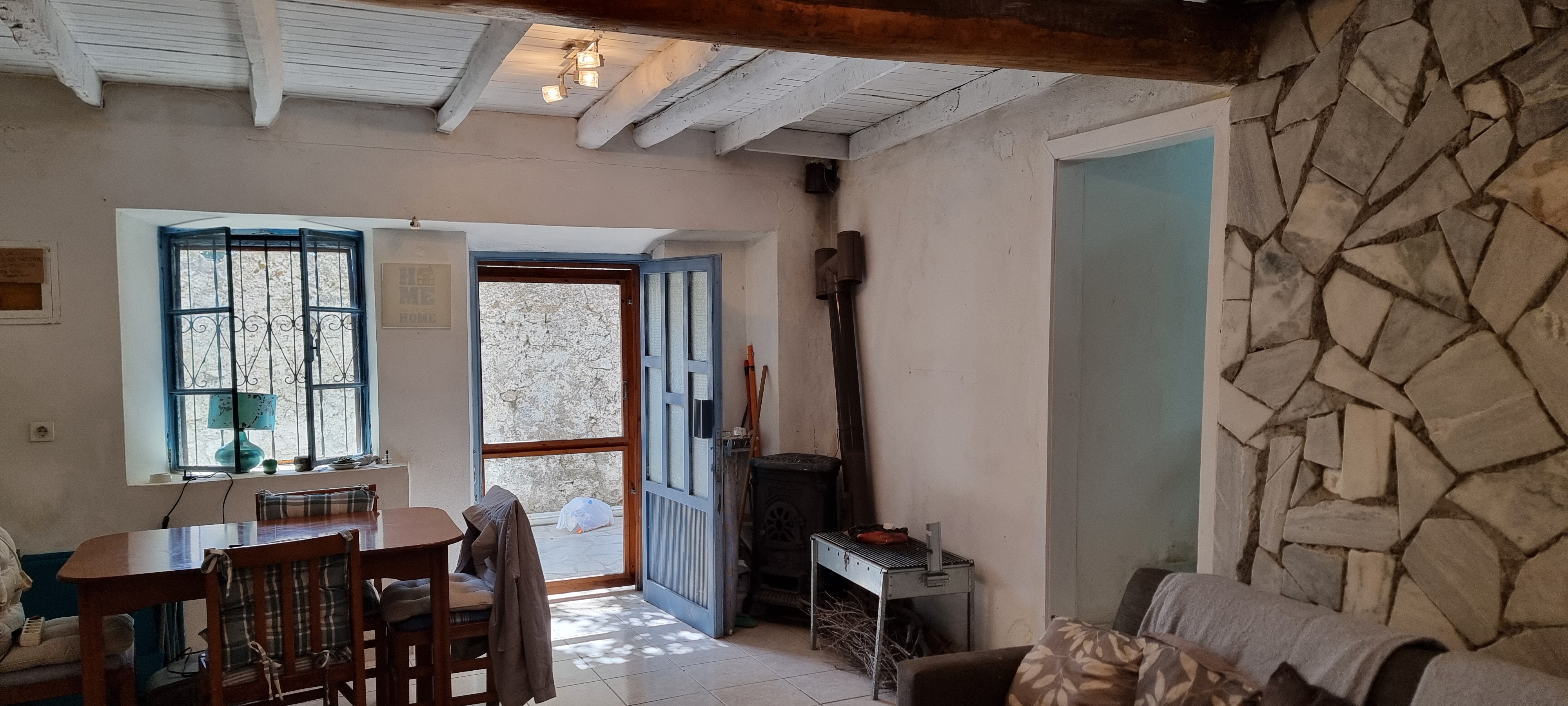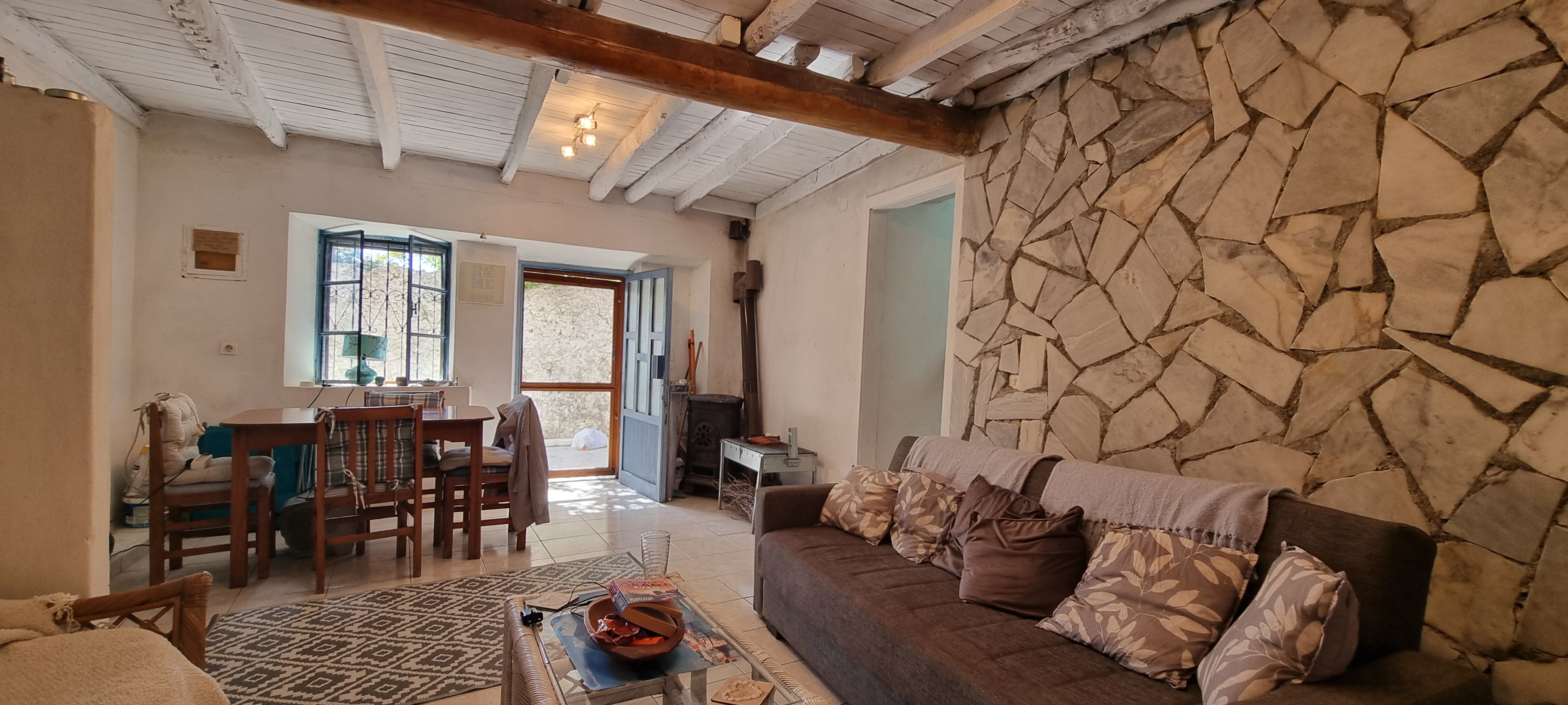 As you walk in you enter the living area with a wood burner for heating and nice stone features still intact.