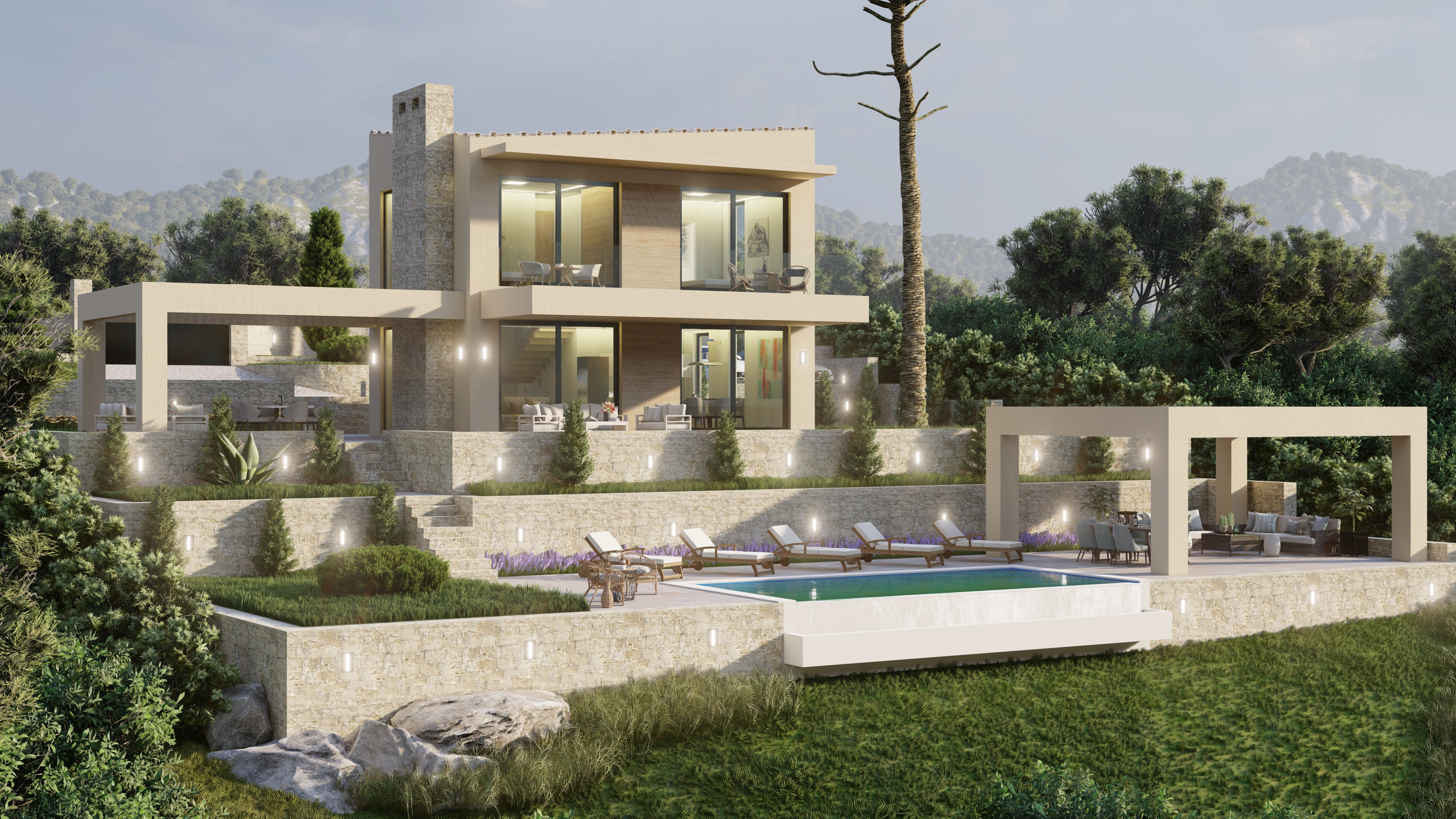 The plans are for a two-bedroom, two-bathroom villa of 119m2 (plus extra basement space) with a swimming pool.