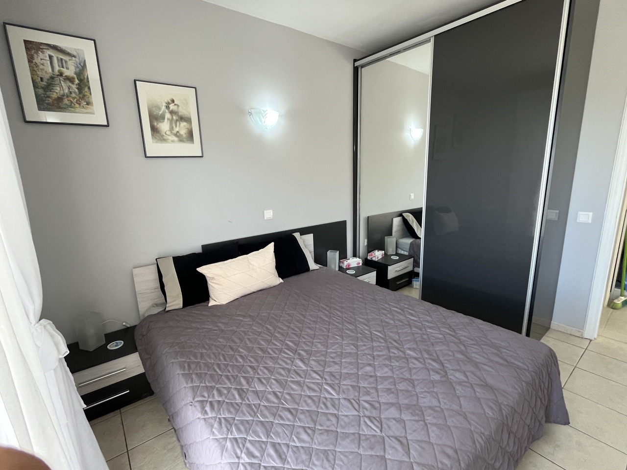 A separate double bedroom is next to the sitting room, with another set of balcony doors leading outside and enjoying the view.