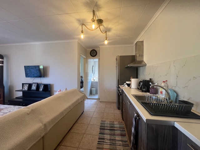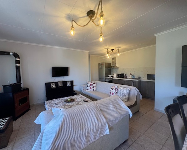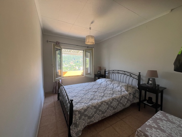 On the interior, entering the house, you will find an open plan kitchen and on the left hand a big window and access to the front balcony with amazing views over the village. Walking towards the kitchen on the right side, there are two bedrooms and a bathroom with a shower.