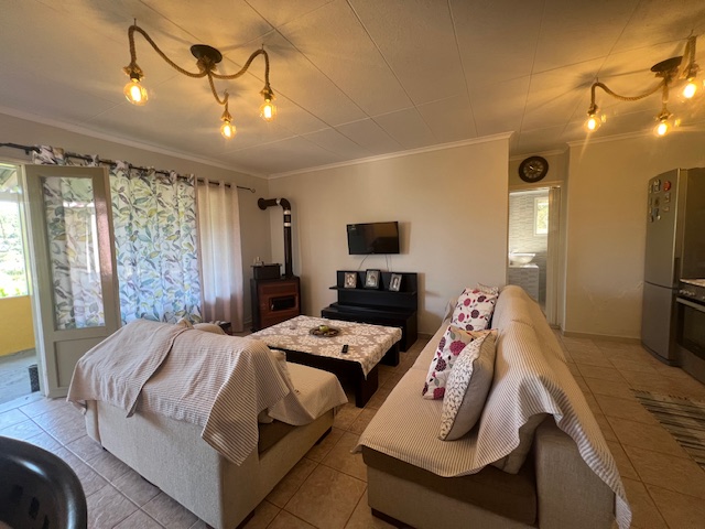 The house is built on a small sidehill, it is elevated offering views across the village of Petalia.