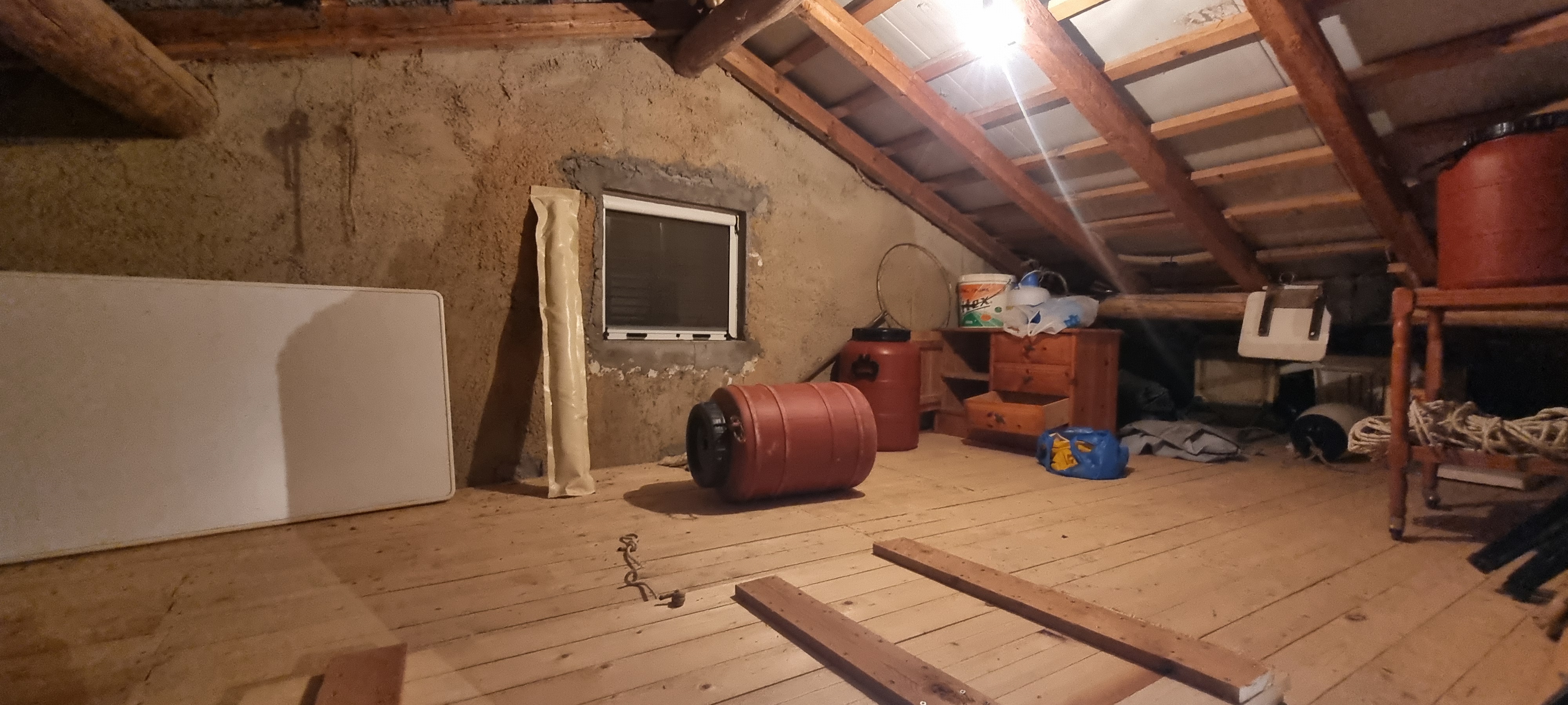 To the back is another smaller house - currently set up as a storeroom, living and kitchen area and WC. This one definitely needs modernising, but would make a very nice "tiny home" or optional rental space - it has a traditional wood burner installed and also an open fireplace.