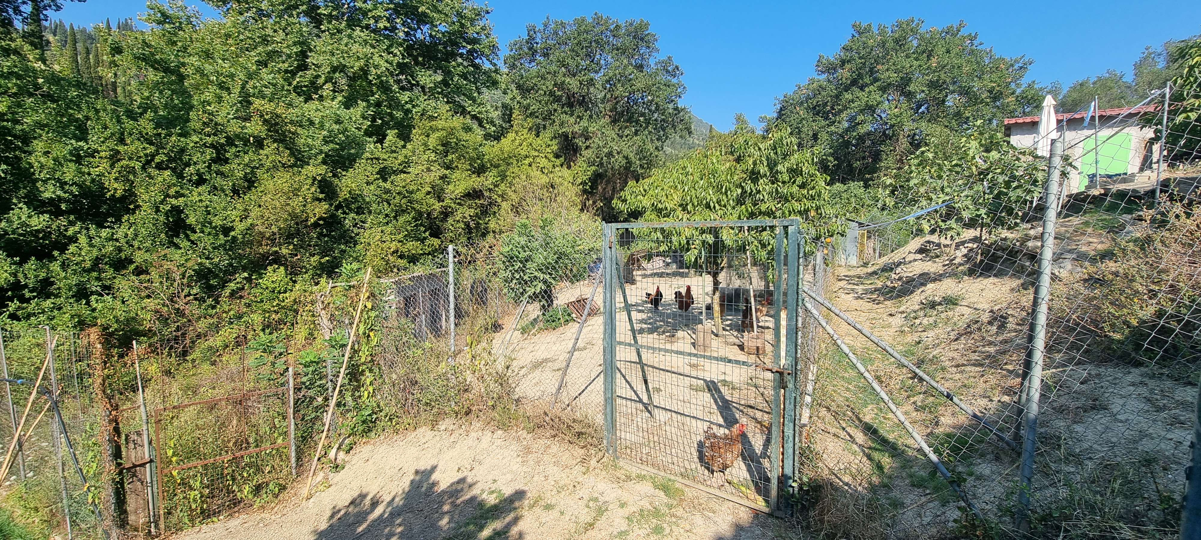 The land of 2200 m2 is fully cultivated and has lots of vegetables, fruit trees, olive trees and a chicken coop - chickens not included!