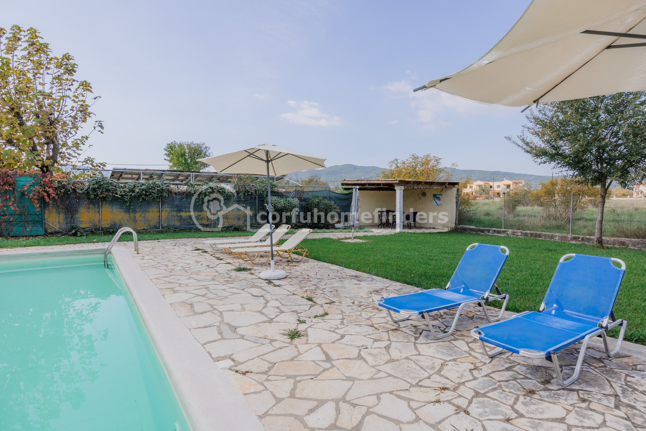 Villa Ermione is part of a small development of houses on the outskirts of Giannades. A private gate leads into the front paved area of the house where there is enough parking for two cars.