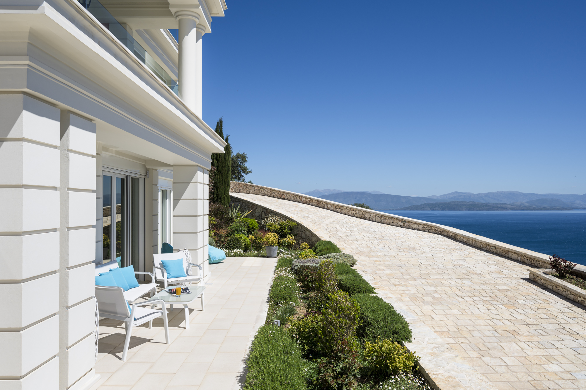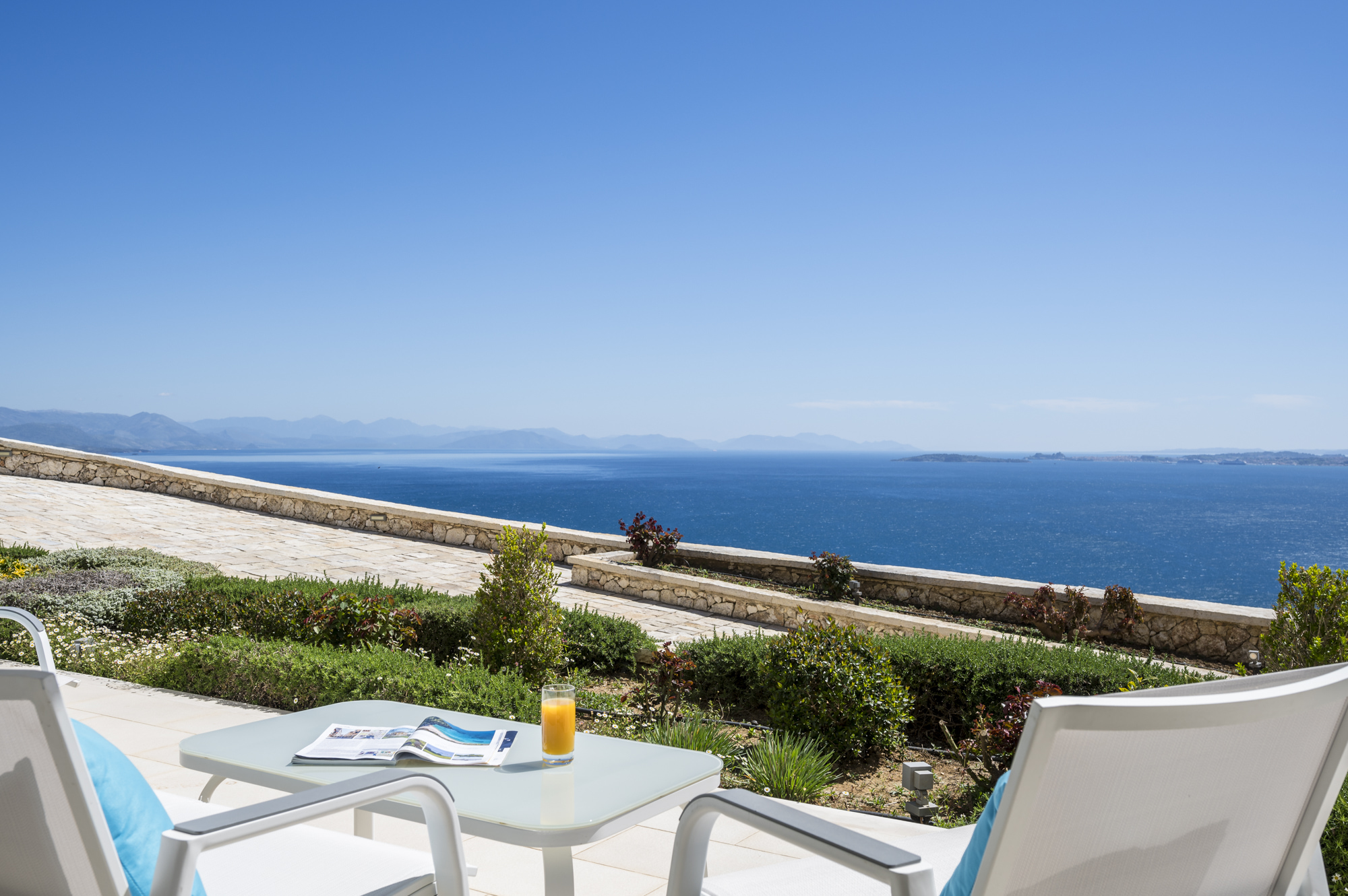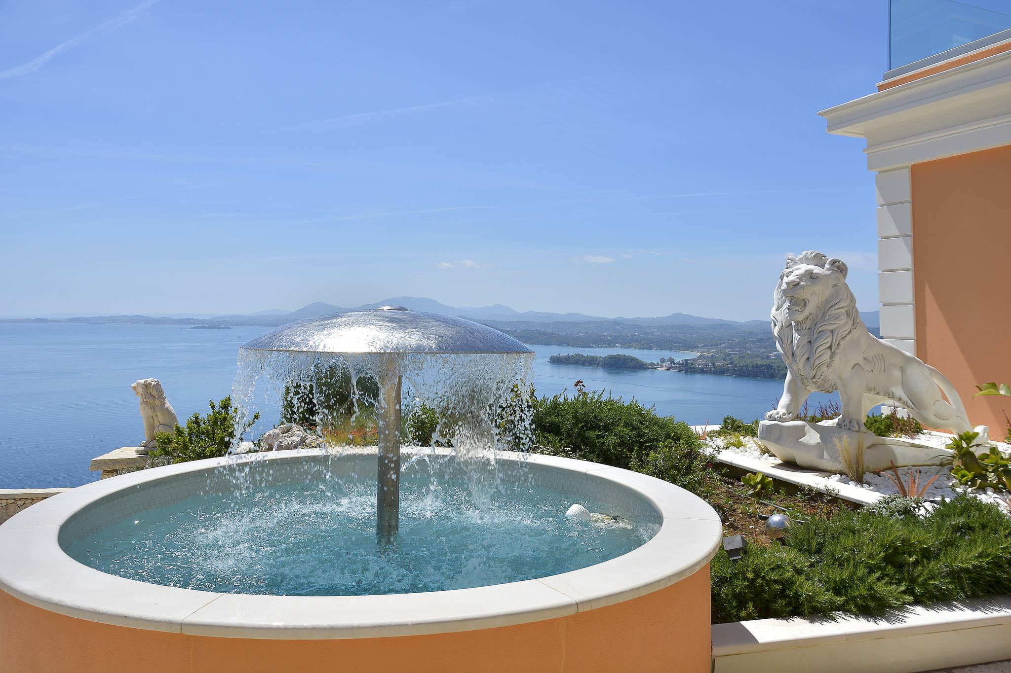 Villa Leone sits at the side of a hill overlooking the eastern coastline of the island, from Ipsos bay all the way to Corfu Town and beyond, and across the island to the west coast sunsets.