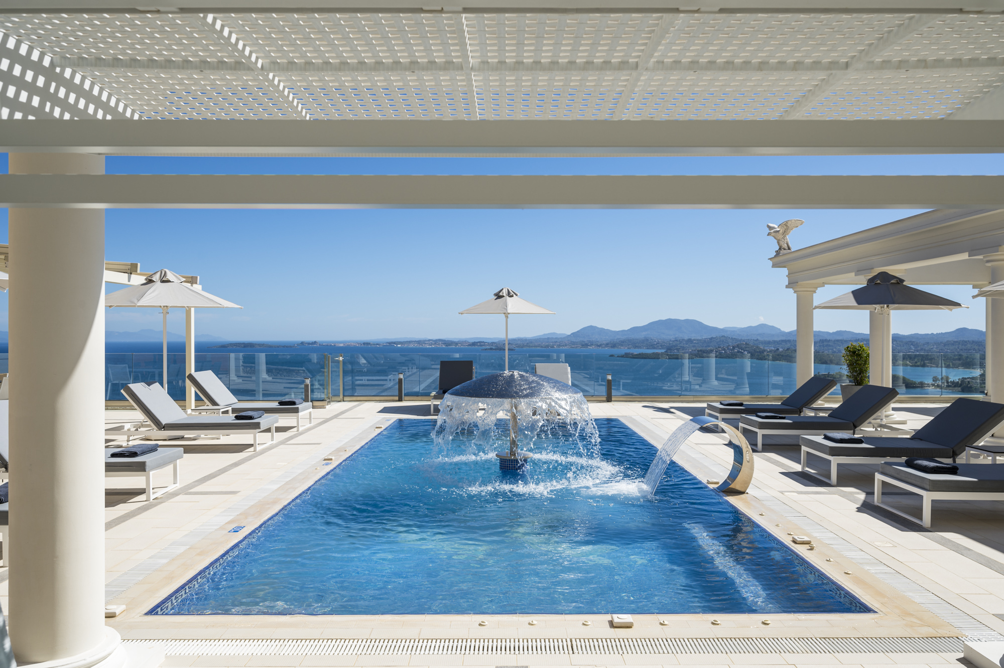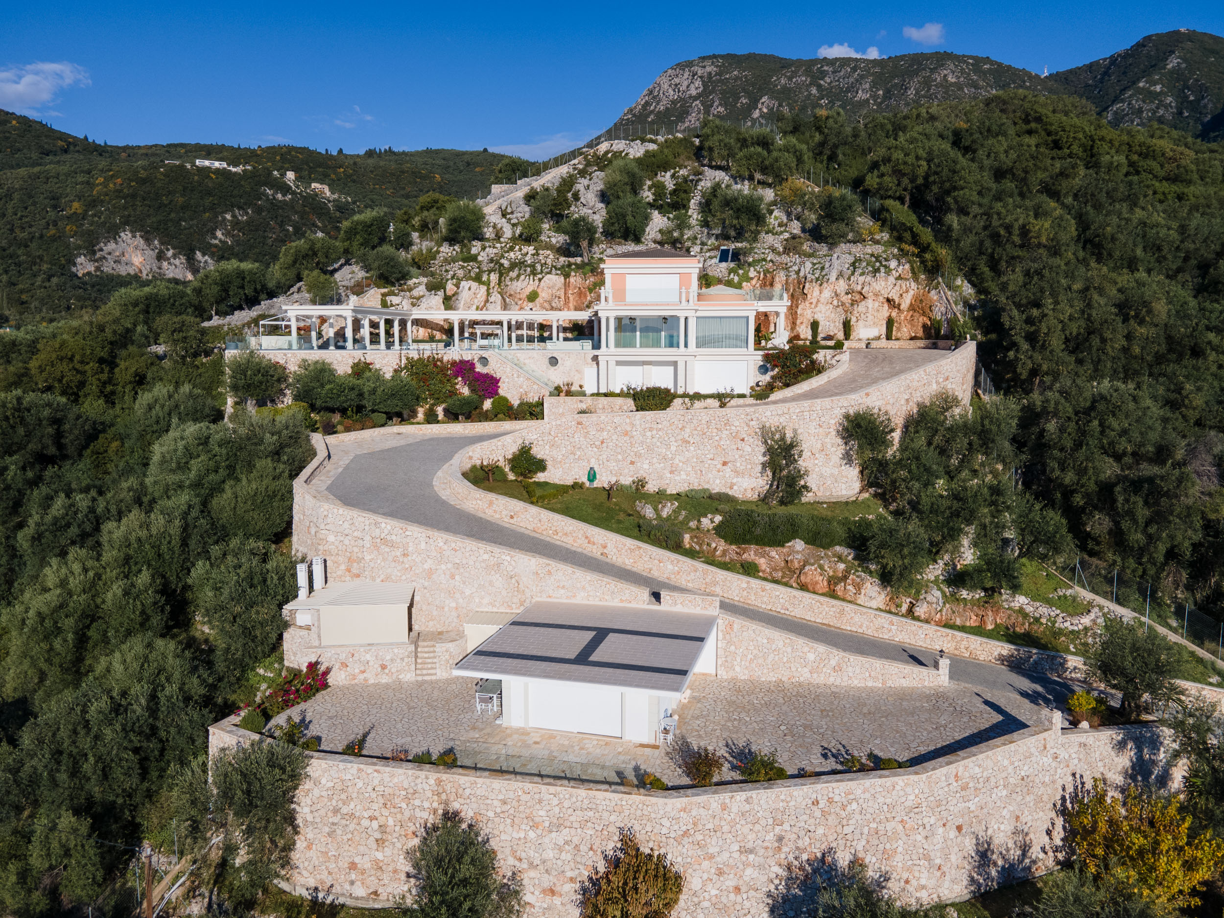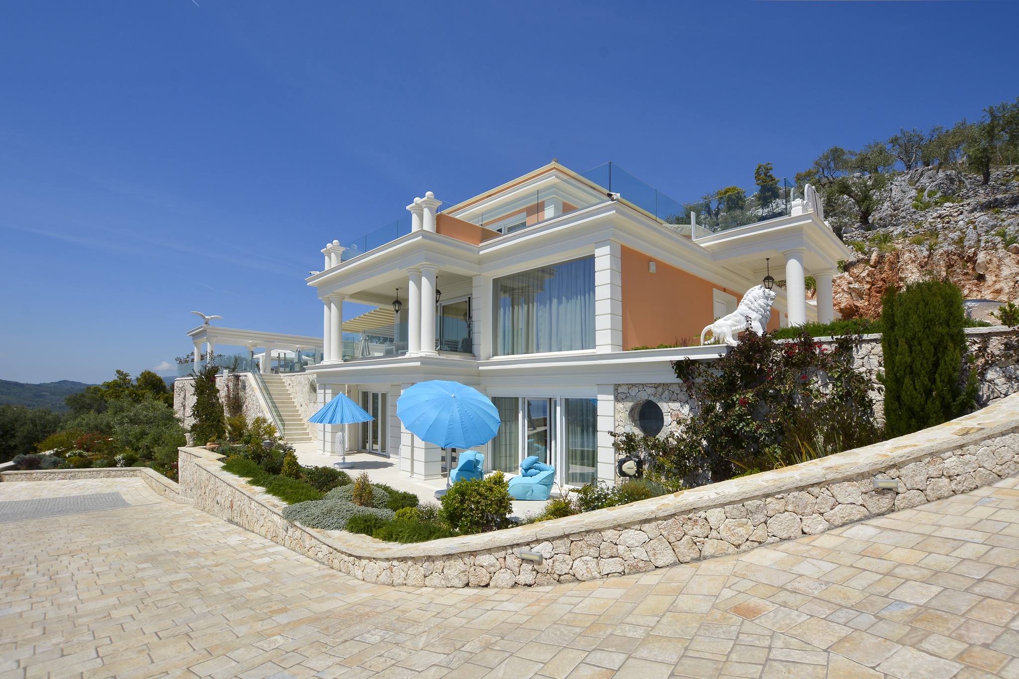 Villa Leone sits at the side of a hill overlooking the eastern coastline of the island, from Ipsos bay all the way to Corfu Town and beyond, and across the island to the west coast sunsets.