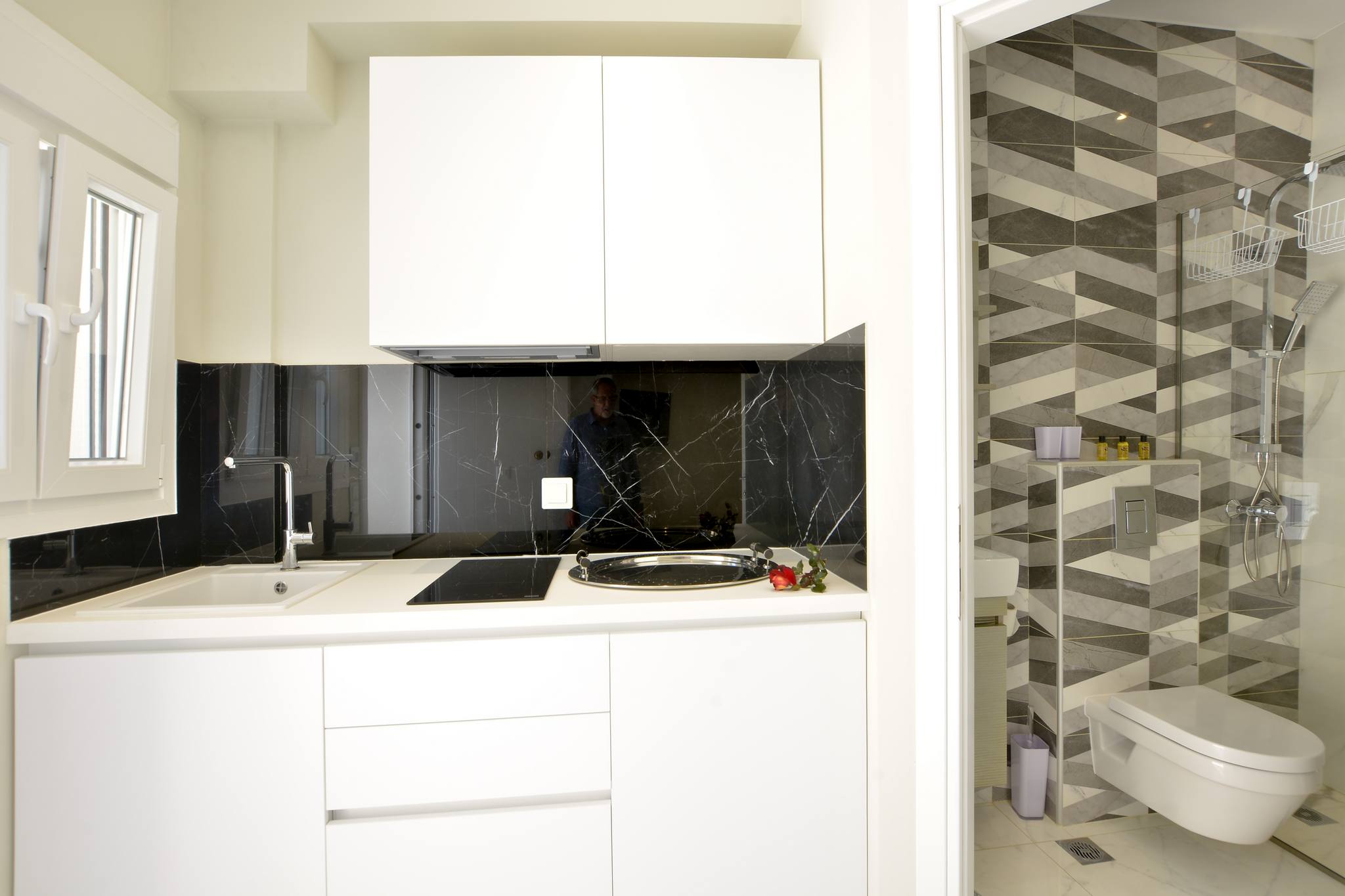 Discretely tucked away directly below the villa is the two bedroom guest house with terrace and BBQ area. This little house has a kitchen with island and a quaint sitting area.