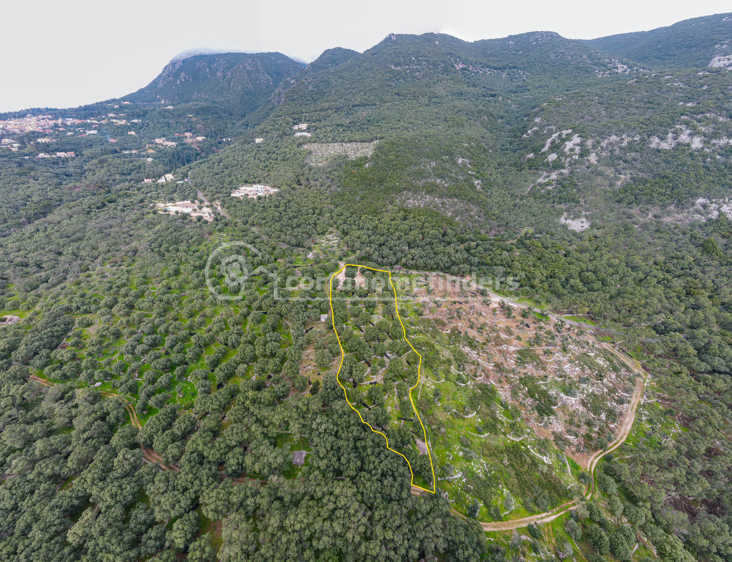 This large, gently sloping plot is situated on the mountainside facing south, with views across towards Corfu Town. The road leads from Spartilas to Barbati and is largely undeveloped, ensuring a peaceful atmosphere.