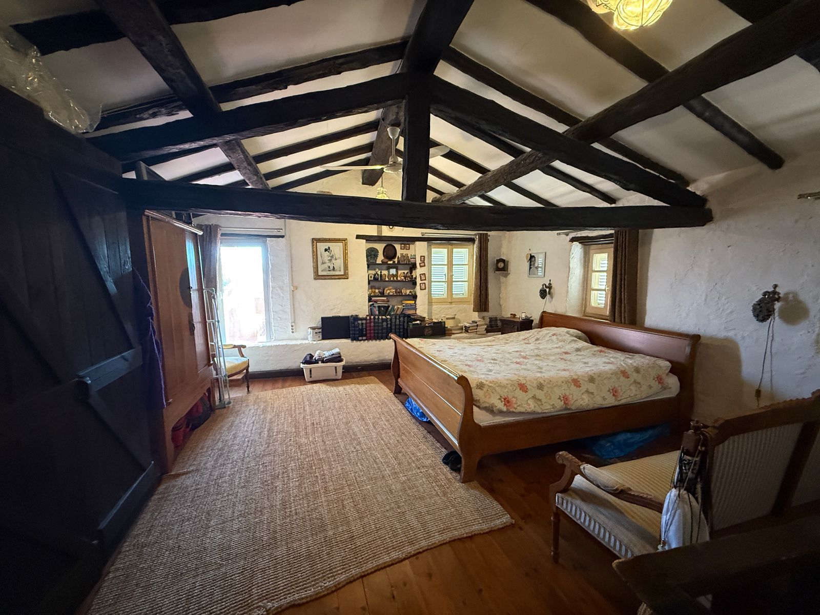 Upstairs is a large master bedroom, again with exposed roof beams, a further bedroom and another shower room. A balcony is accessed from the main bedroom, with pretty distant views.
