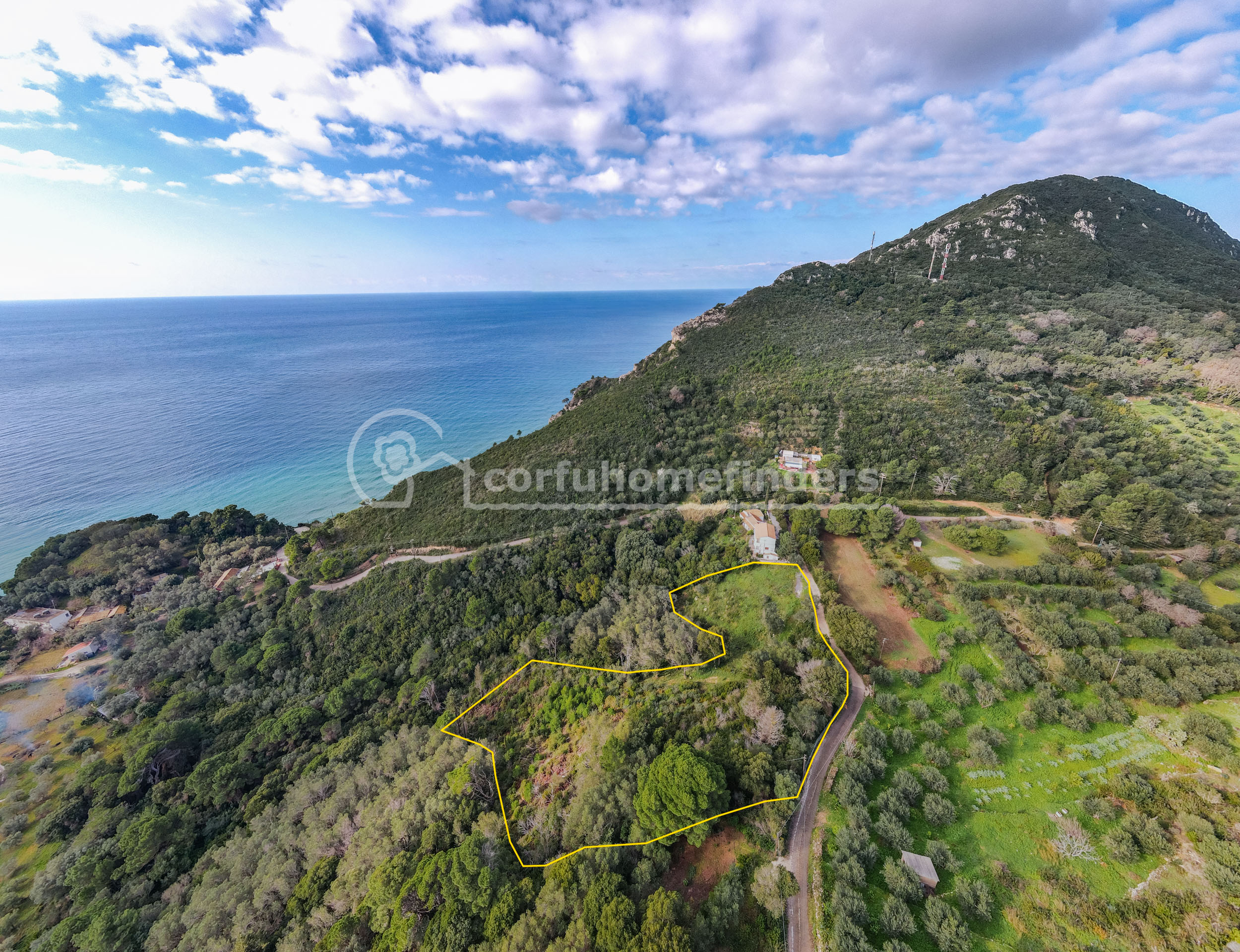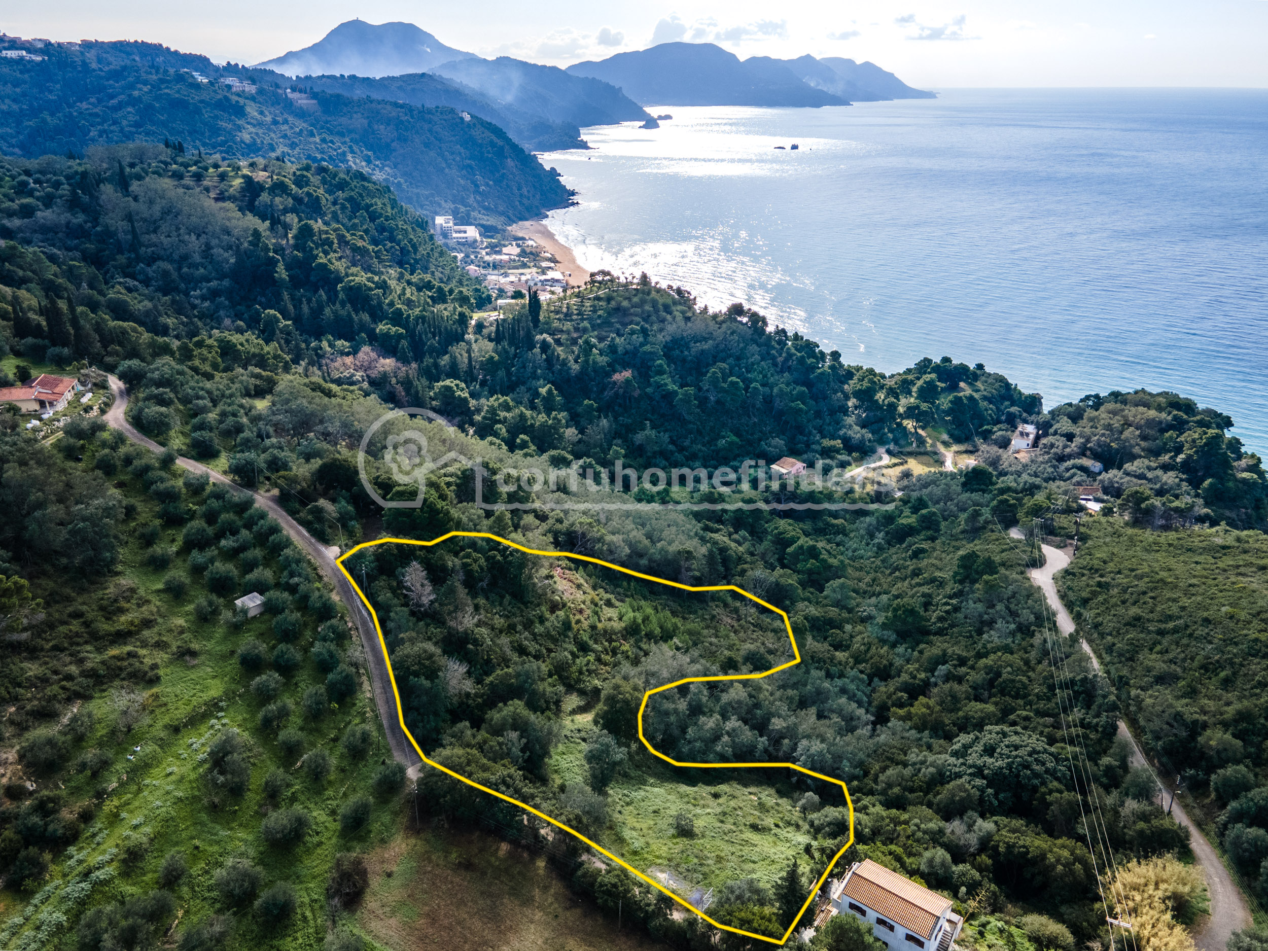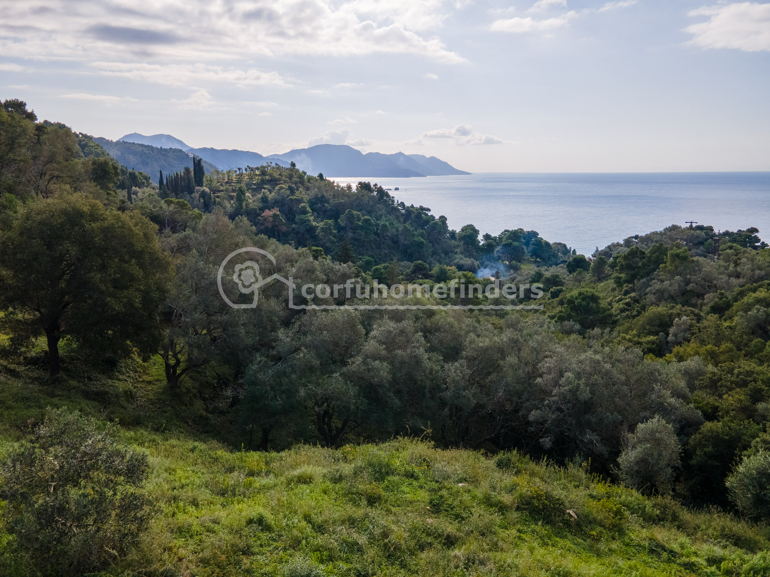 Situated just a short drive (or walk!) away from the little beach of Mirtiotissa, this large plot of land has beautirful west facing views across the olive groves and out to sea.