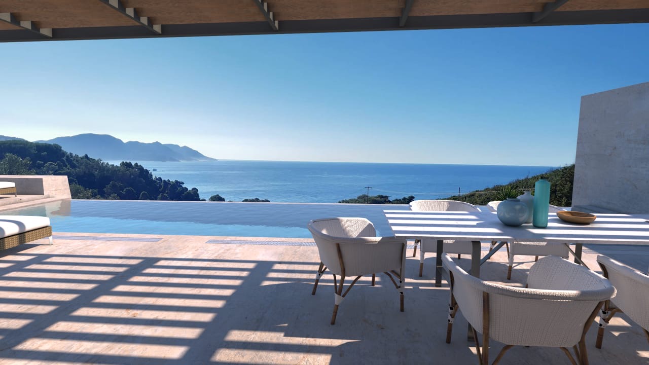 This part of the island is still largely undeveloped, yet has some of the best sea views. Glyfada beach is a 10 minute drive away, or can be accessed via footpath through the olive groves.