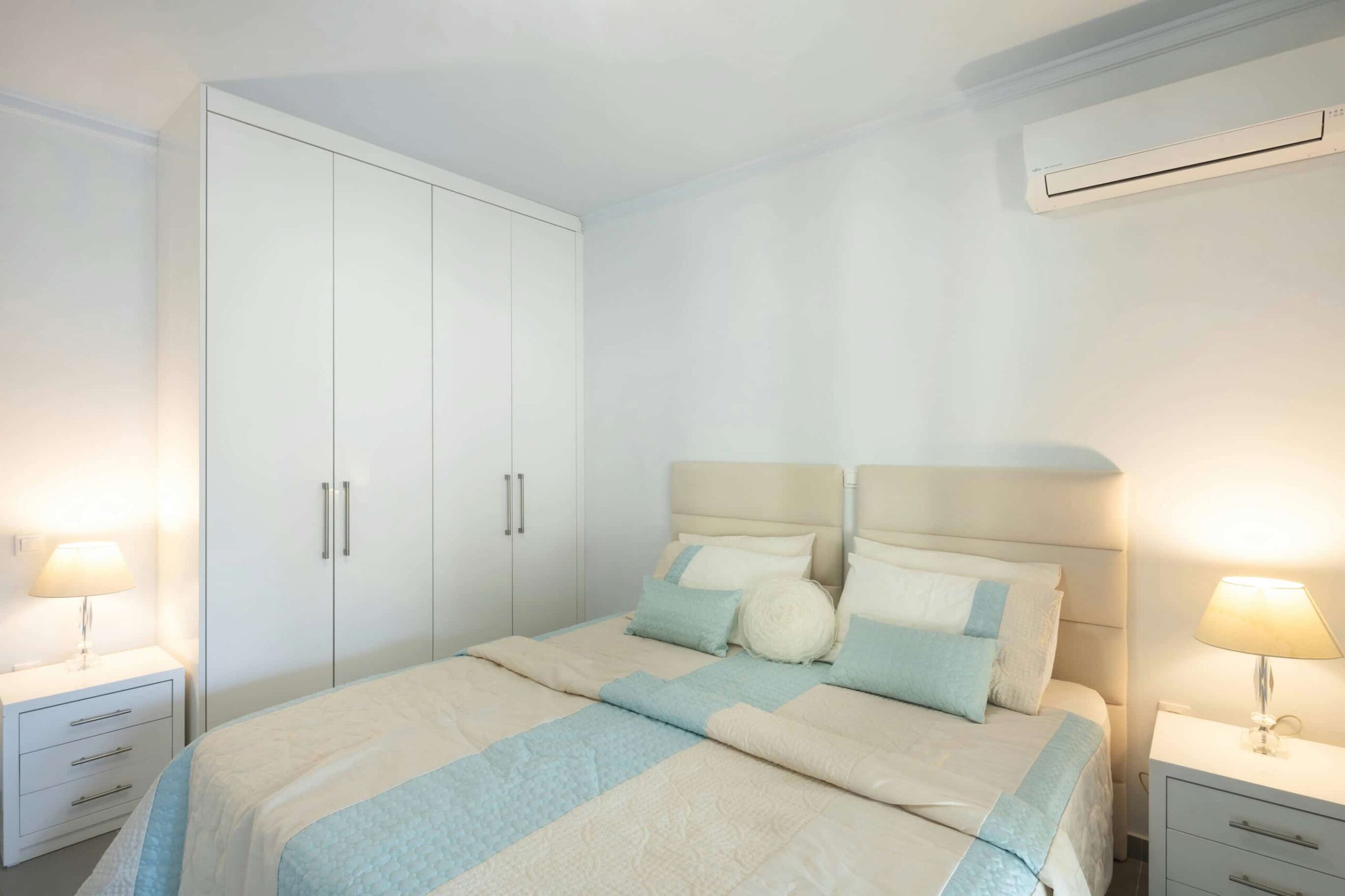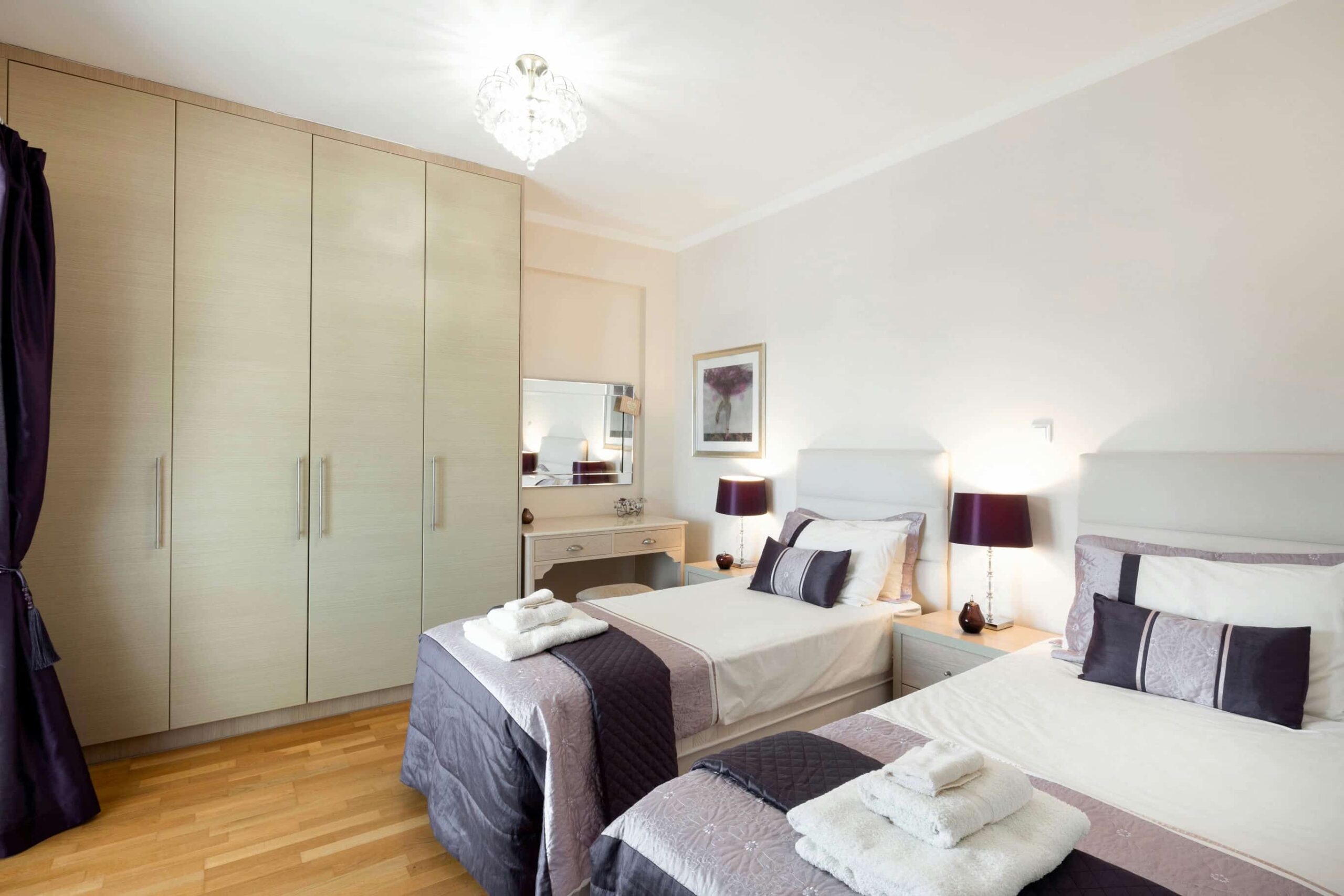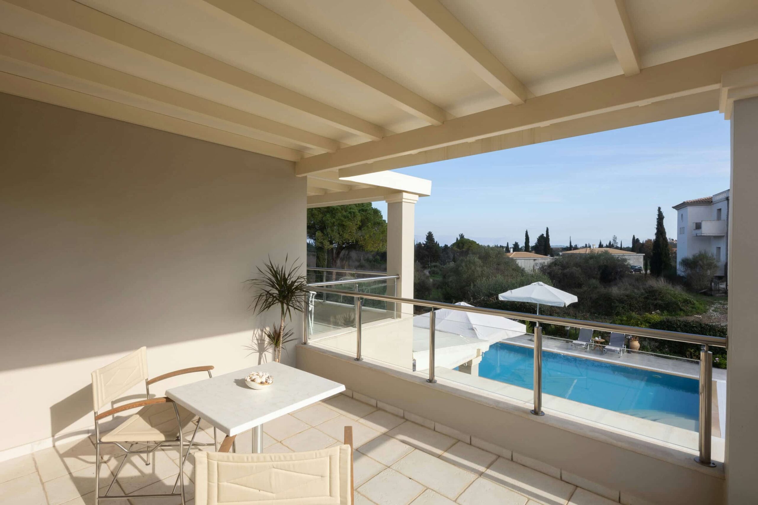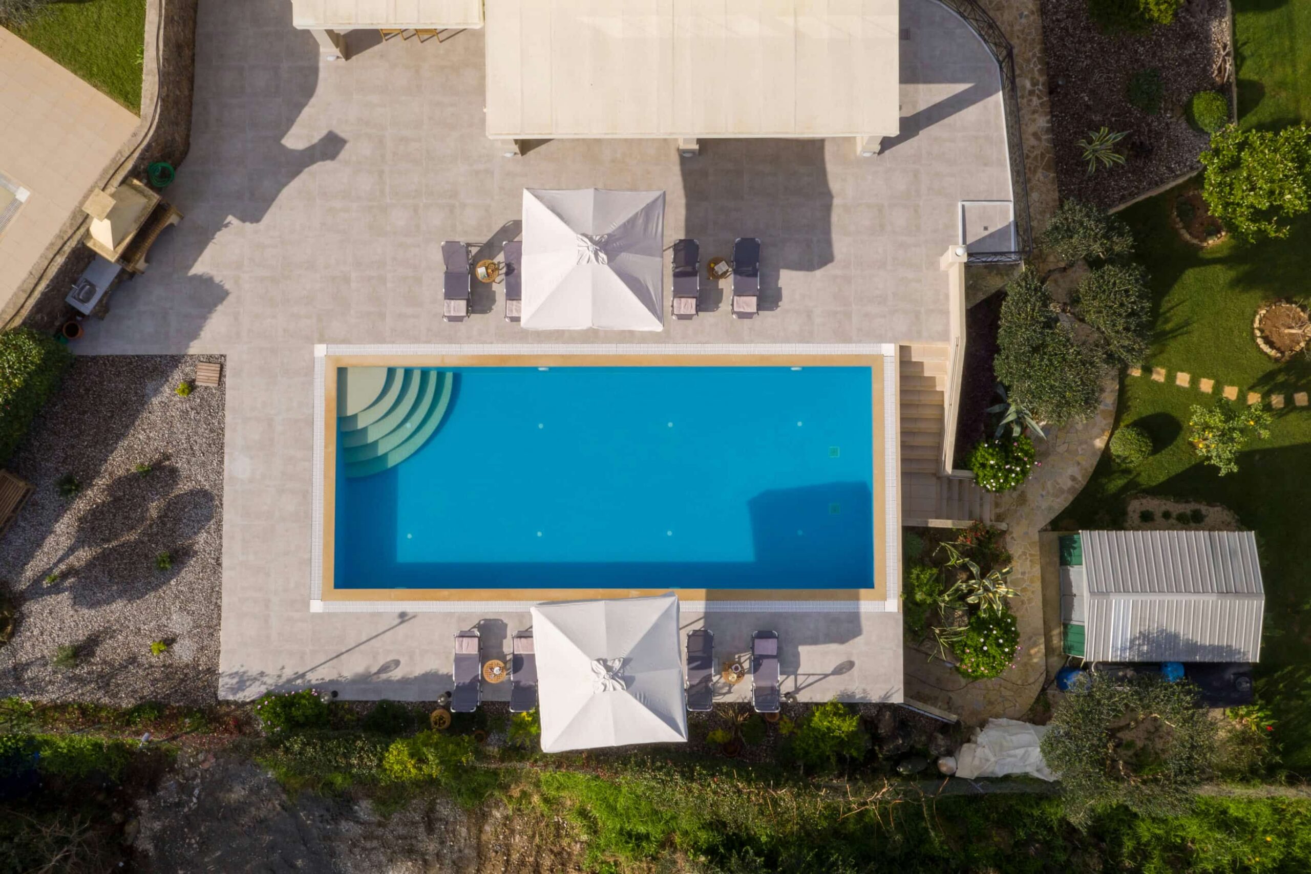 Upstairs are two further double bedrooms, sharing a bathroom. The bedrooms each have a private balcony overlooking the pool and the garden.