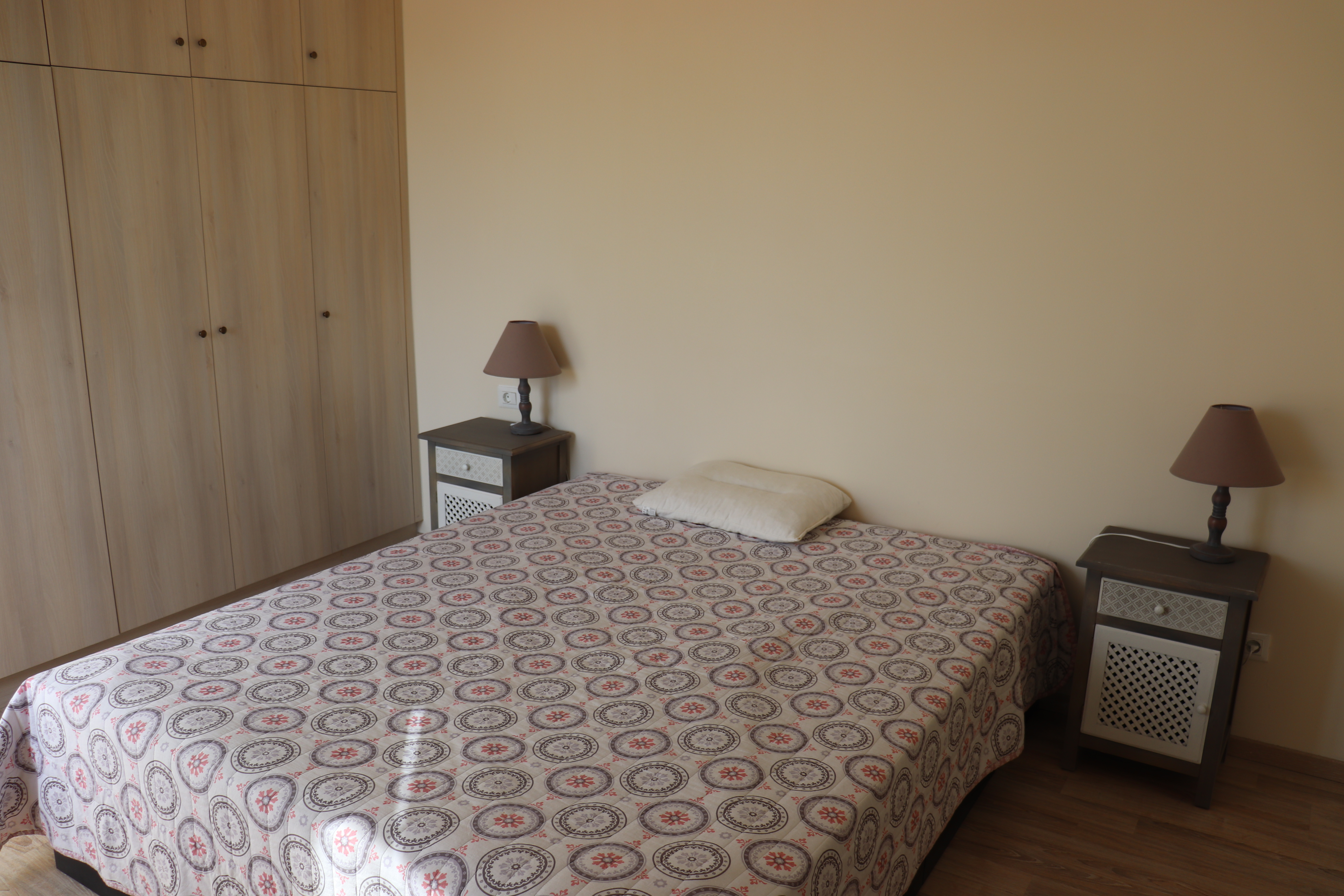 The door leads into a modern kitchen/dining are, with a large window looking out over the pretty rooftoops, and even a glimpse of the sea between buildings! Mount Pantokrator is visible in the distance. There is a sitting room with two large windows letting in ample light, and a good sized bathroom to the side. The bedroom is large, with built in wardrobes and two windows looking out towards a small square at the side.