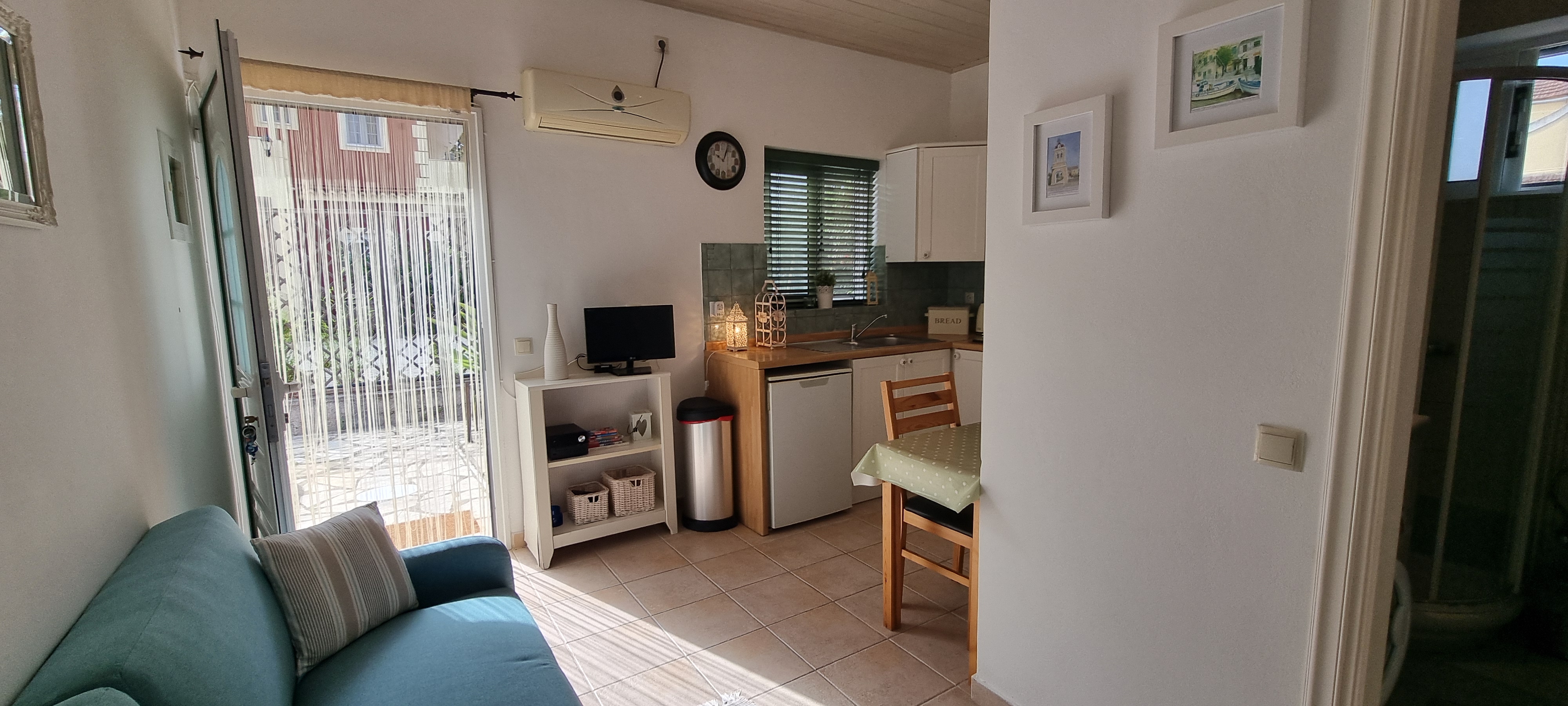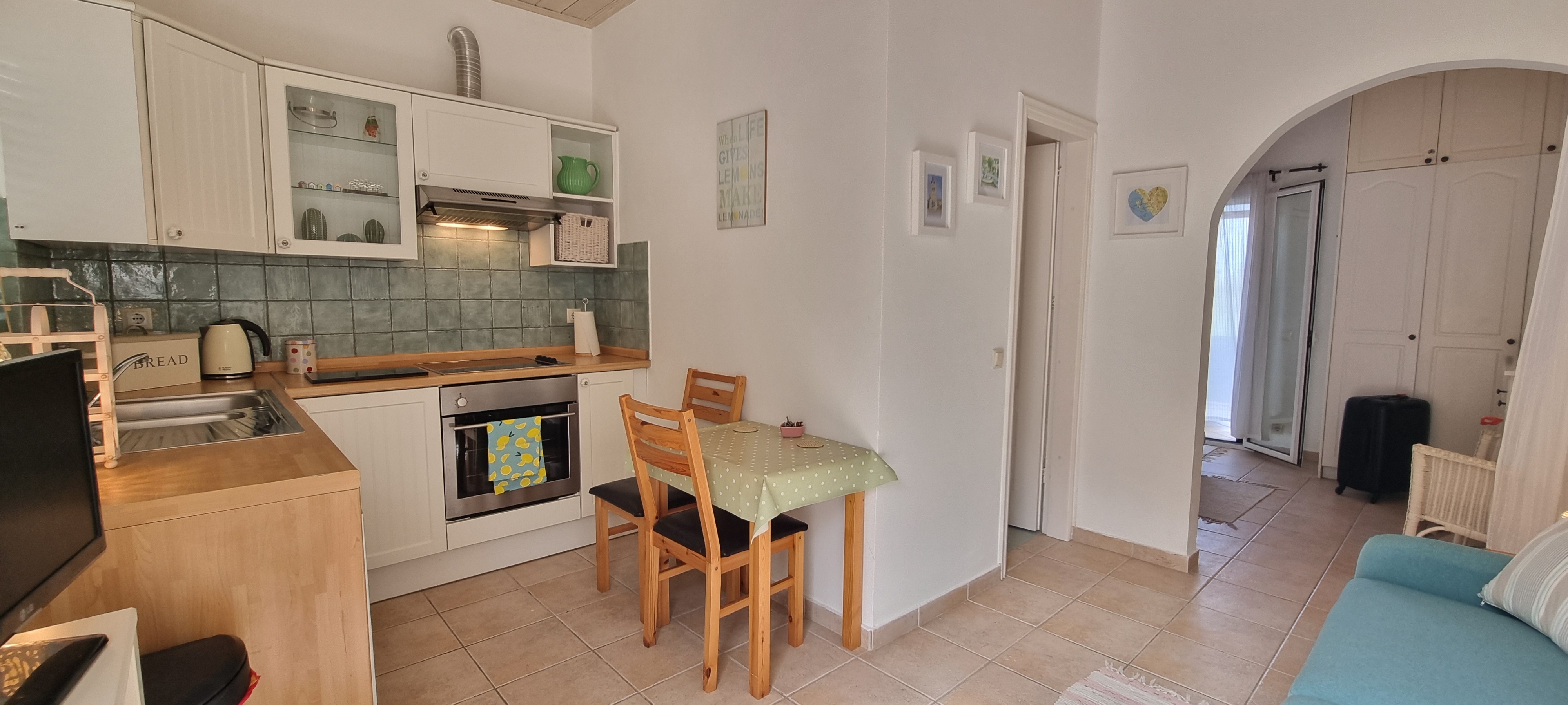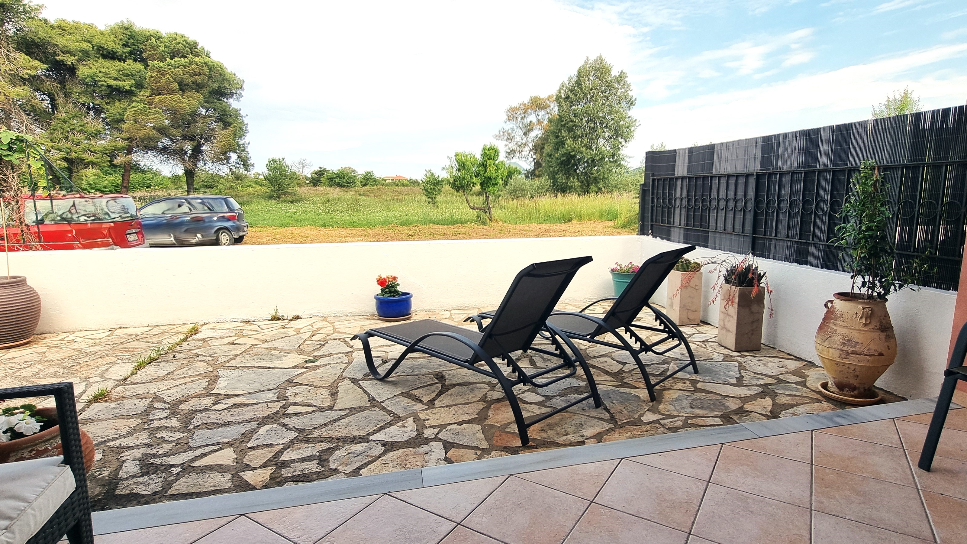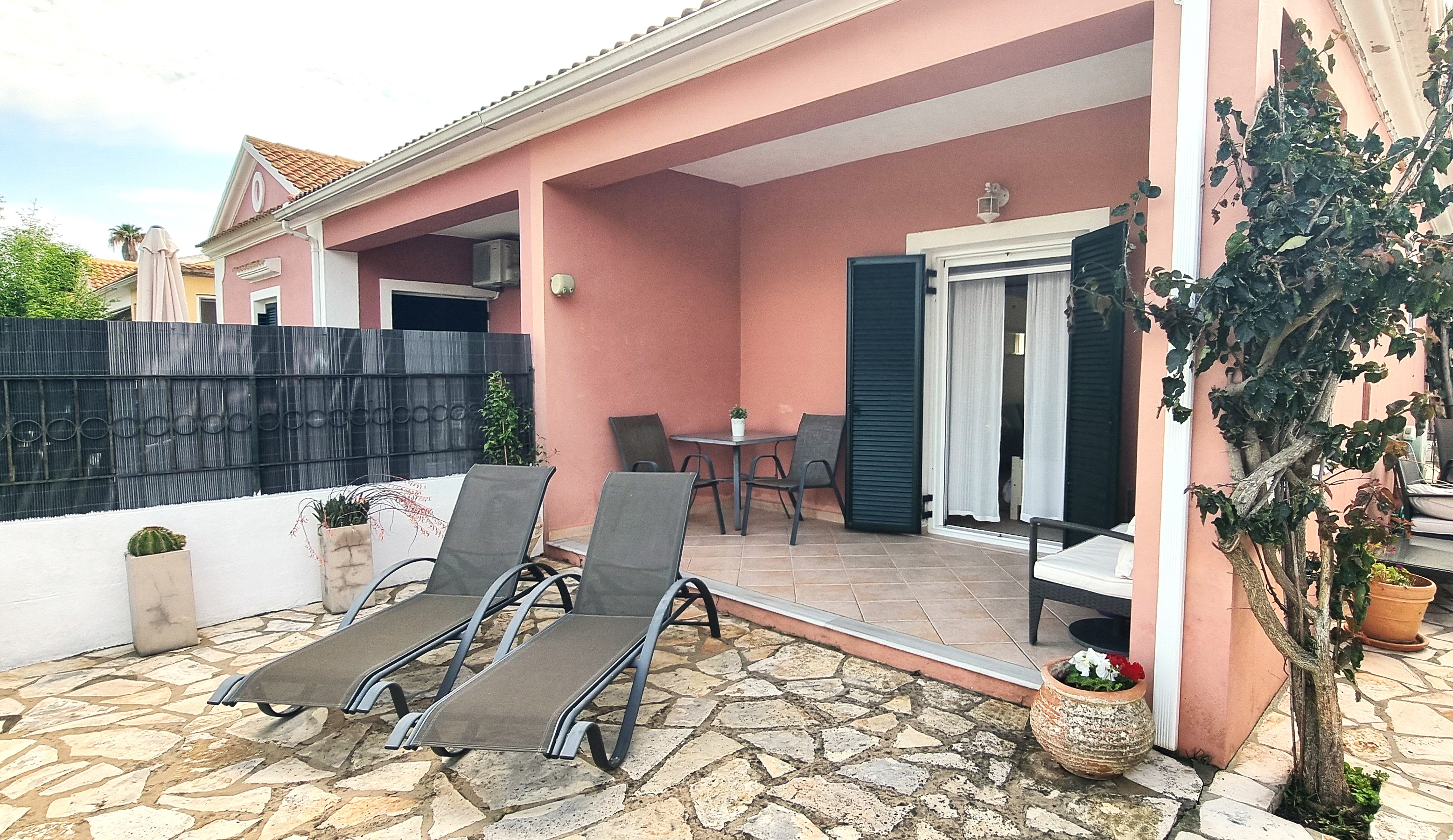 Telos is a lovely one-bedroom home at the end of a terrace of similar properties in the popular resort of Agios Georgios (S).
