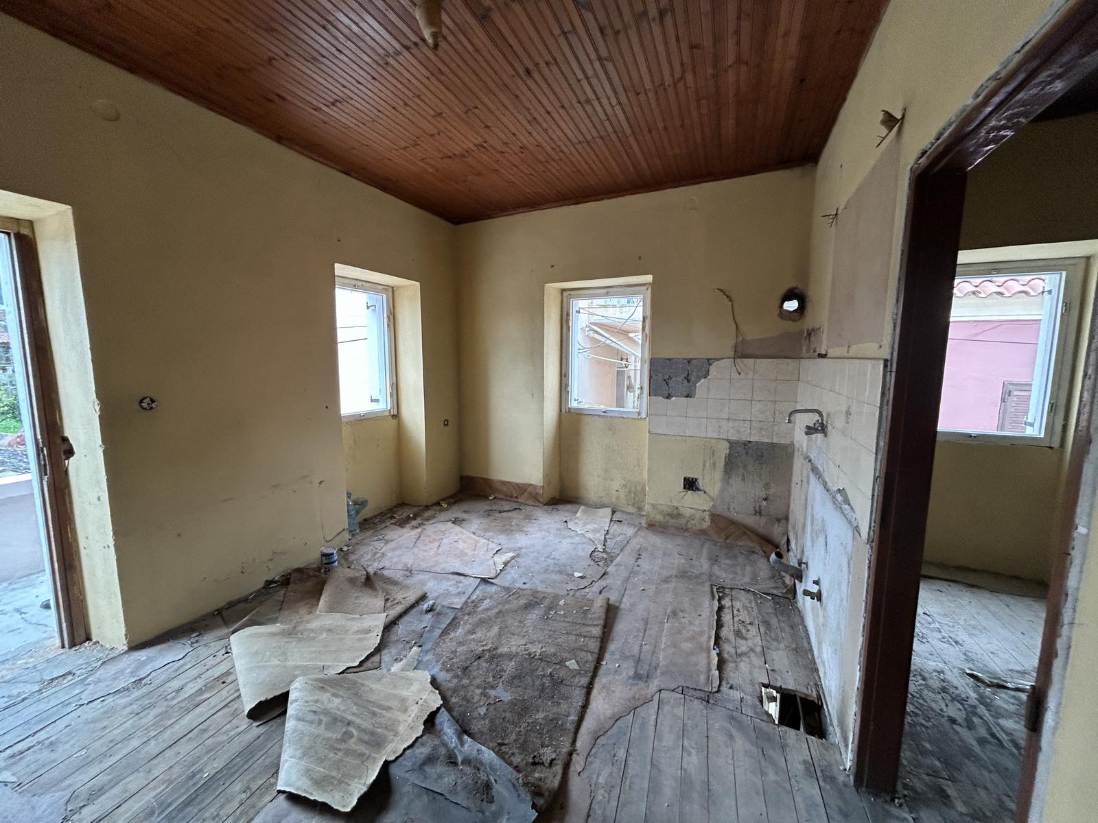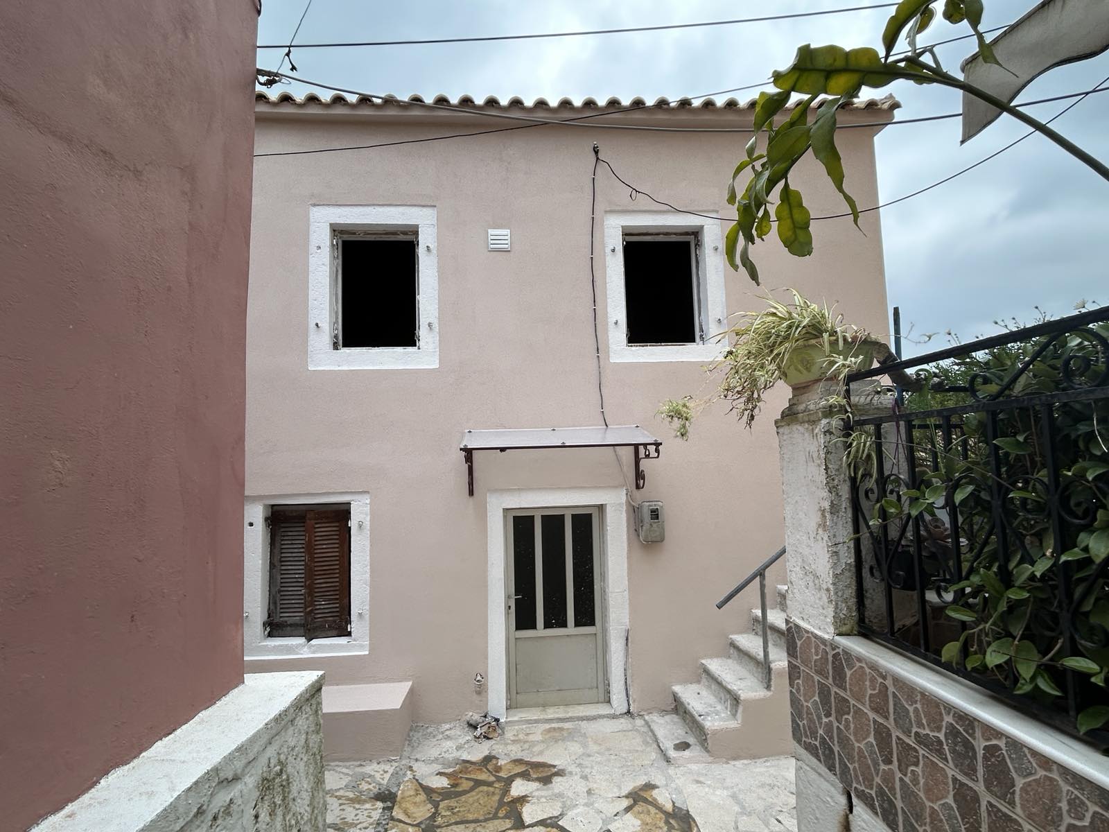 The renovation project started from the owner has been partially completed and now leaves room for a new owner's ideas and scope. The outer walls have been rendered and the roof renewed. The two story building can have one or two bedrooms and there is room for 2 bathrooms as well. One could choose to place the bedrooms on the lower or upper floor.