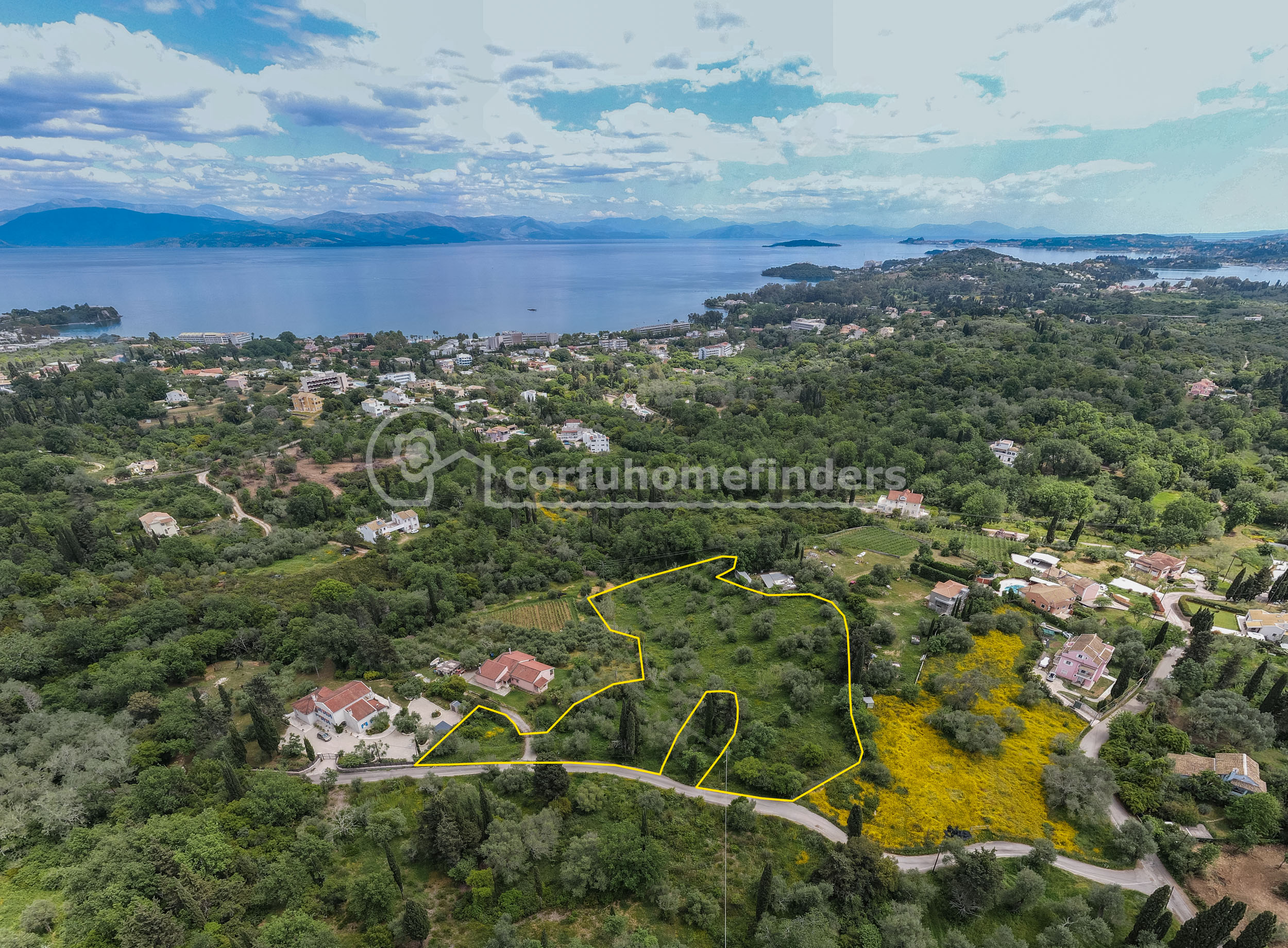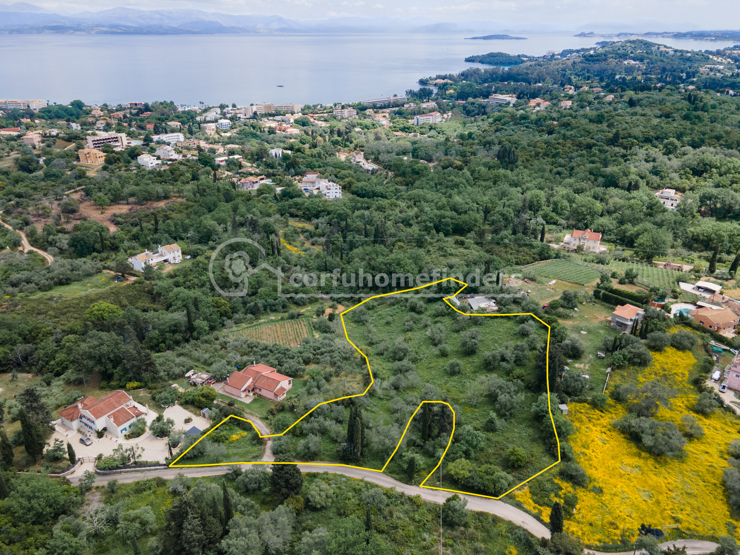 The land has a slight incline and has nice sea views towards Corfu town and the Albanian coastline in the distance. It is a nice location for either a holiday home or a year round property.