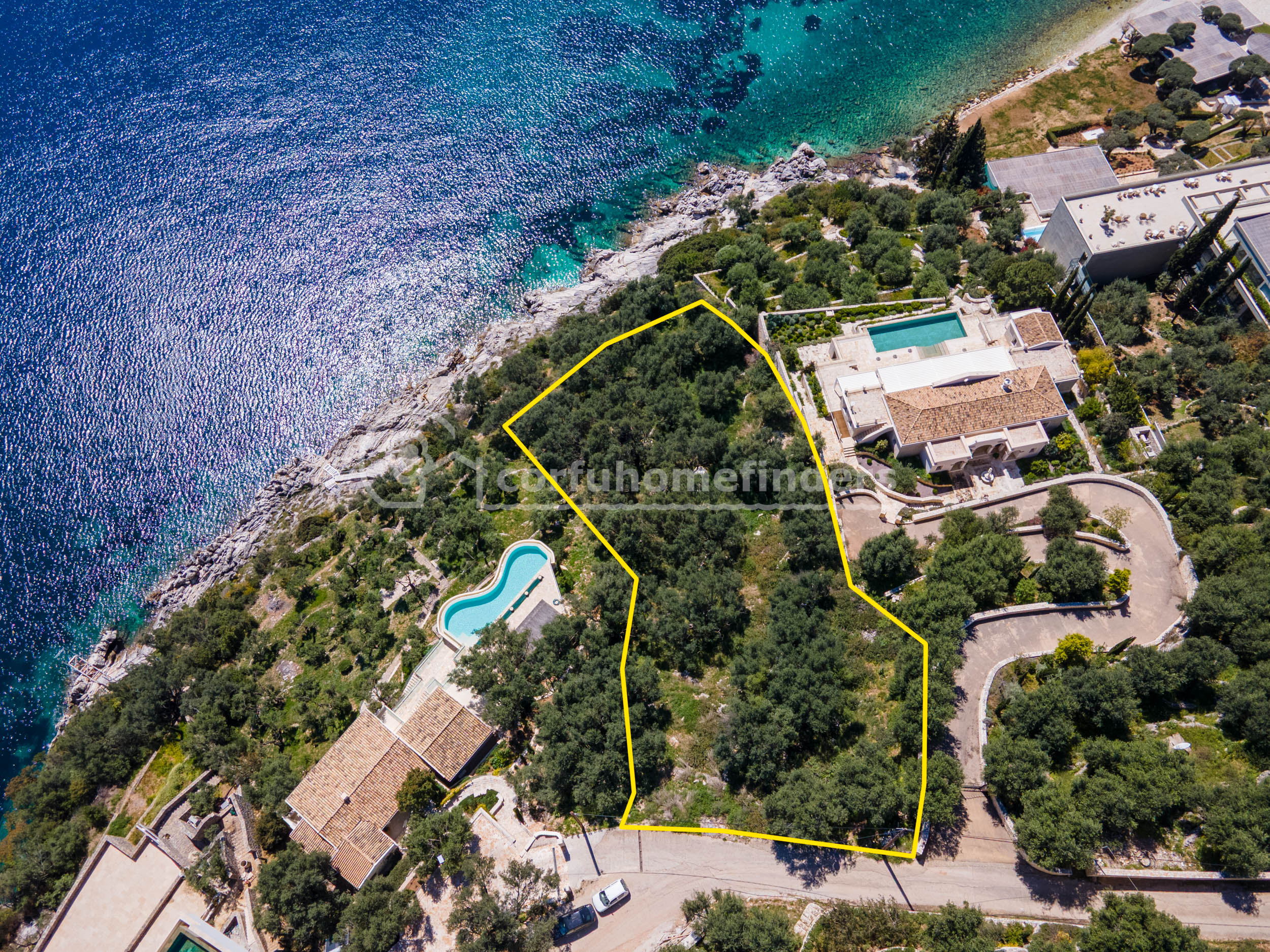 One of very few sea-front plots in this area, Glyfadi land has a building permit already in place for a four bedroom villa with swimming pool and steps down to the sea front.