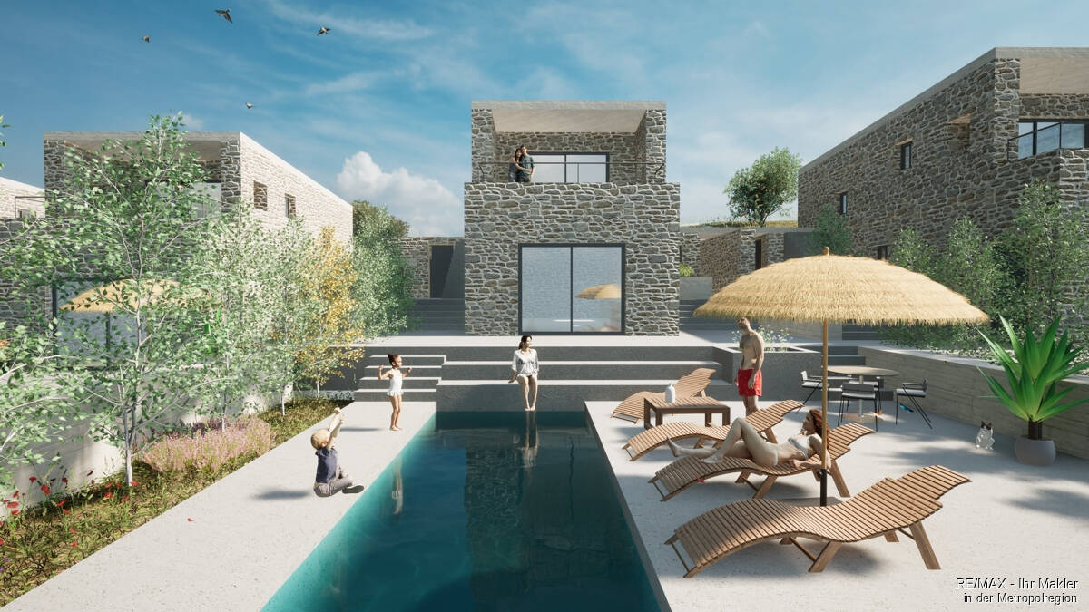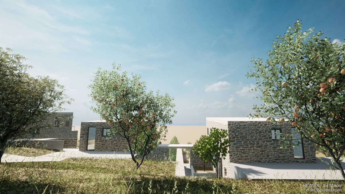These lovely stone two-bedroom homes are being constructed now on the edge of the village of Messonghi on the southeast coast of Corfu by a German developer who has combined the specific structural and climatic elements of the area with the high-quality standards of Germany. There are 4 villas being constructed, and although attached as a terrace style, each one will have its own area and privacy.