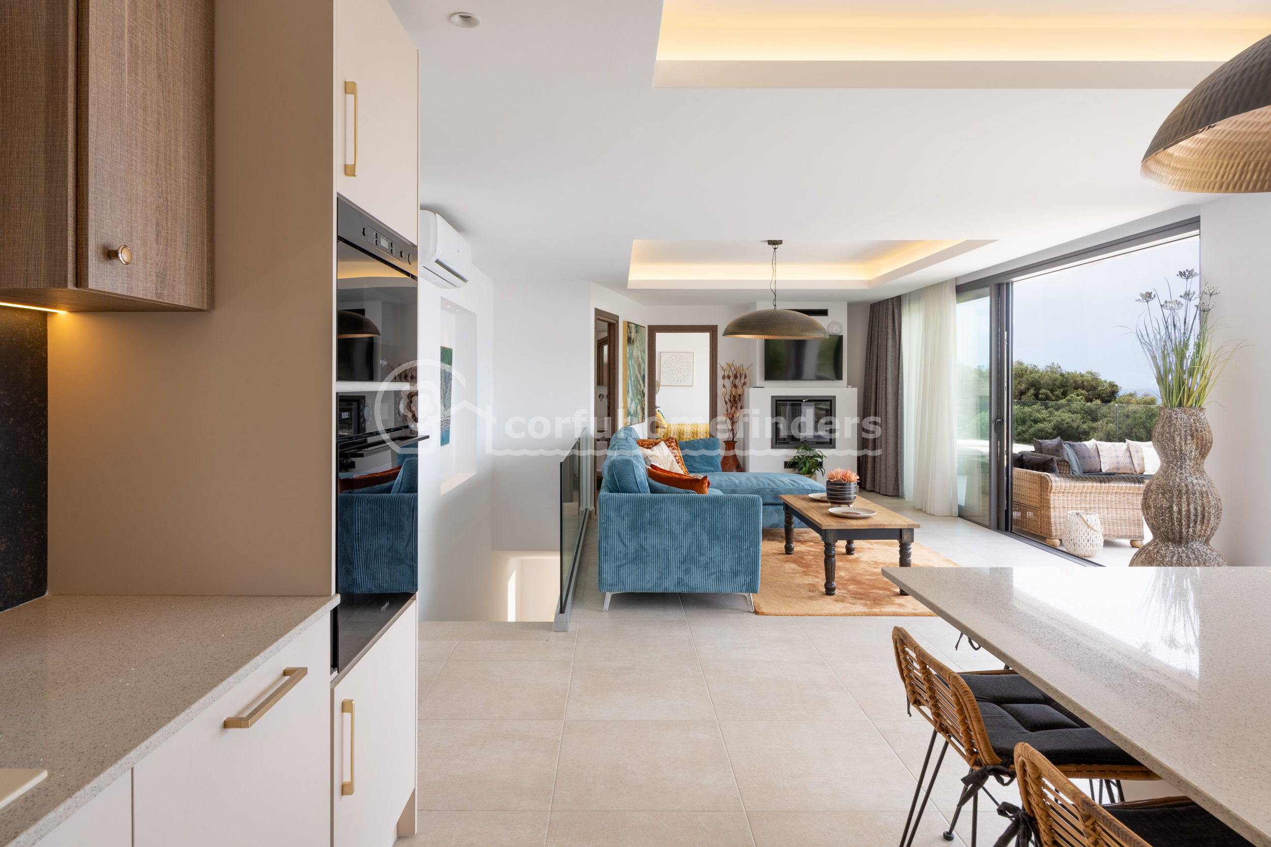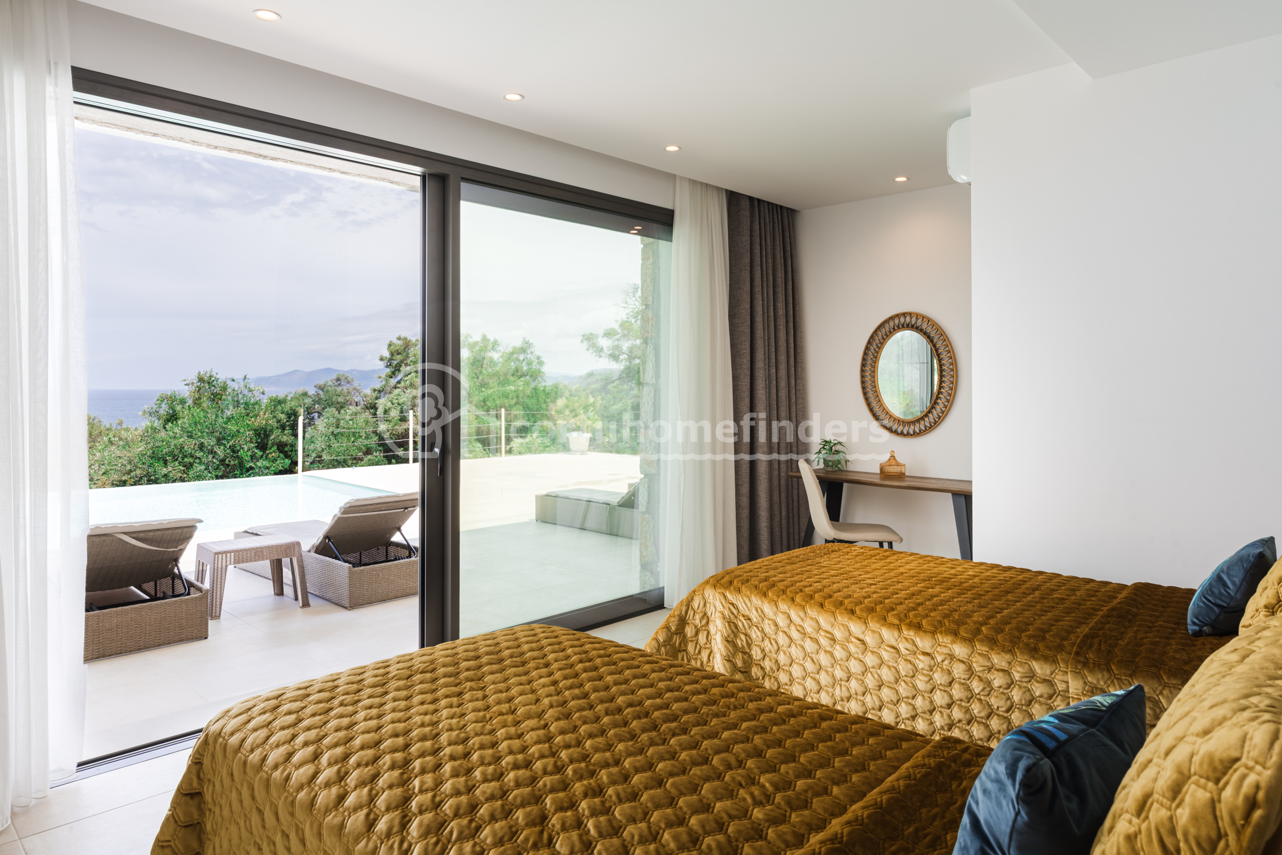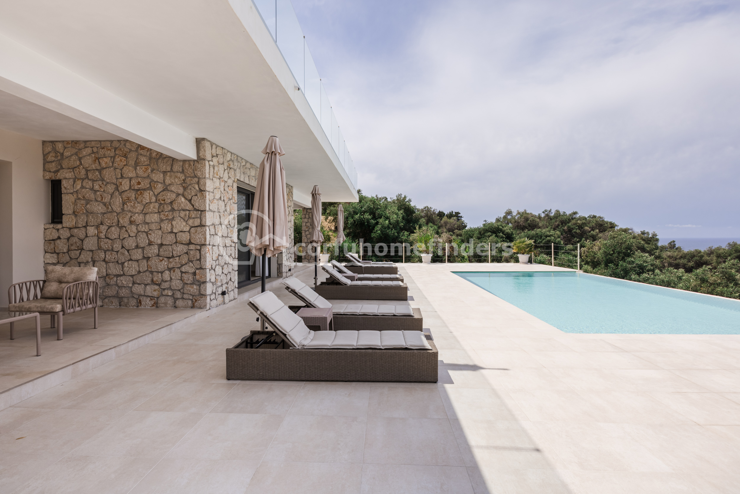 Recently completed to a high standard by its present owners, this fabulous villa offers a glamorous lifestyle in an unspoilt area of Corfu. The small beach of St Nikolas is reached by a dirt track opposite the villa, and a short distance away is the pretty resort of Paramonas with its tavernas.