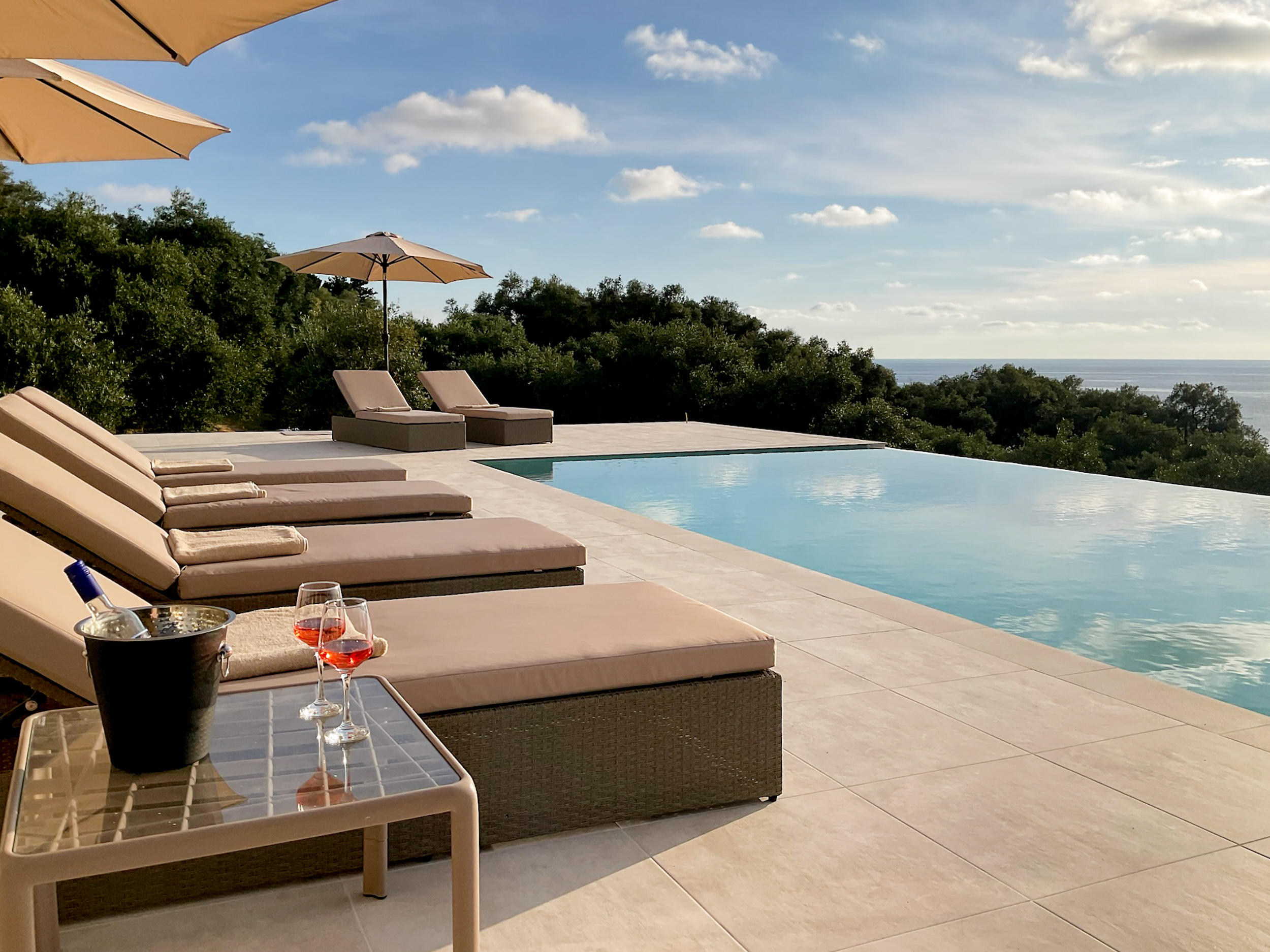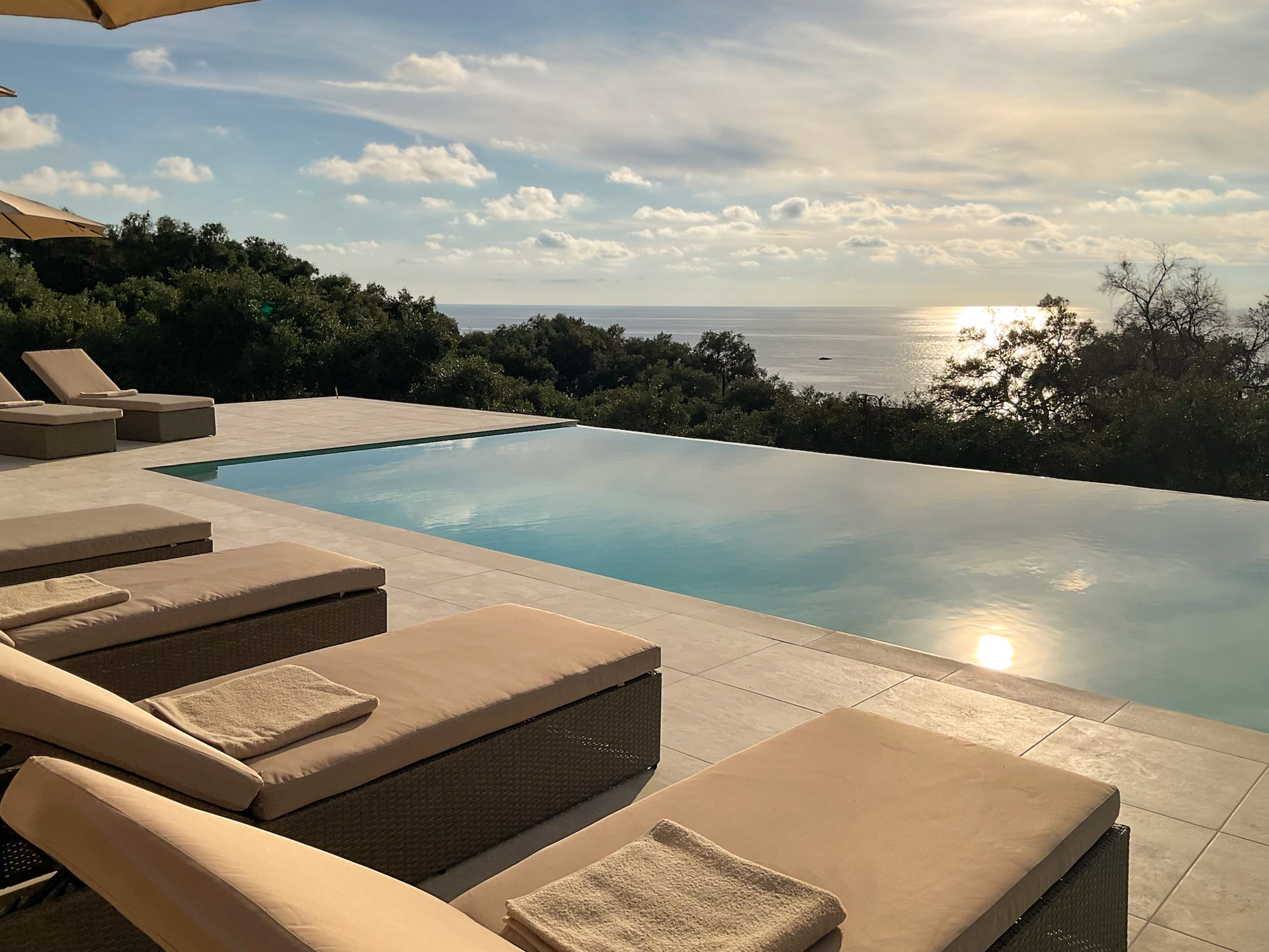 The swimming pool is large (10m x 6m) and has wide terraces with plenty of space for sunbathing and enjoying the atmosphere and sea views.