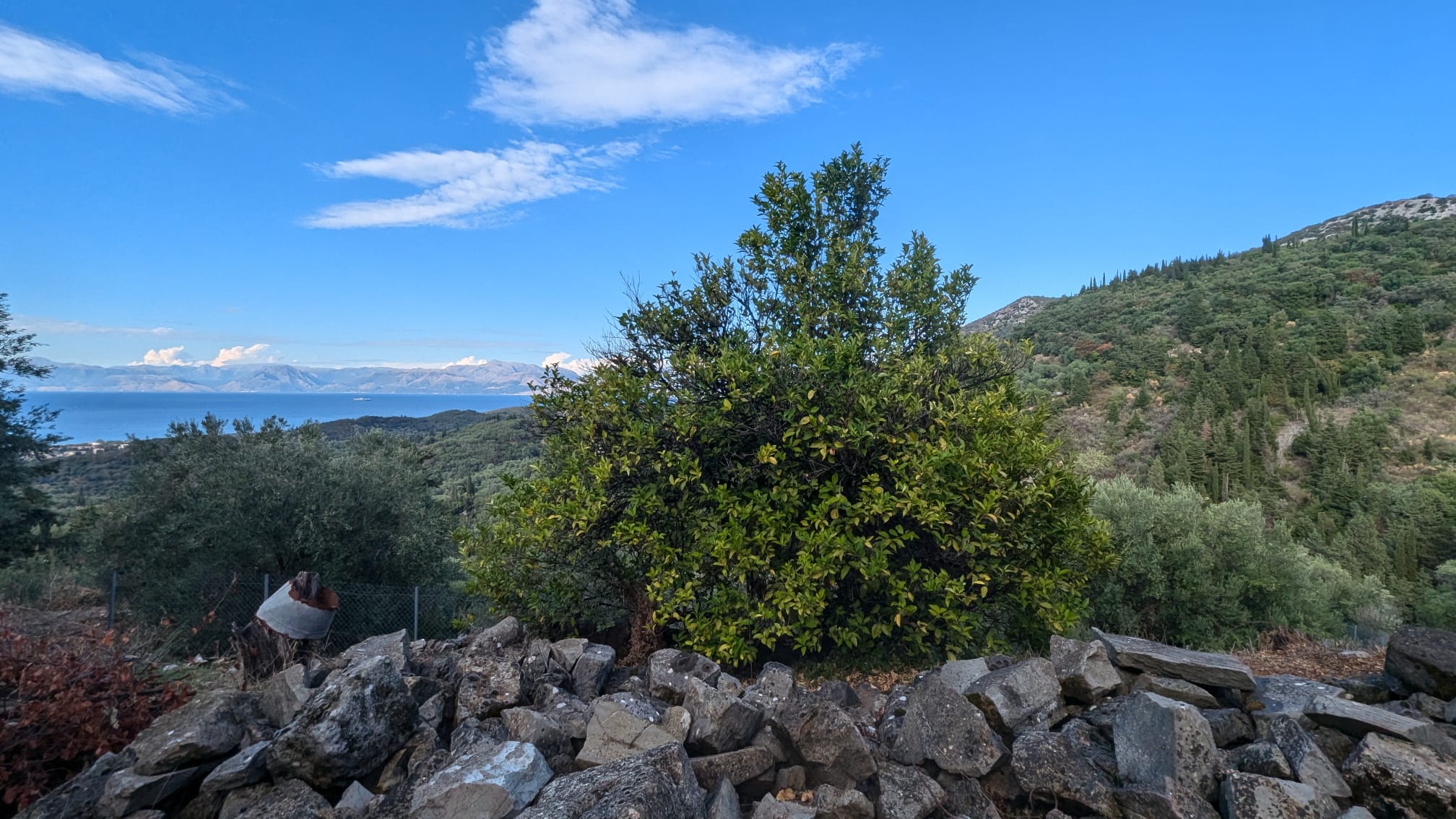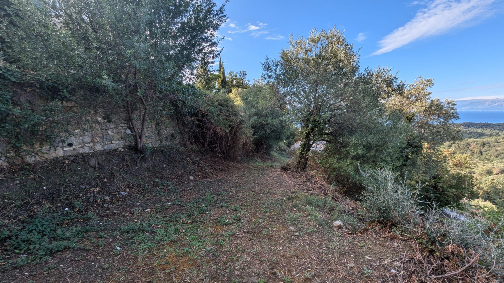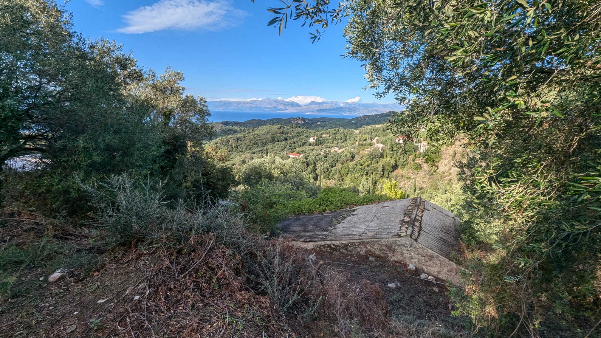 Due to its elevation the land offers incredible views to the olive groves of the North Corfu, all the way to the sea and the mountains of Albania.