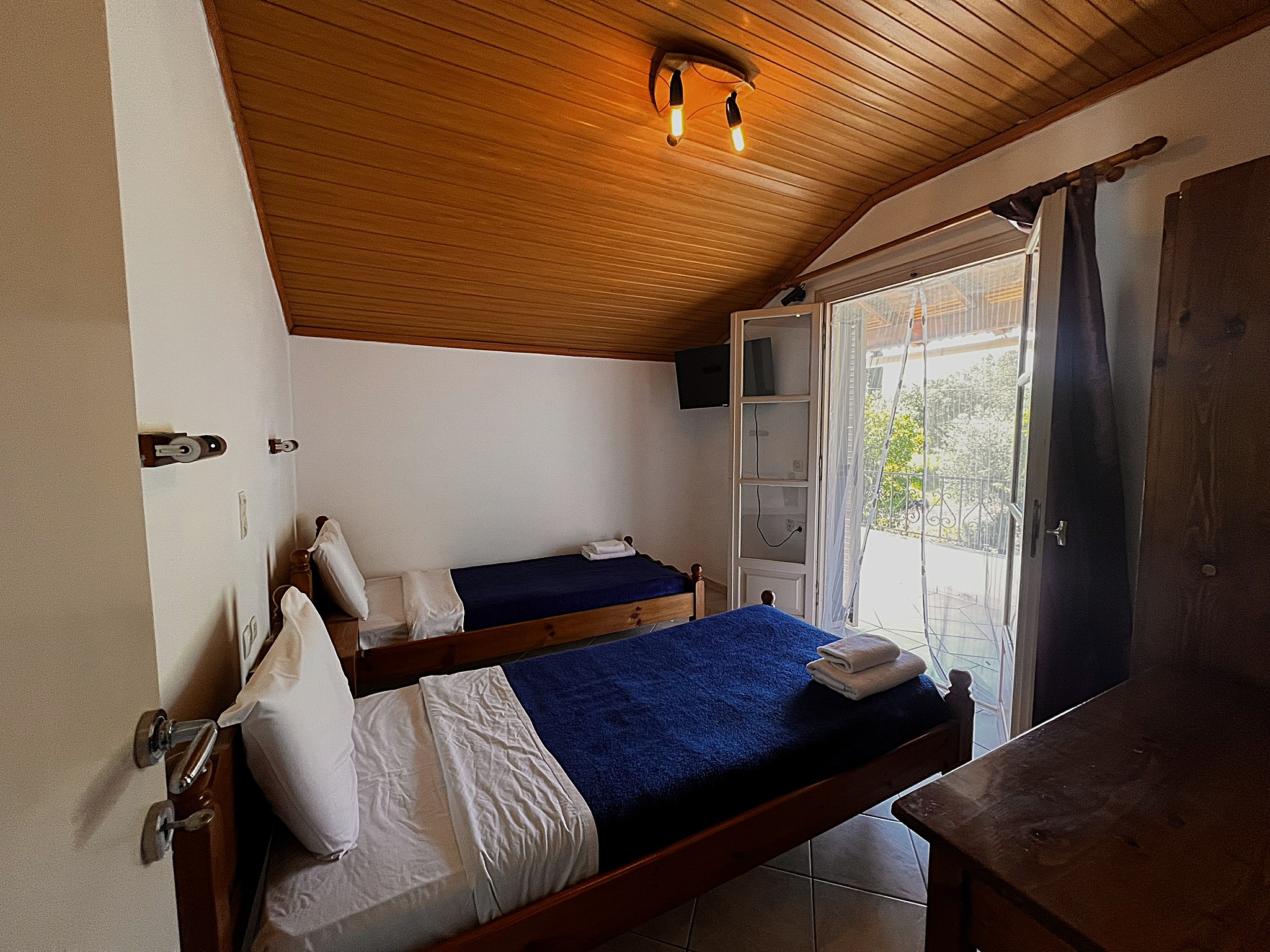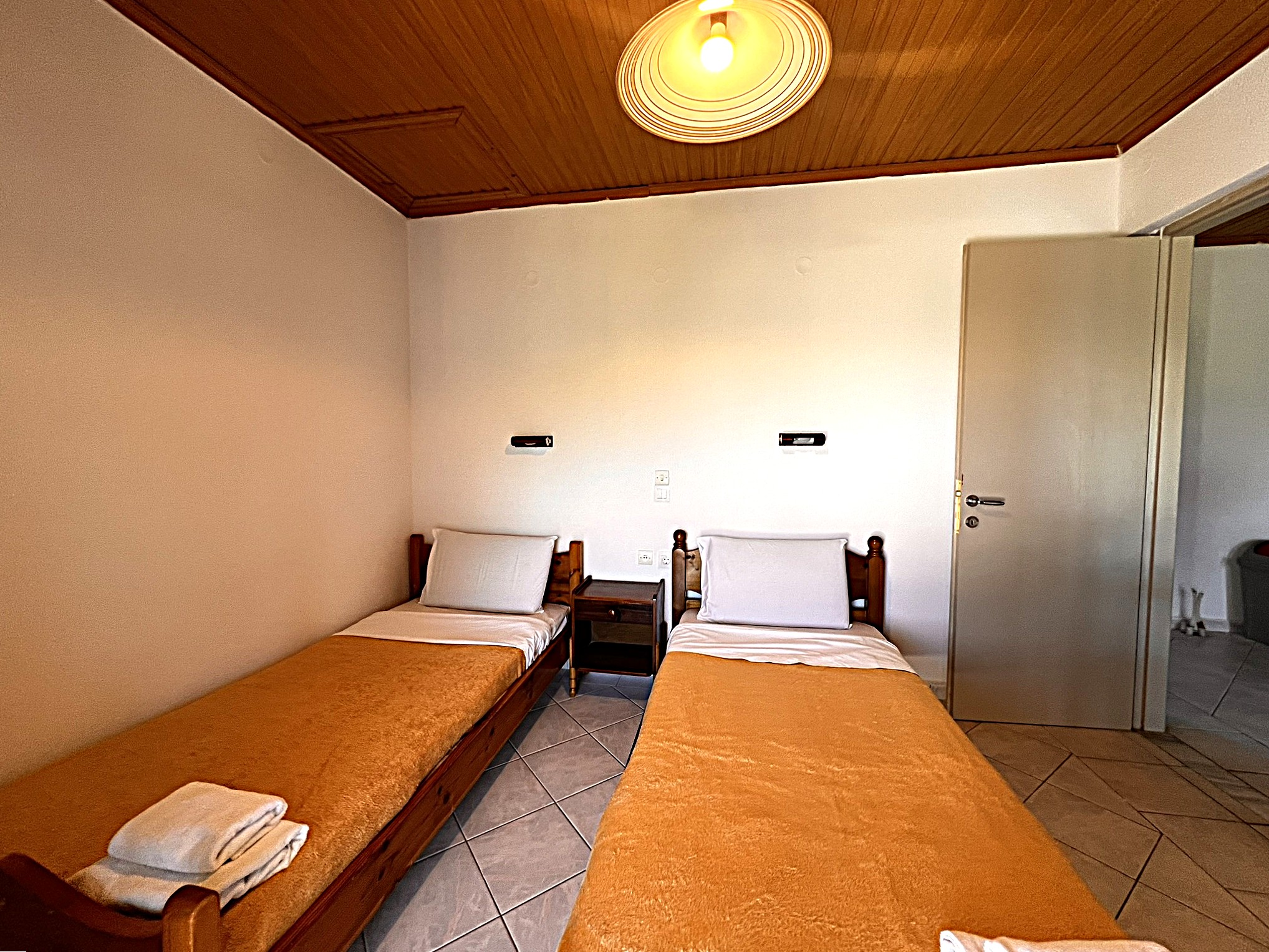 Each apartment has two bedrooms of which two have a private balcony and olive grove views, a kitchen and a bathroom.