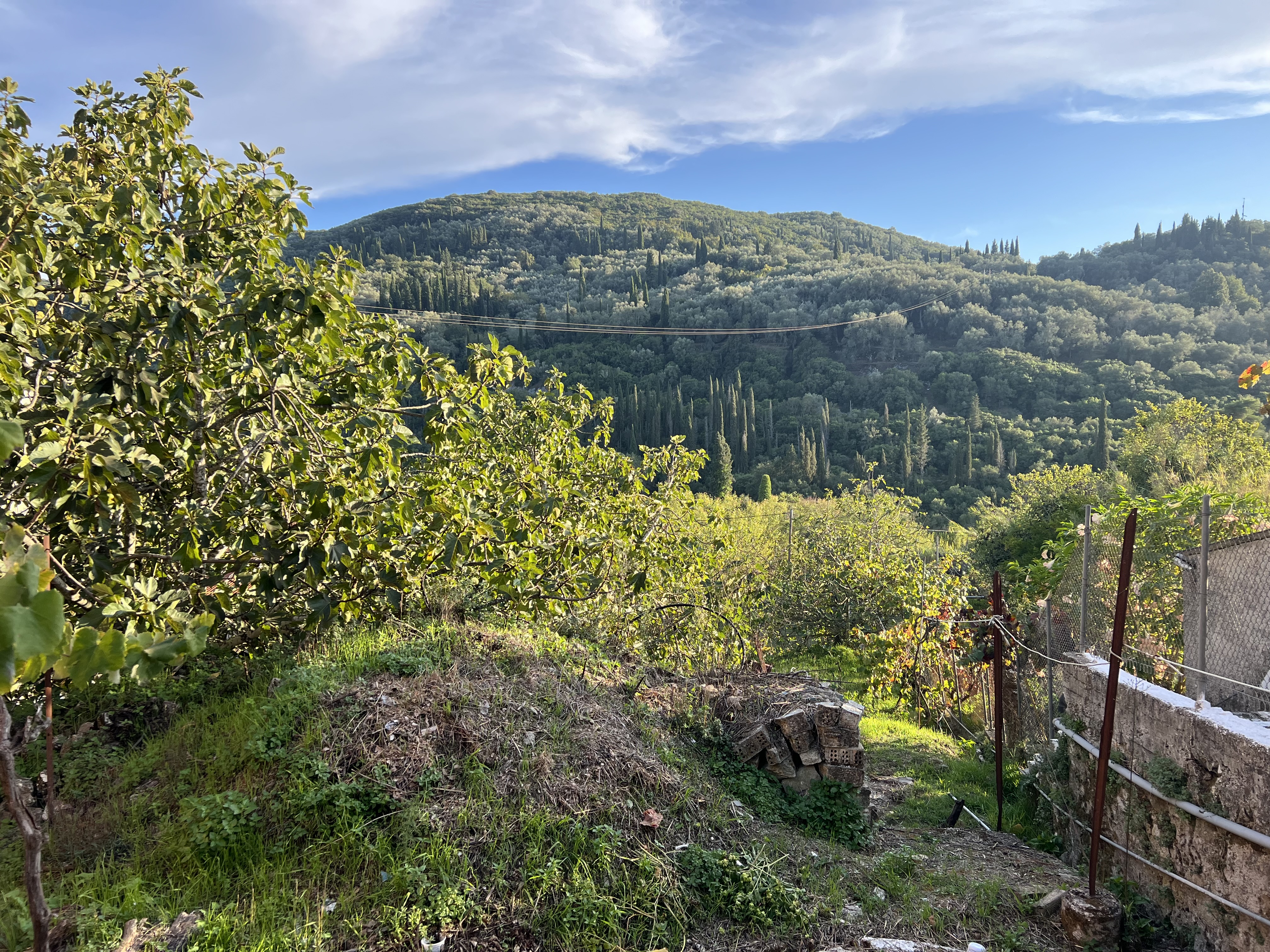 At the edge of the village of Zygos, a gate opens into the property grounds where the garden has lovely views of the surrounding mountains.