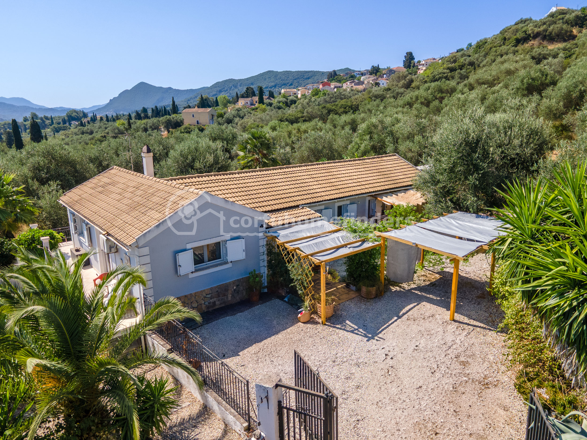 Giannades is a pretty village with a lively, year round community. There are a couple of tavernas, a coffee shop/bakery and a small supermarket and butcher. This house is outside the bustle of the village, in a particularly pretty spot with lovely views across the valley to the hills beyond.