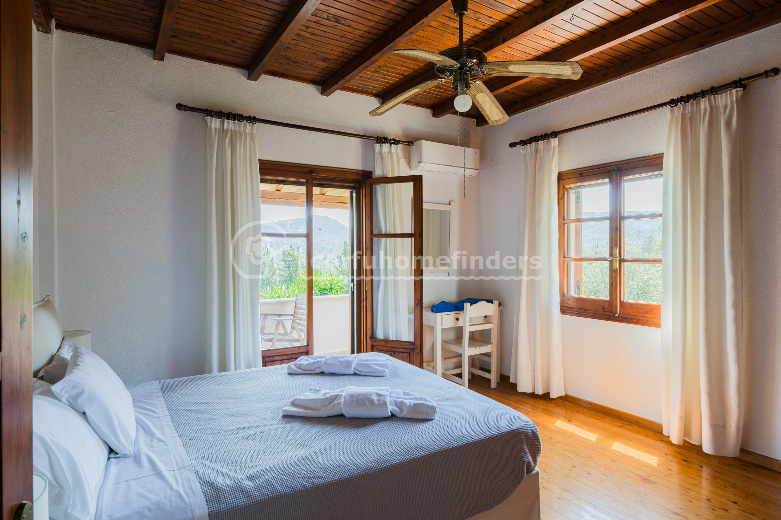 Upstairs there are four bedrooms and two bathrooms. Two of the bedrooms have access to balconies at the front looking out over the pool area and the lovely views beyond.
