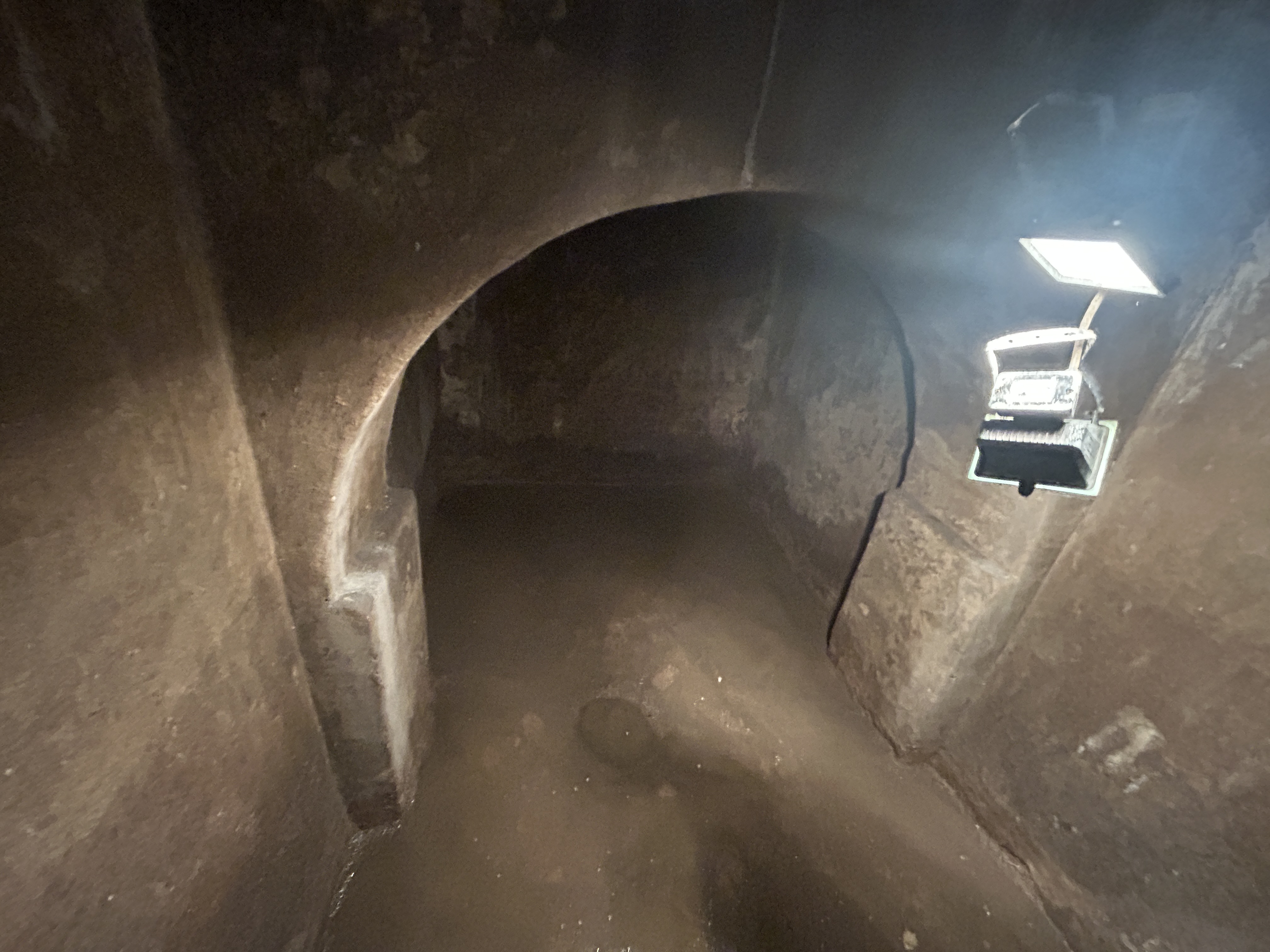 Beneath the floor is a beautiful vaulted room, surprisingly spacious, with a lovely brick arched ceiling. This was originally a water tank, but would make a fabulous wine cellar.