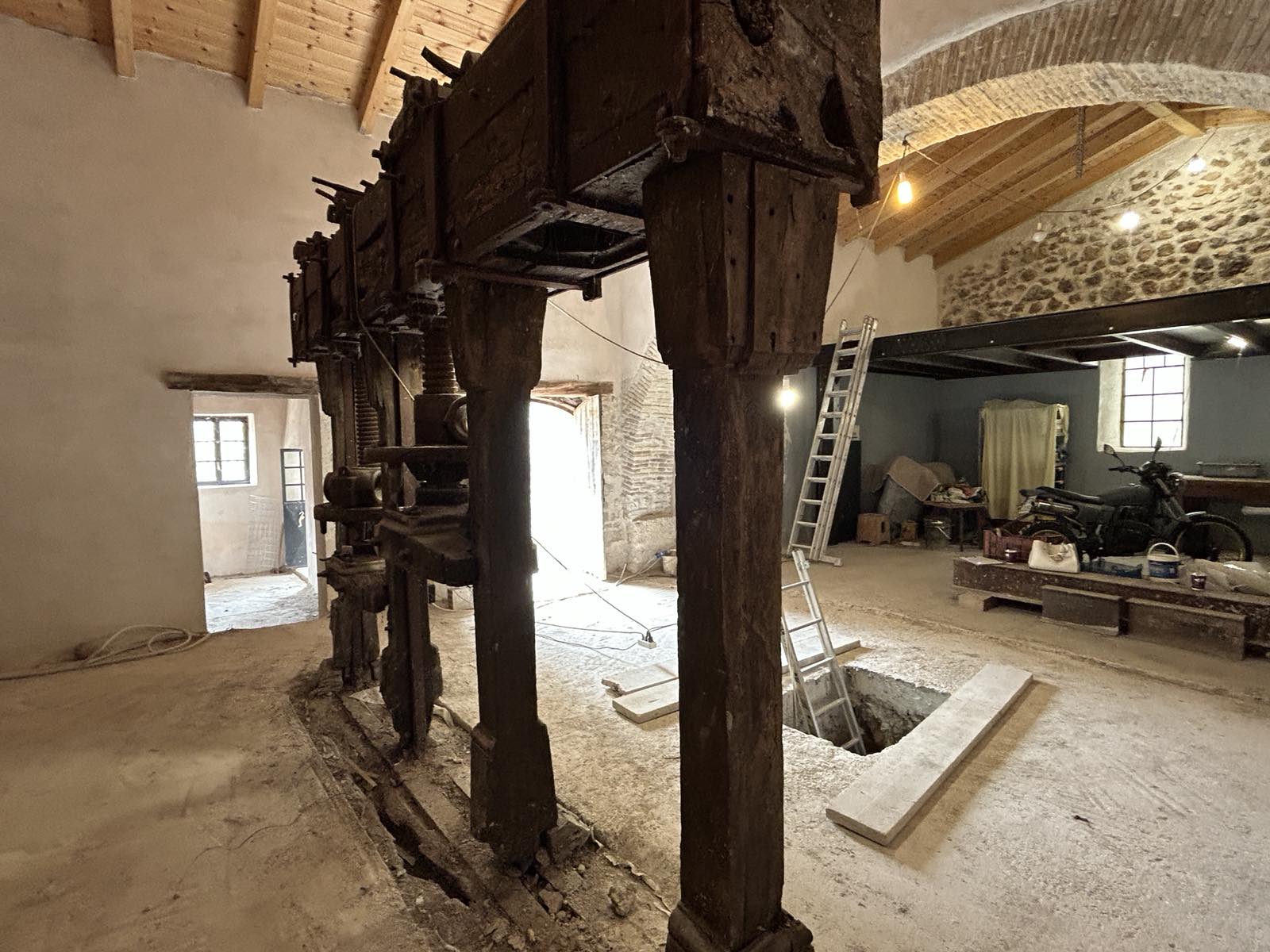 The main entrance to the olive press is from a building on the side, intended to be a spacious hallway, a shower room and utility/boot room.