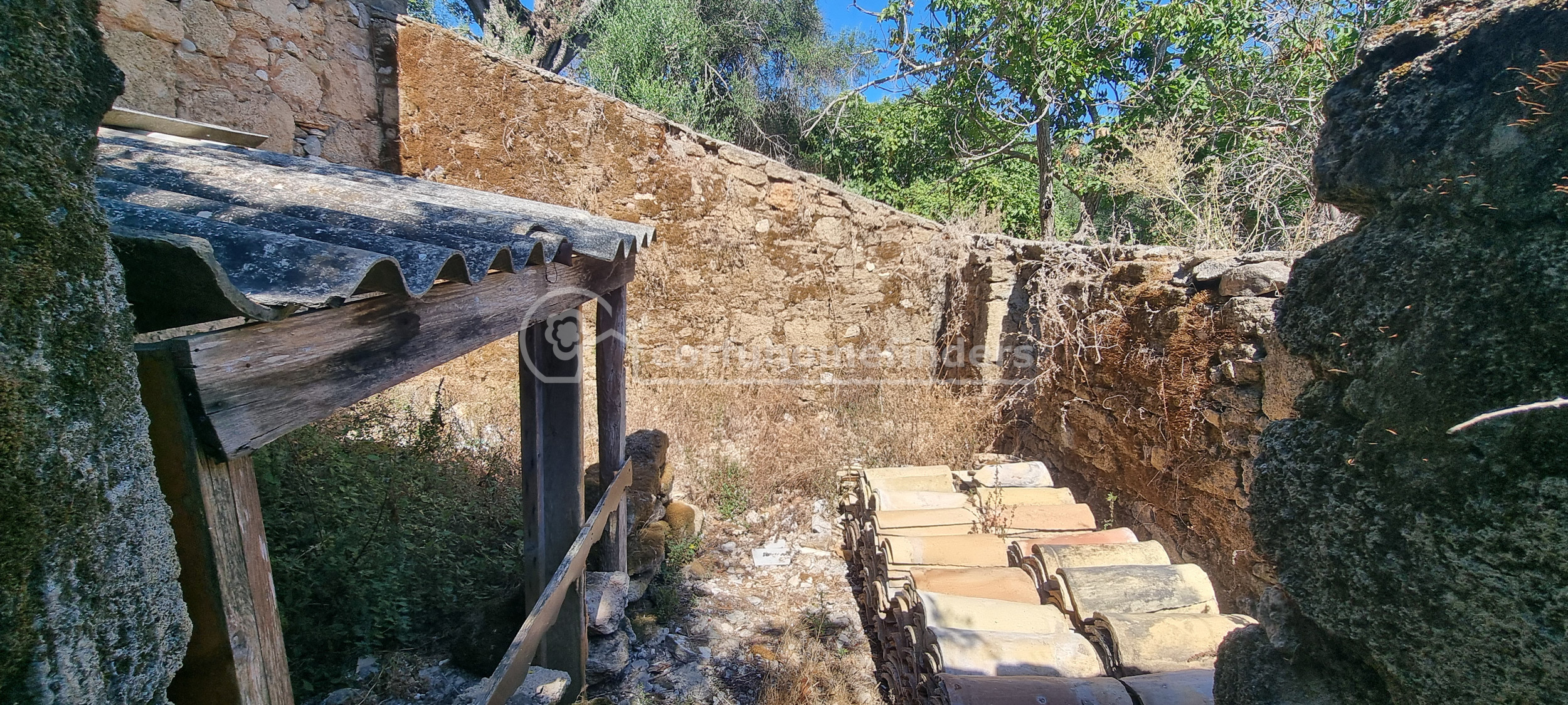 From the kitchen, there is a back door leading to a communal area dominated by the Gigifa tree and from here, there is access to a small ruined building without a roof, but it would make a lovely space for a potting area for a gardener, and the gate to the plot of land, which also comes with the property.