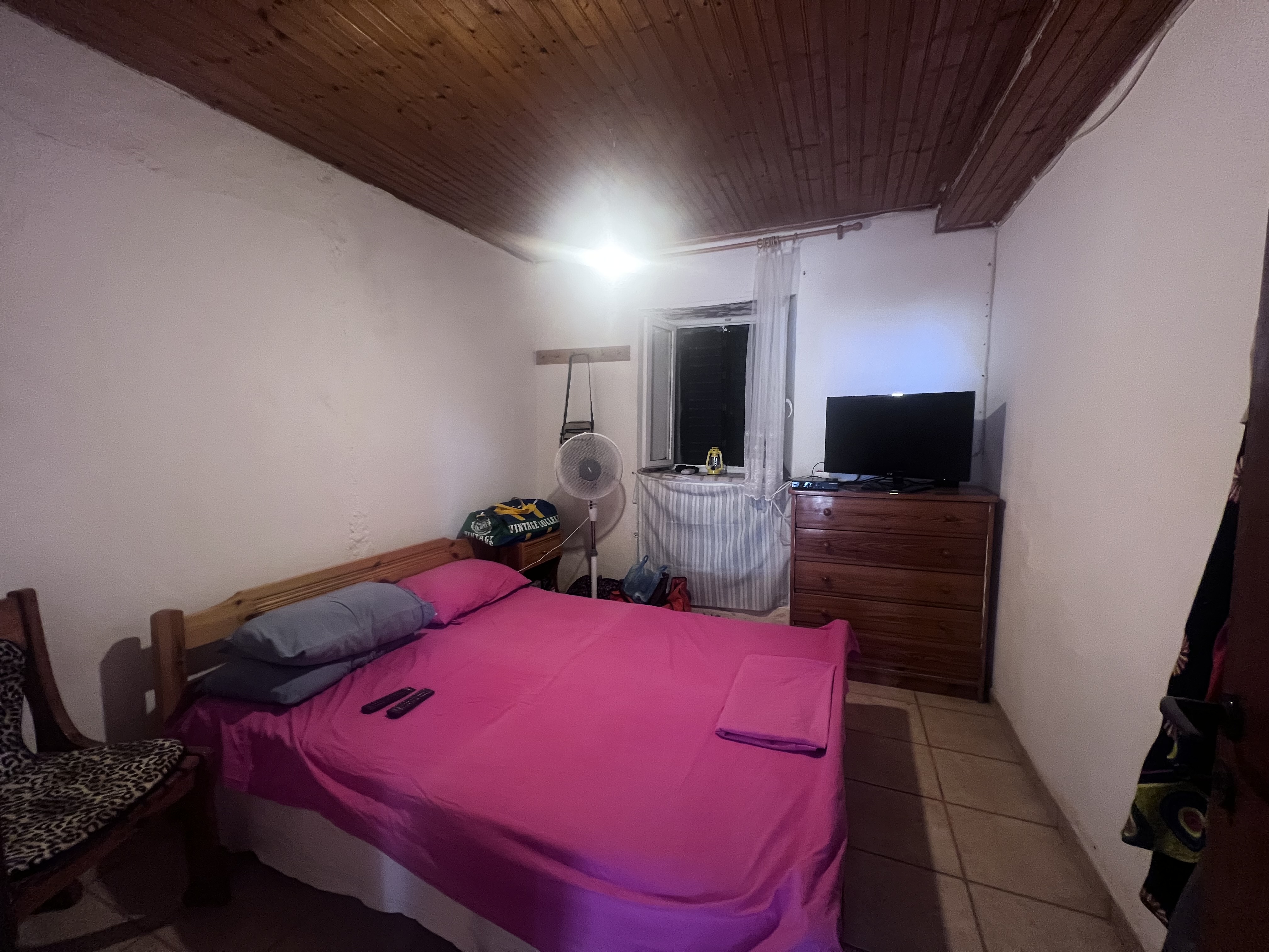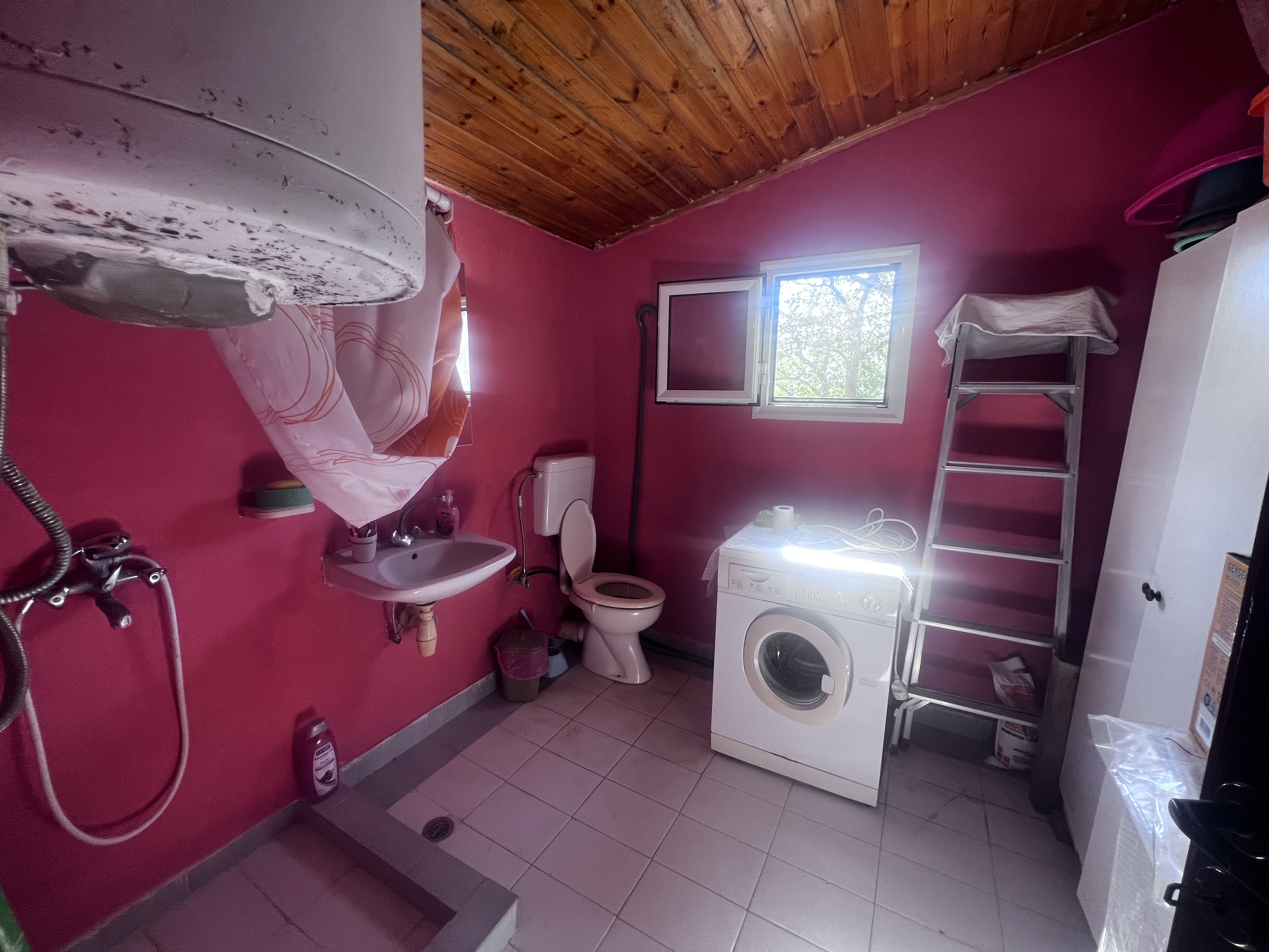 The house is spread in one floor, with a kitchen/dining area as you enter, a bathroom on the left and two bedrooms at the back.