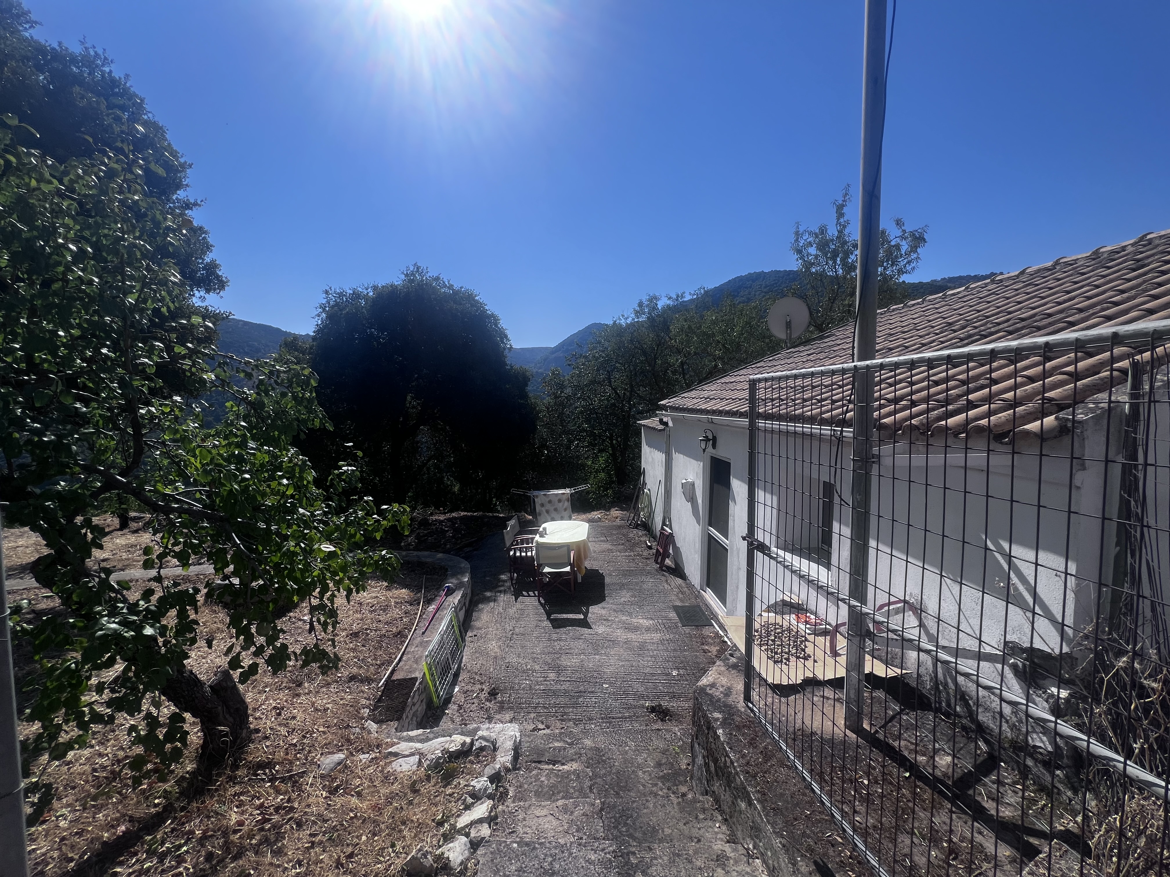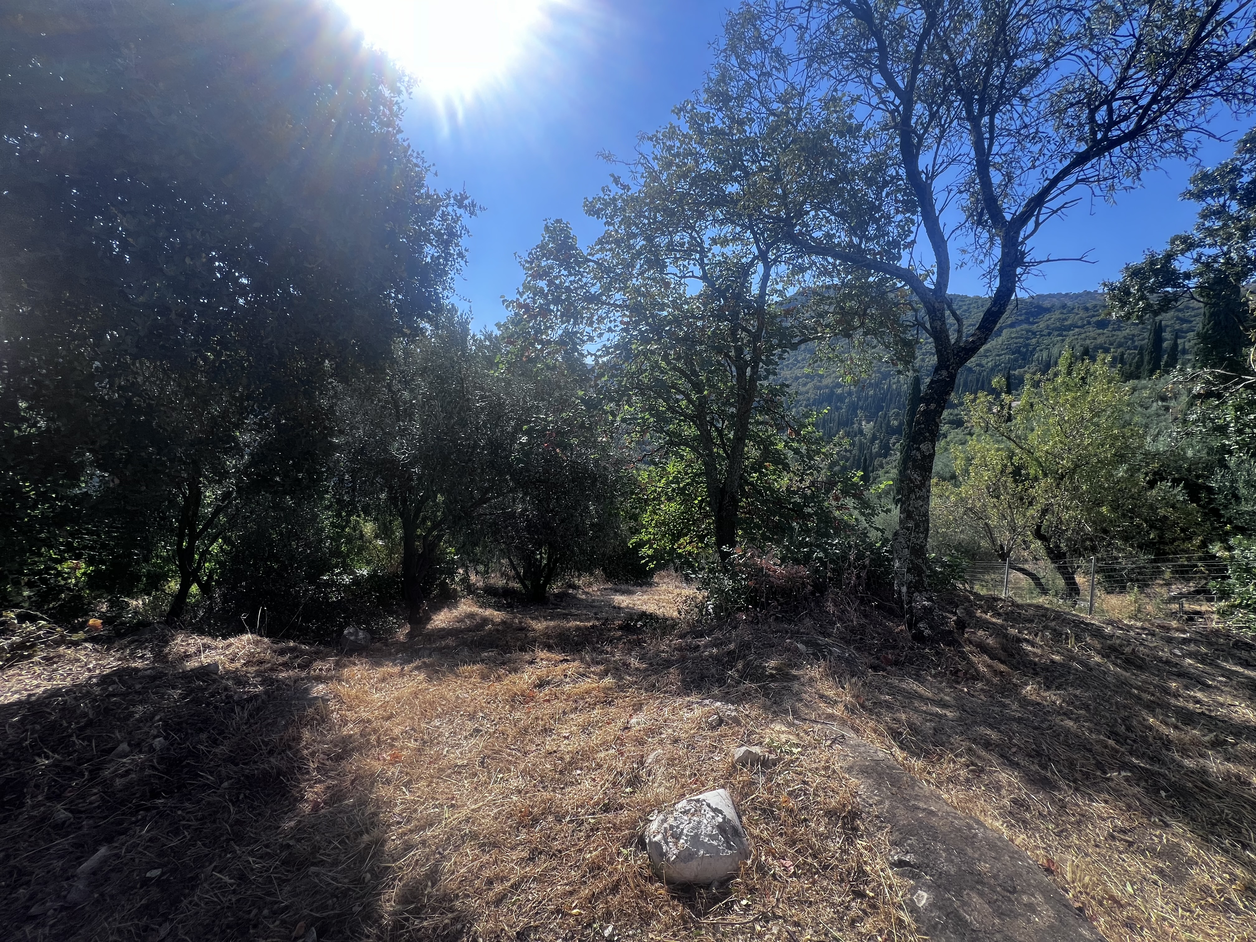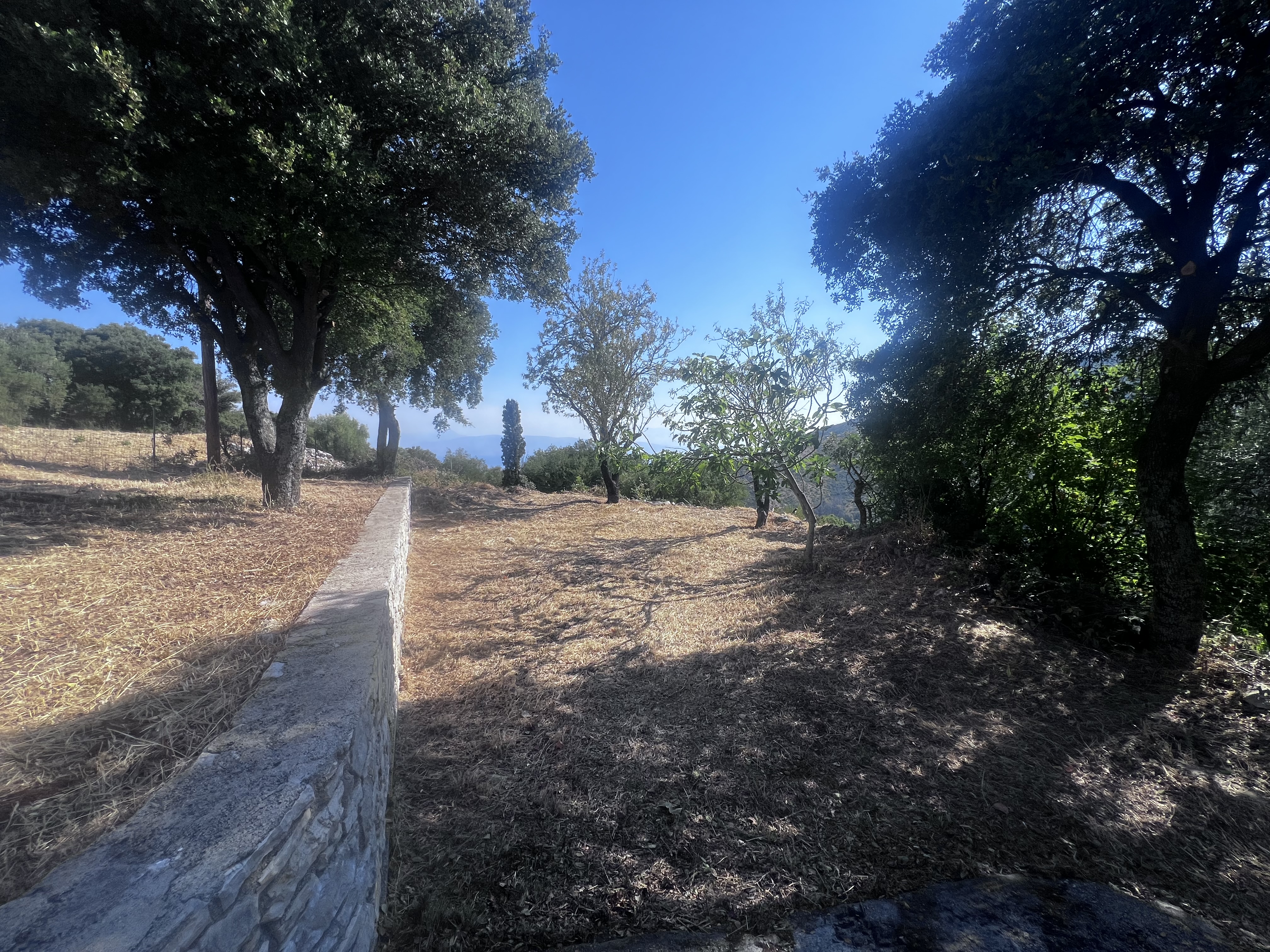 The garden is spacious with enough space for a pool or gardening, surrounded by mountain views and a long distant sea view of the Albanian mountains.