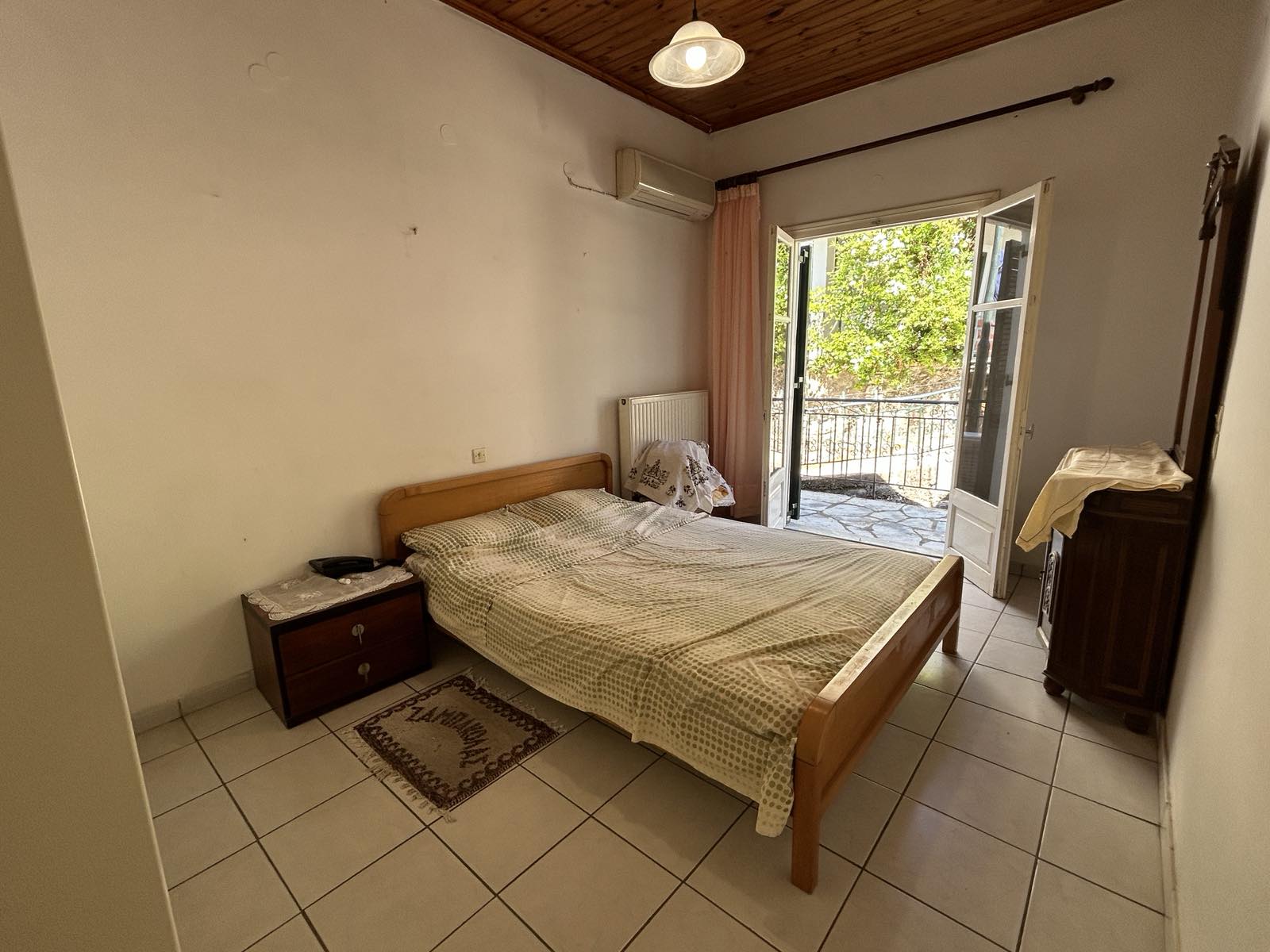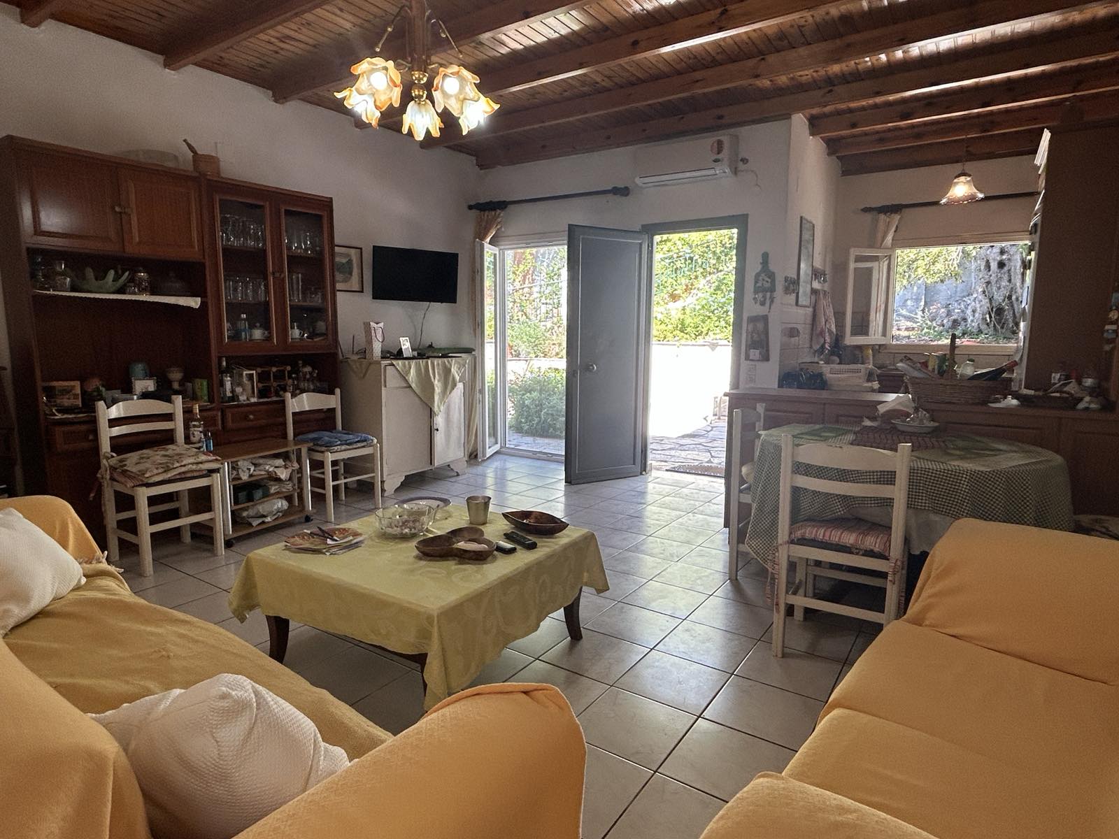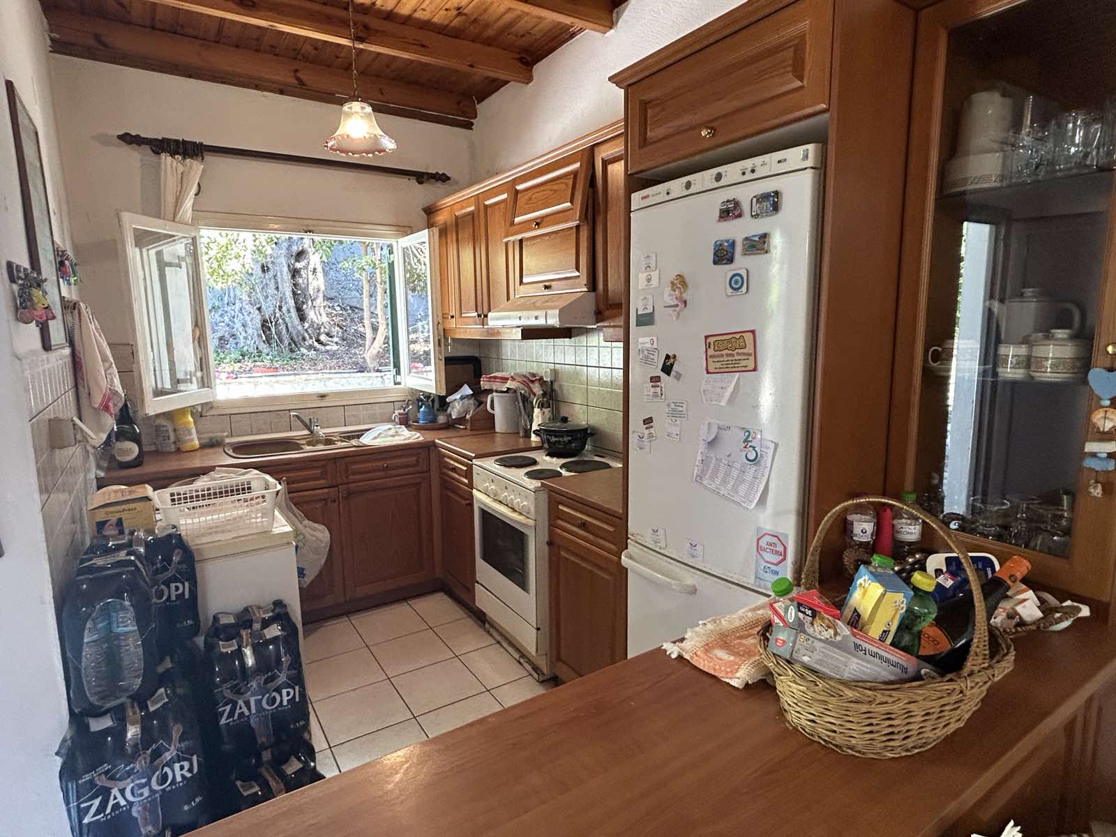 Located just off the road leading up to Viglatsouri, this property has spacious rooms and a paved courtyard at the front. Parking is available on the road, just a few steps away from the gate leading into the property grounds.
