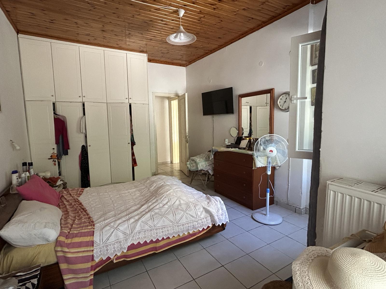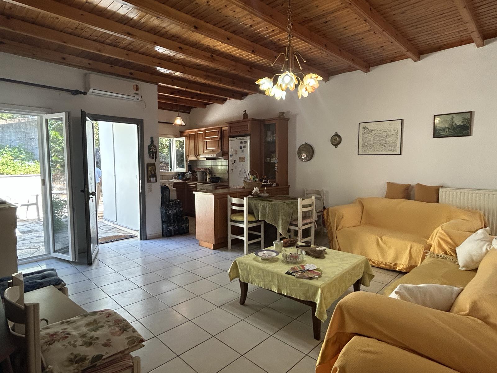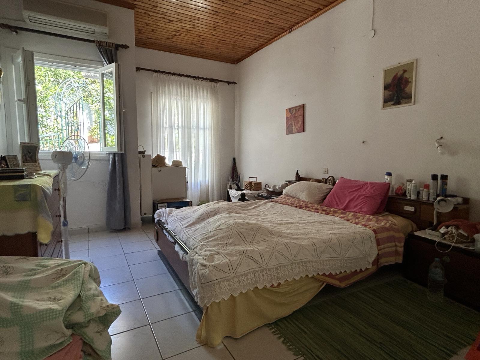 Located just off the road leading up to Viglatsouri, this property has spacious rooms and a paved courtyard at the front. Parking is available on the road, just a few steps away from the gate leading into the property grounds.