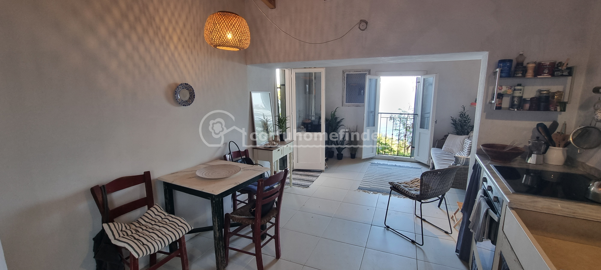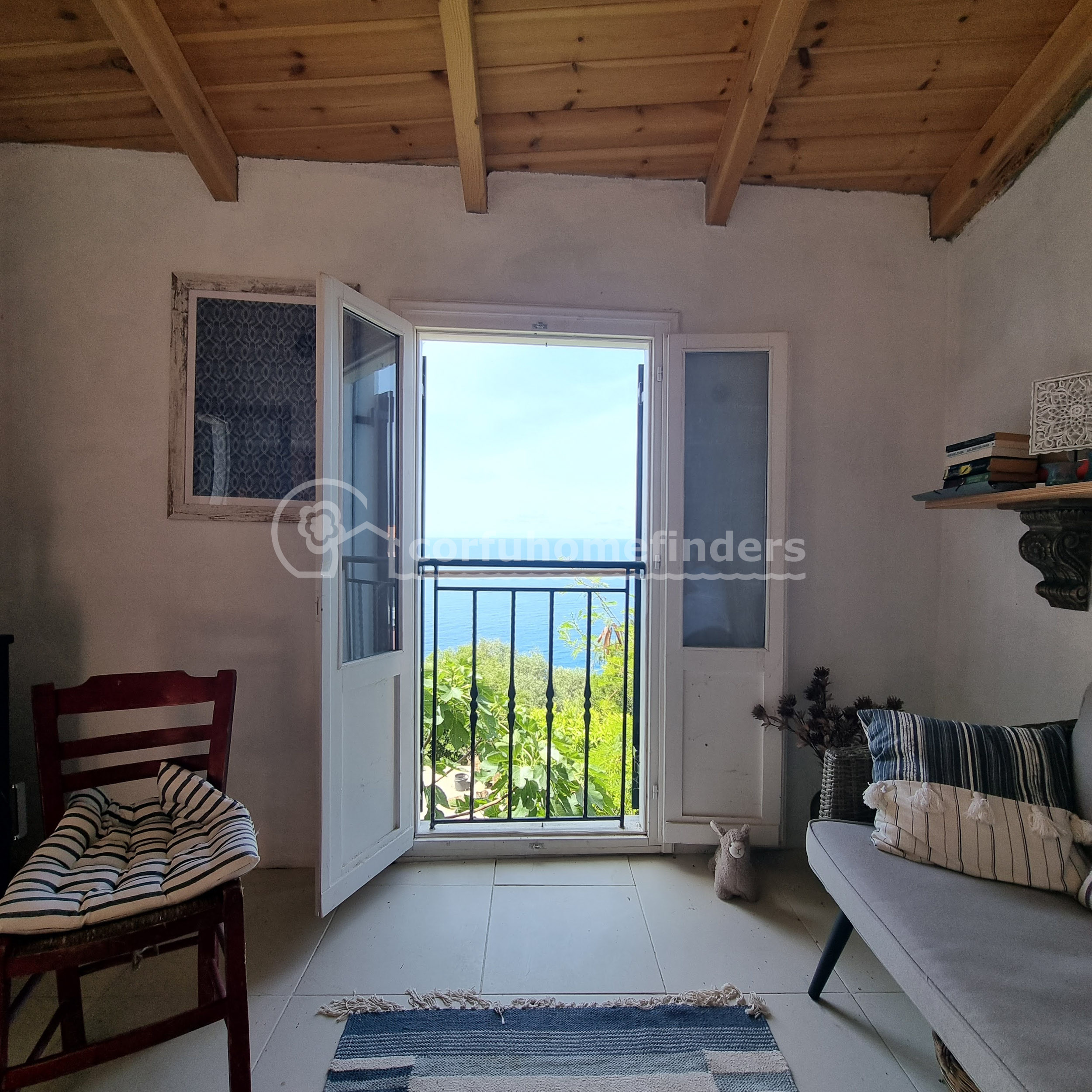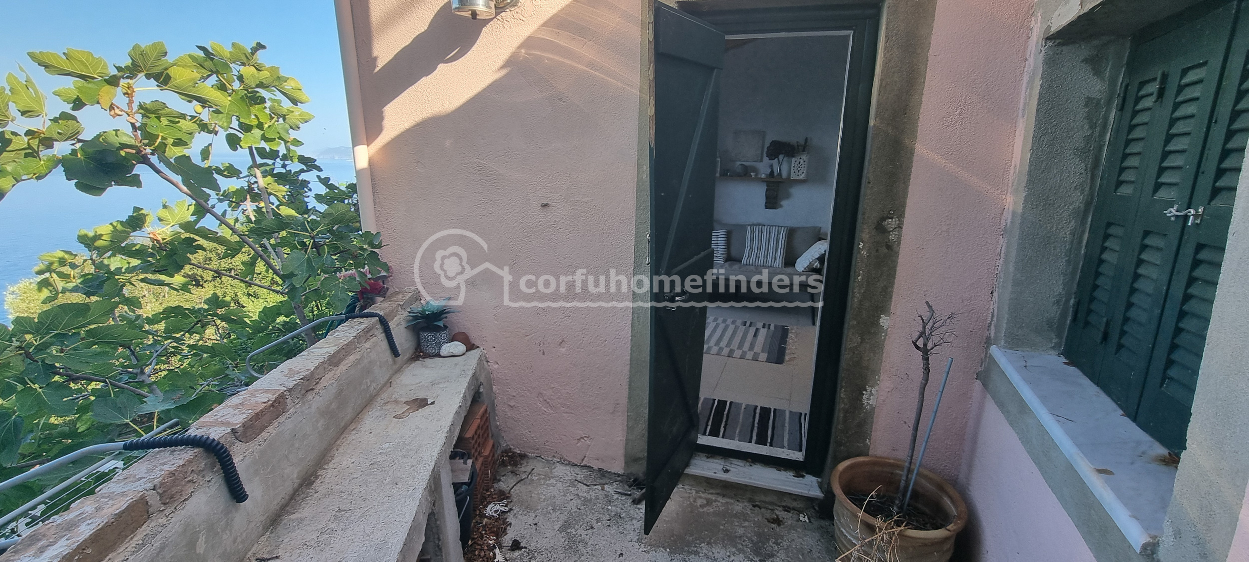 From the living area, there are some French doors which open up to a Juliette-type balcony to take in the stunning sea view and another door to a little terrace area, also with a view.