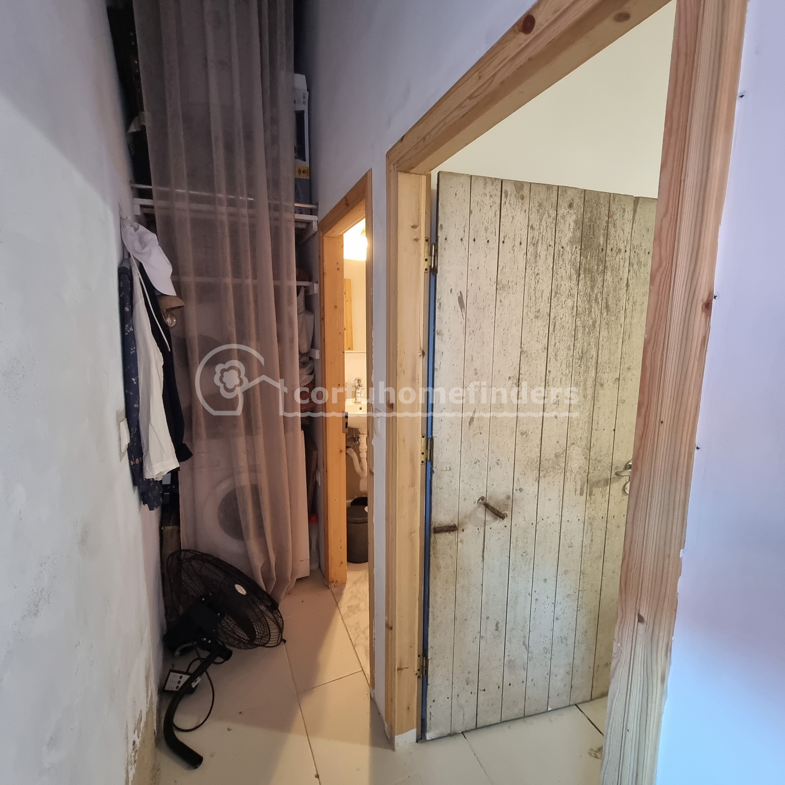 To the left is a small hallway leading you to the bedroom, which has space for a double bed, the shower room and a storage area that houses the washing machine as well.