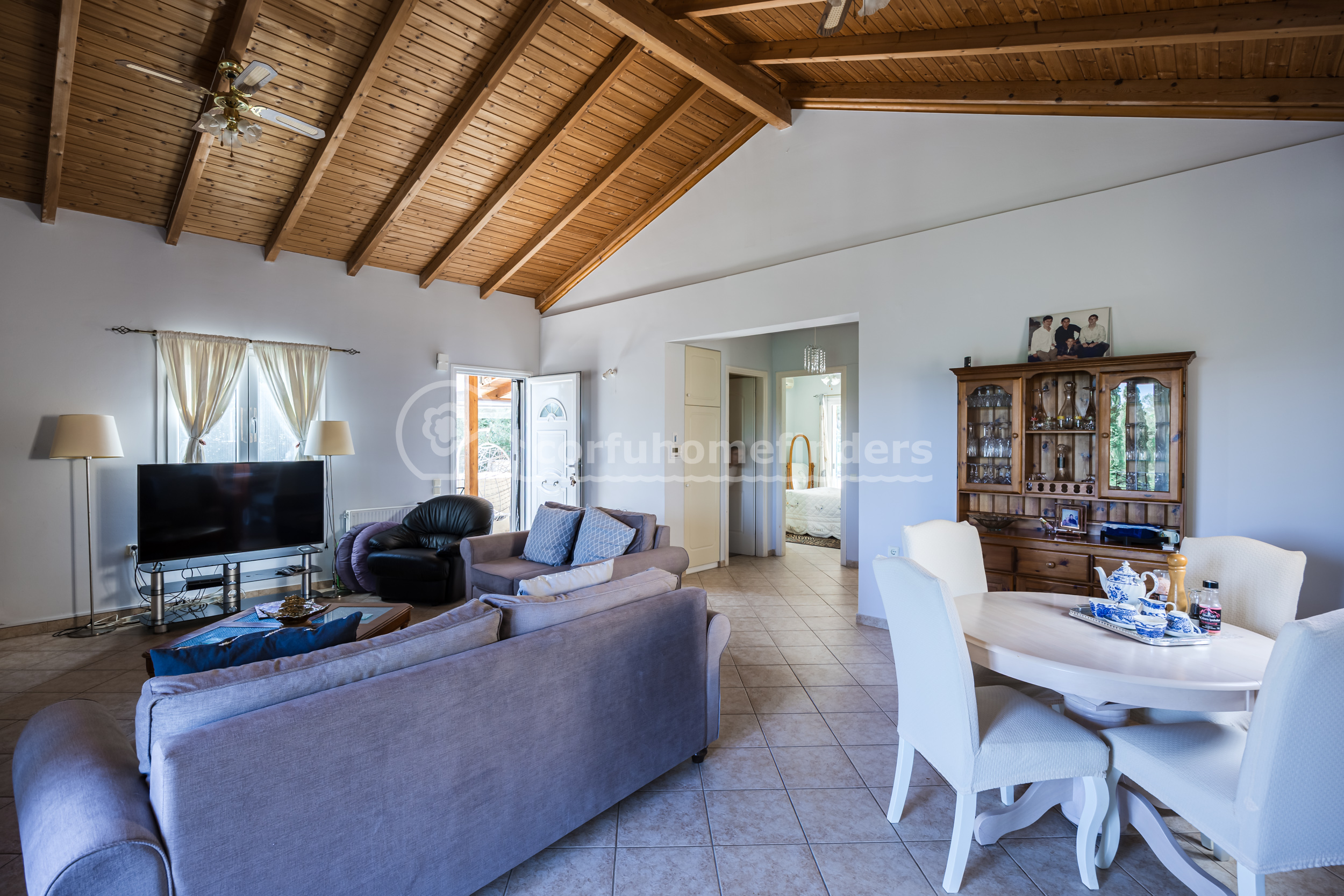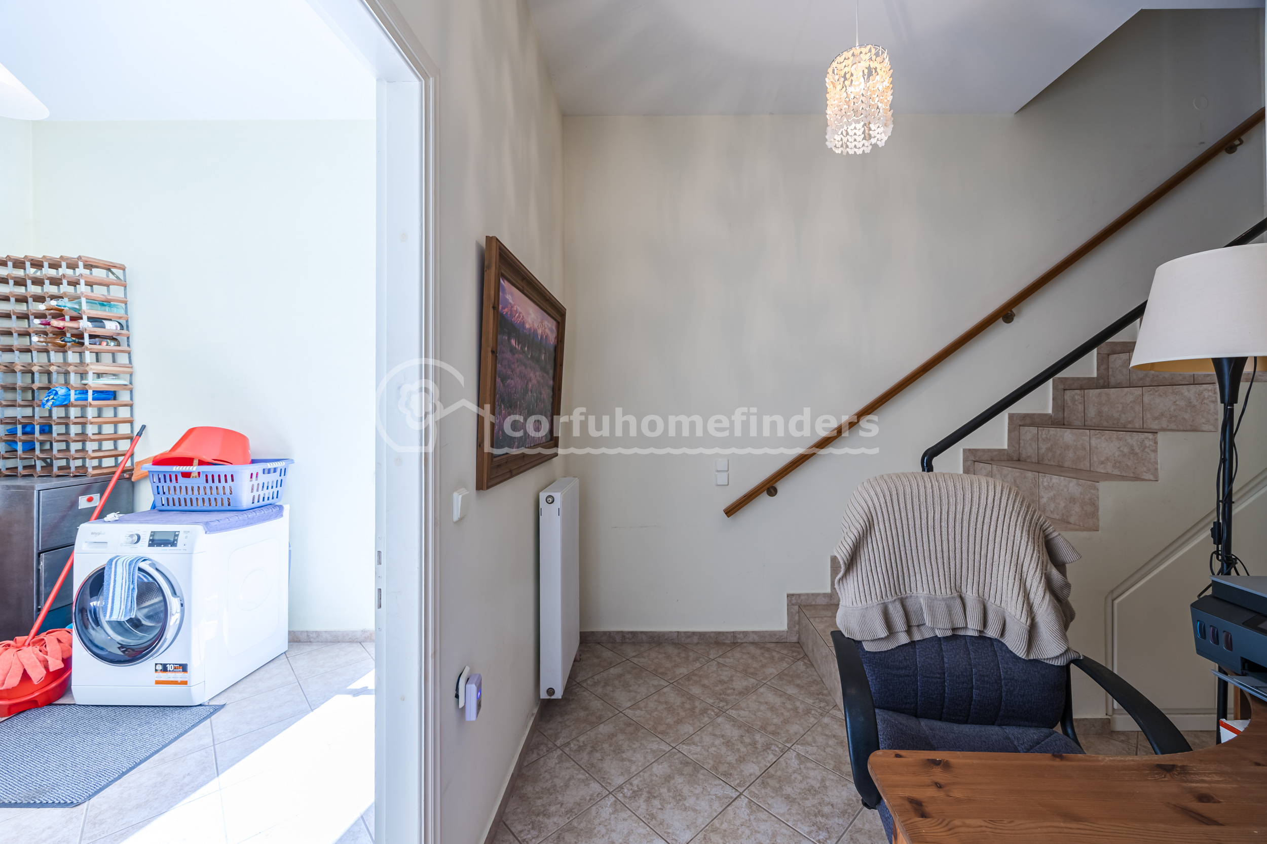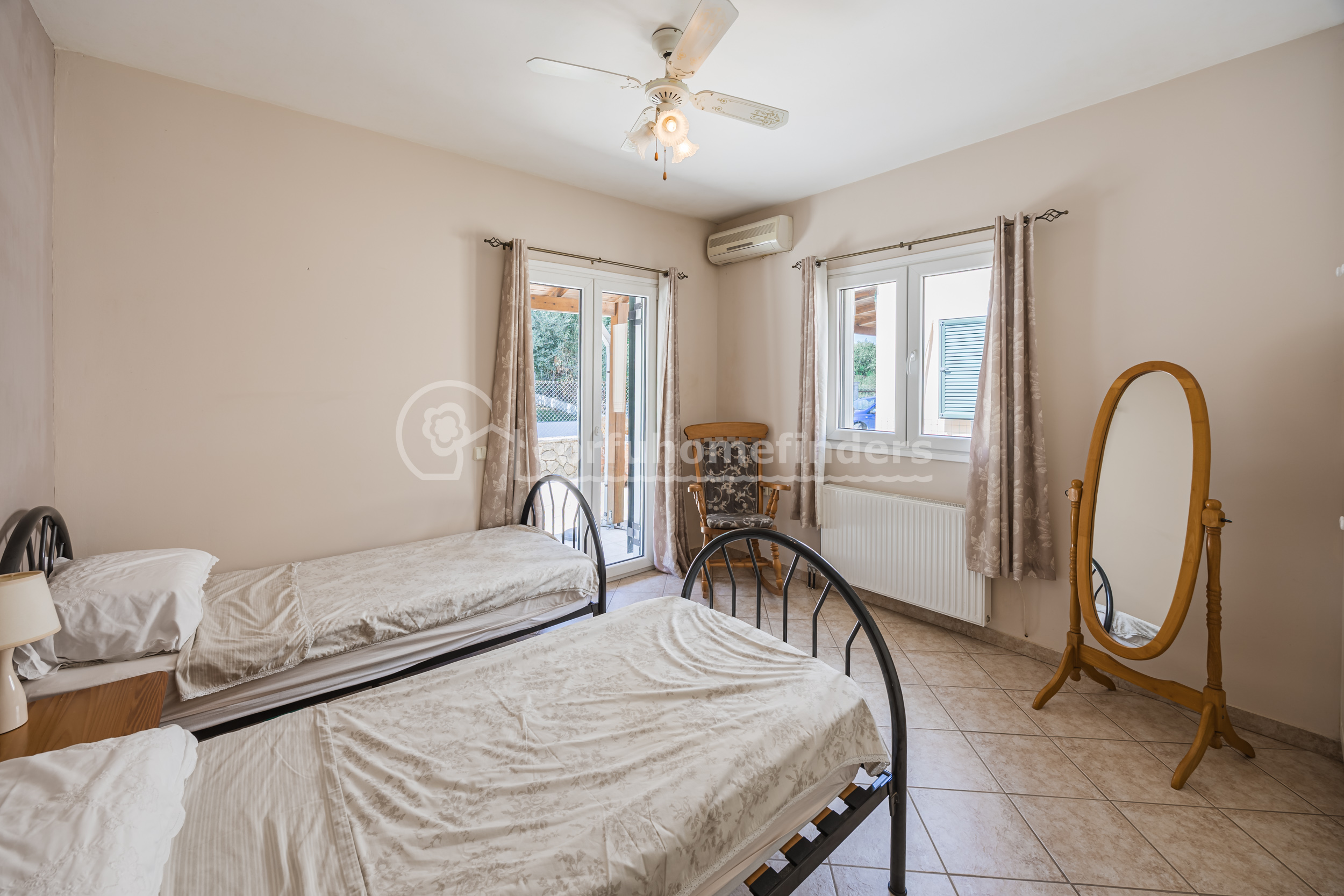 This semi-detached house is on the hillside on the outskirts of Agios Ioannis, so it enjoys very attractive views towards the village and the surrounding countryside.