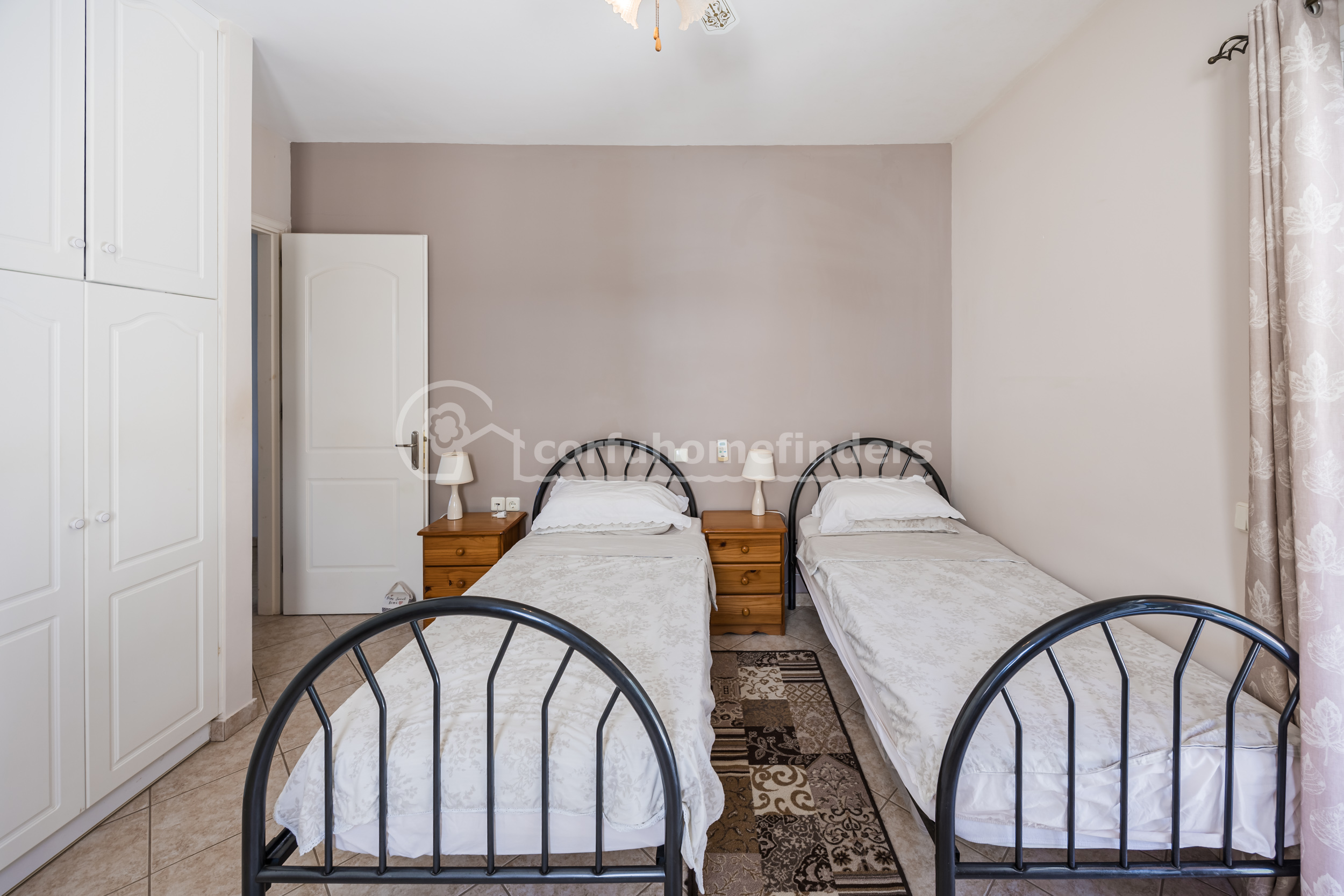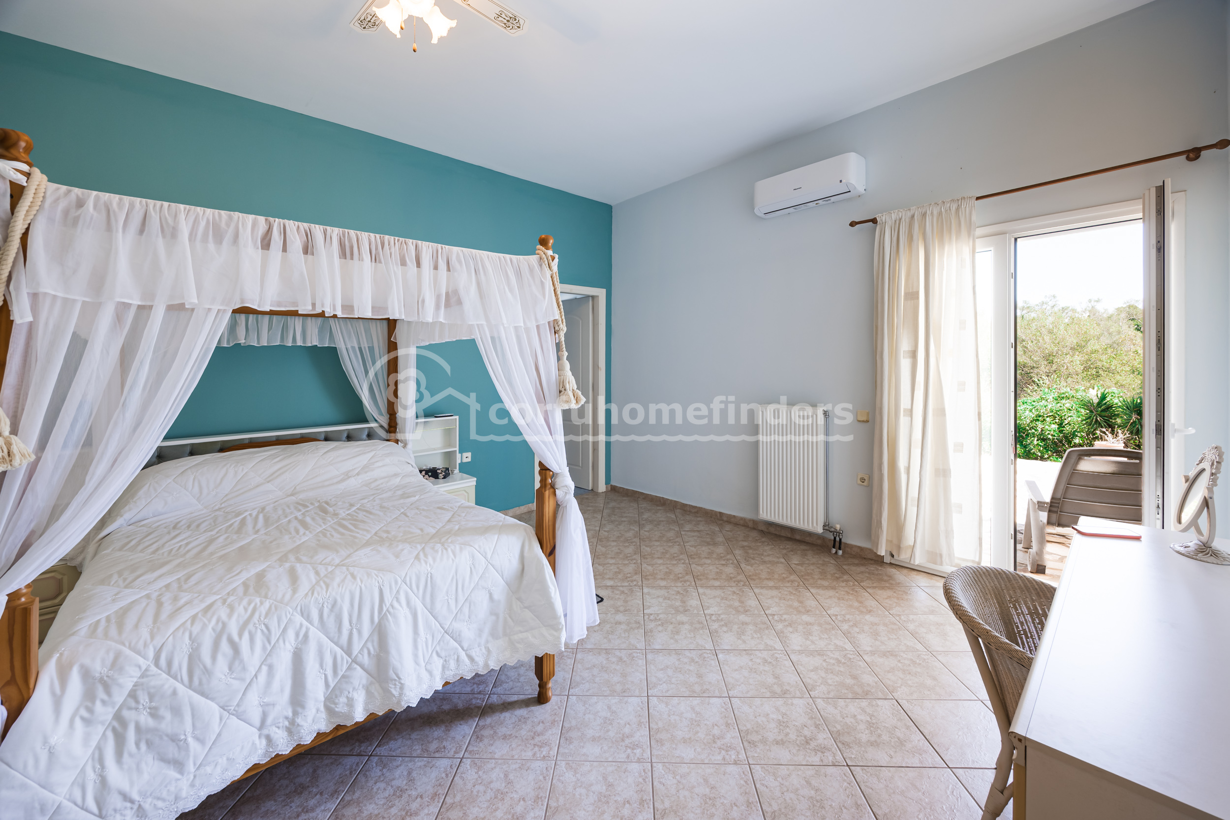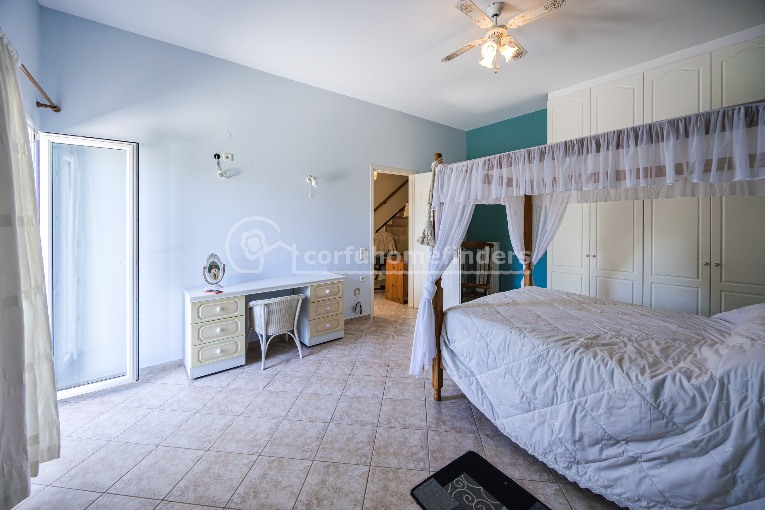 This semi-detached house is on the hillside on the outskirts of Agios Ioannis, so it enjoys very attractive views towards the village and the surrounding countryside.