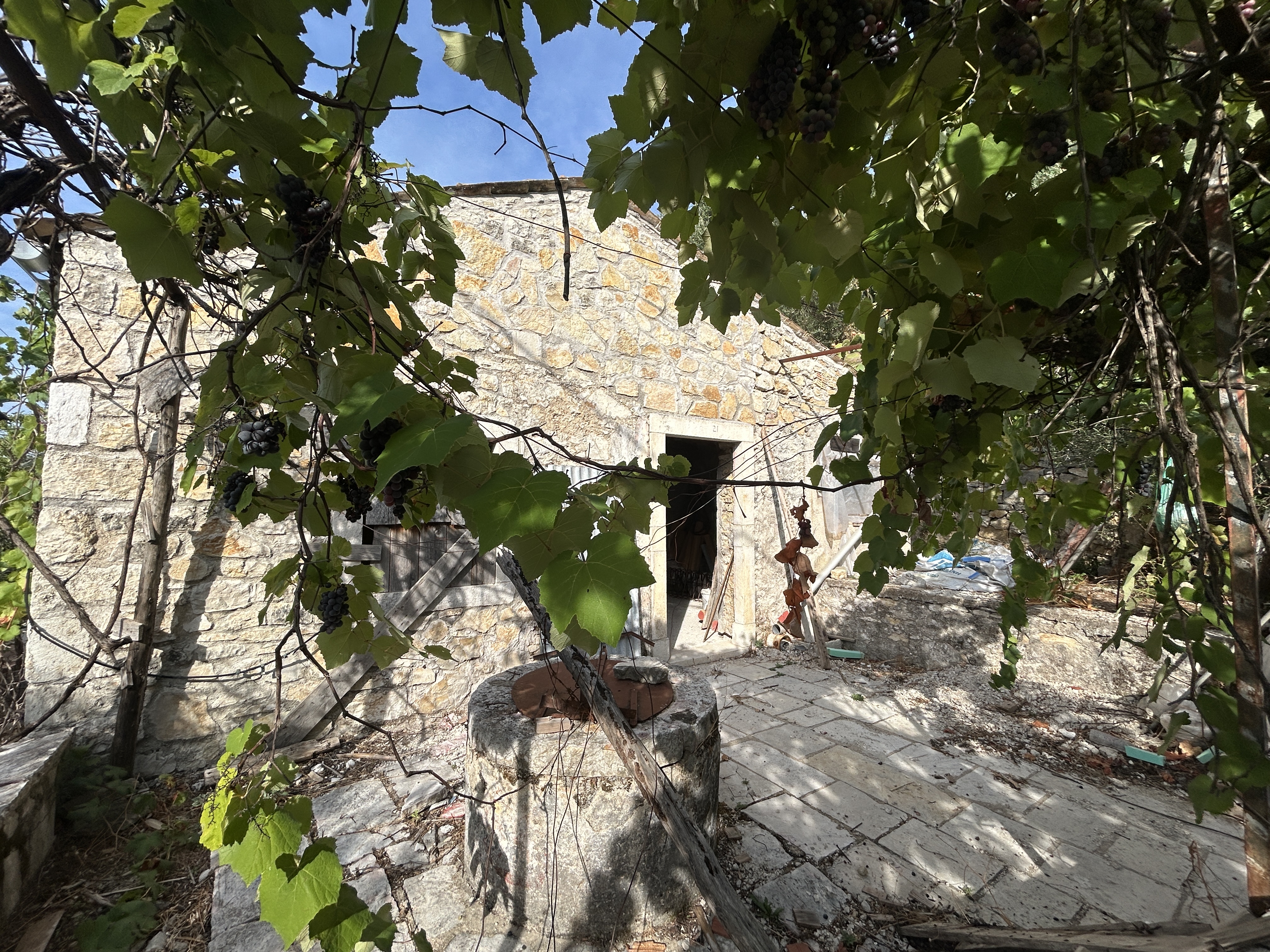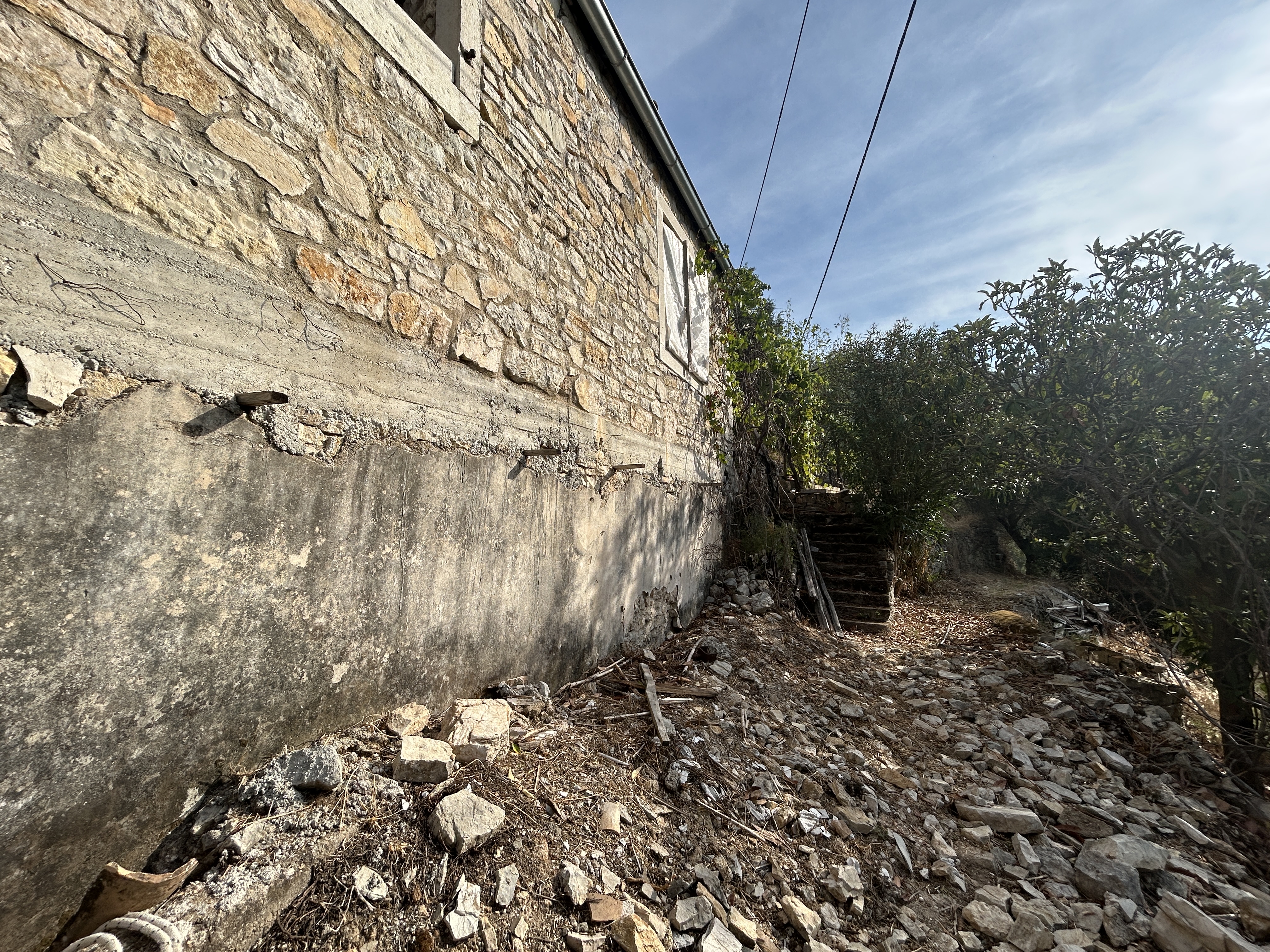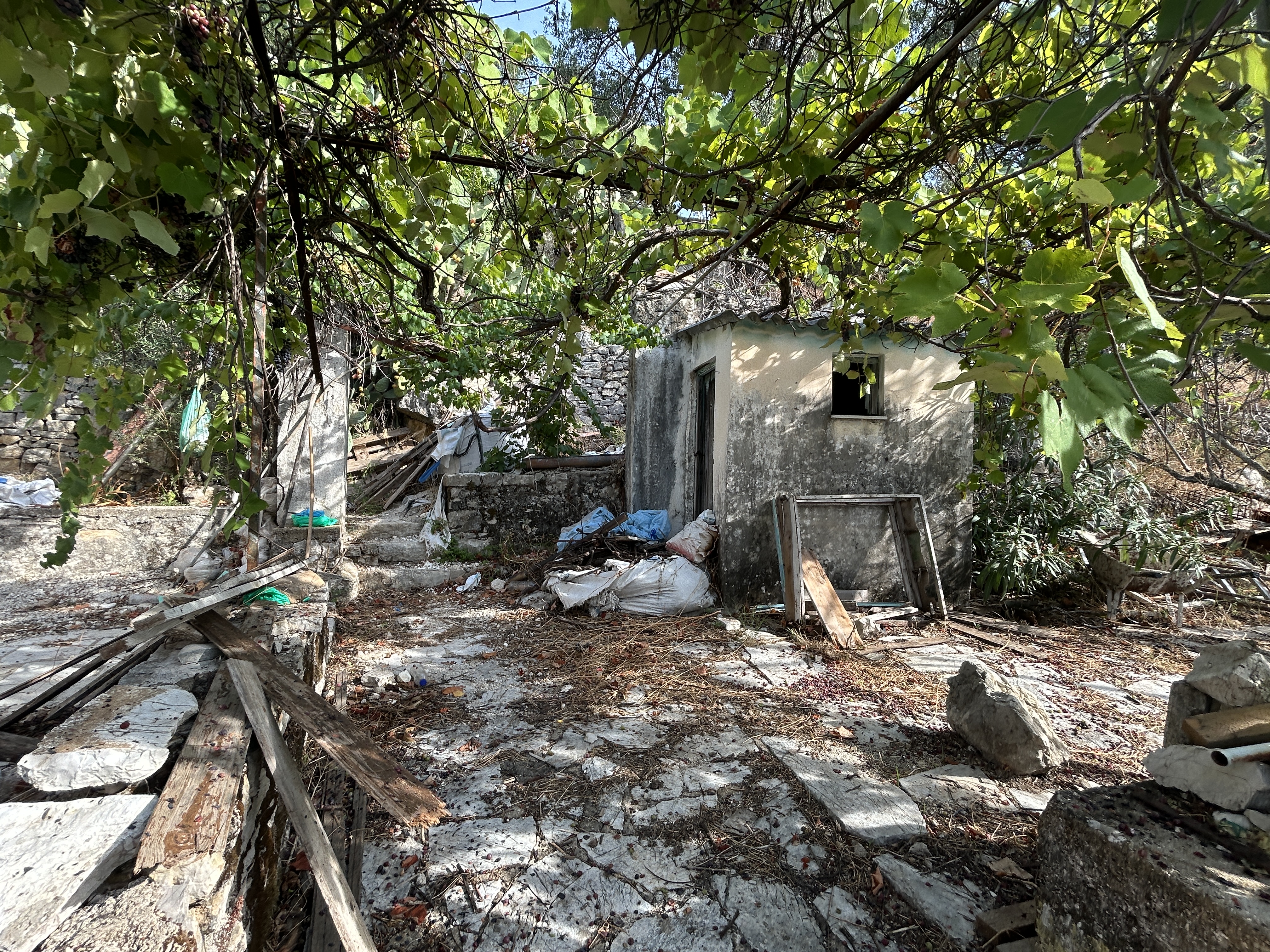 The house is on the end of a row of about five houses, and is probably the most attractive of all the properties. It has a pretty grapevine covered terrace to one side, and a terraced olive grove below.