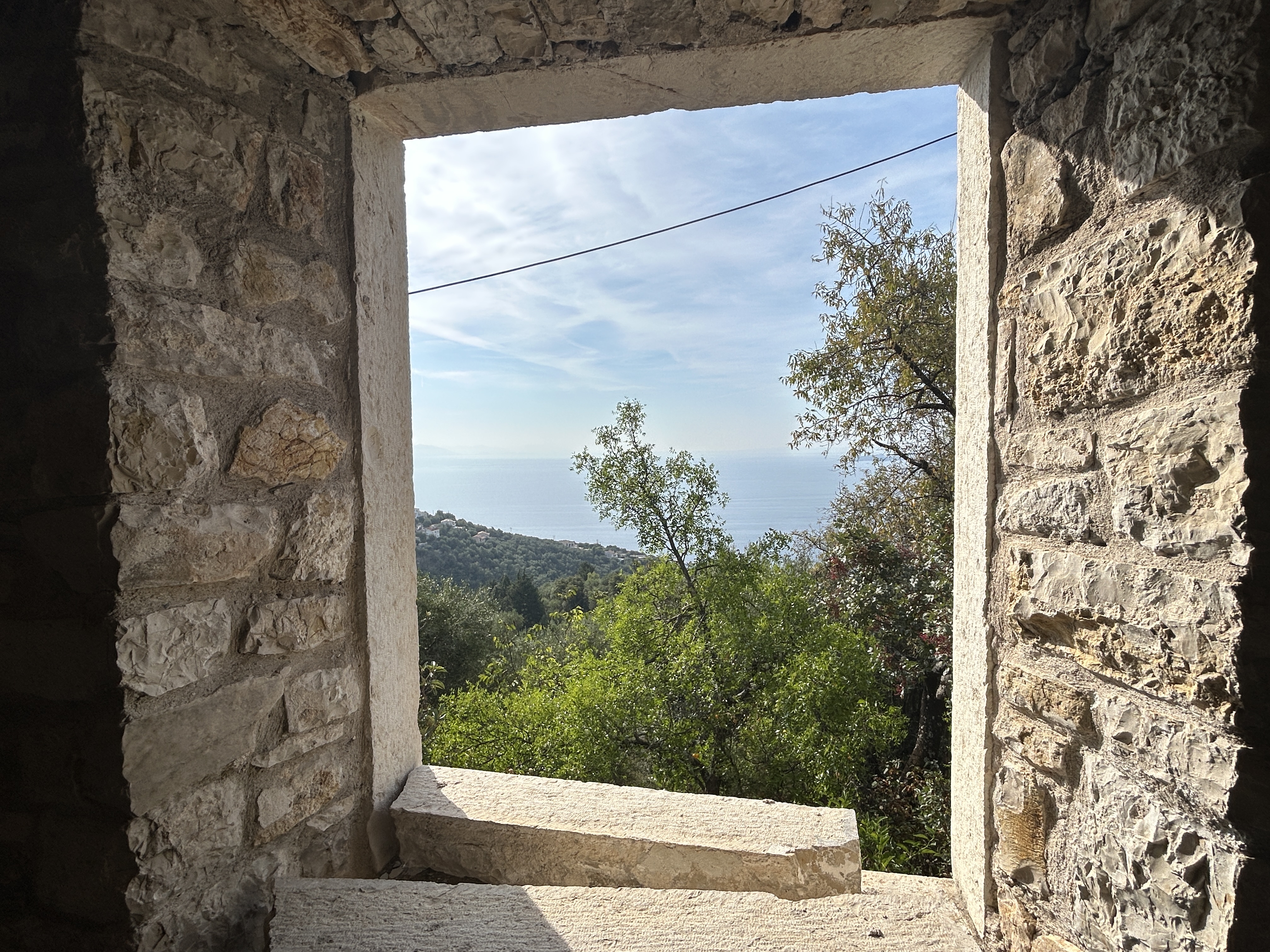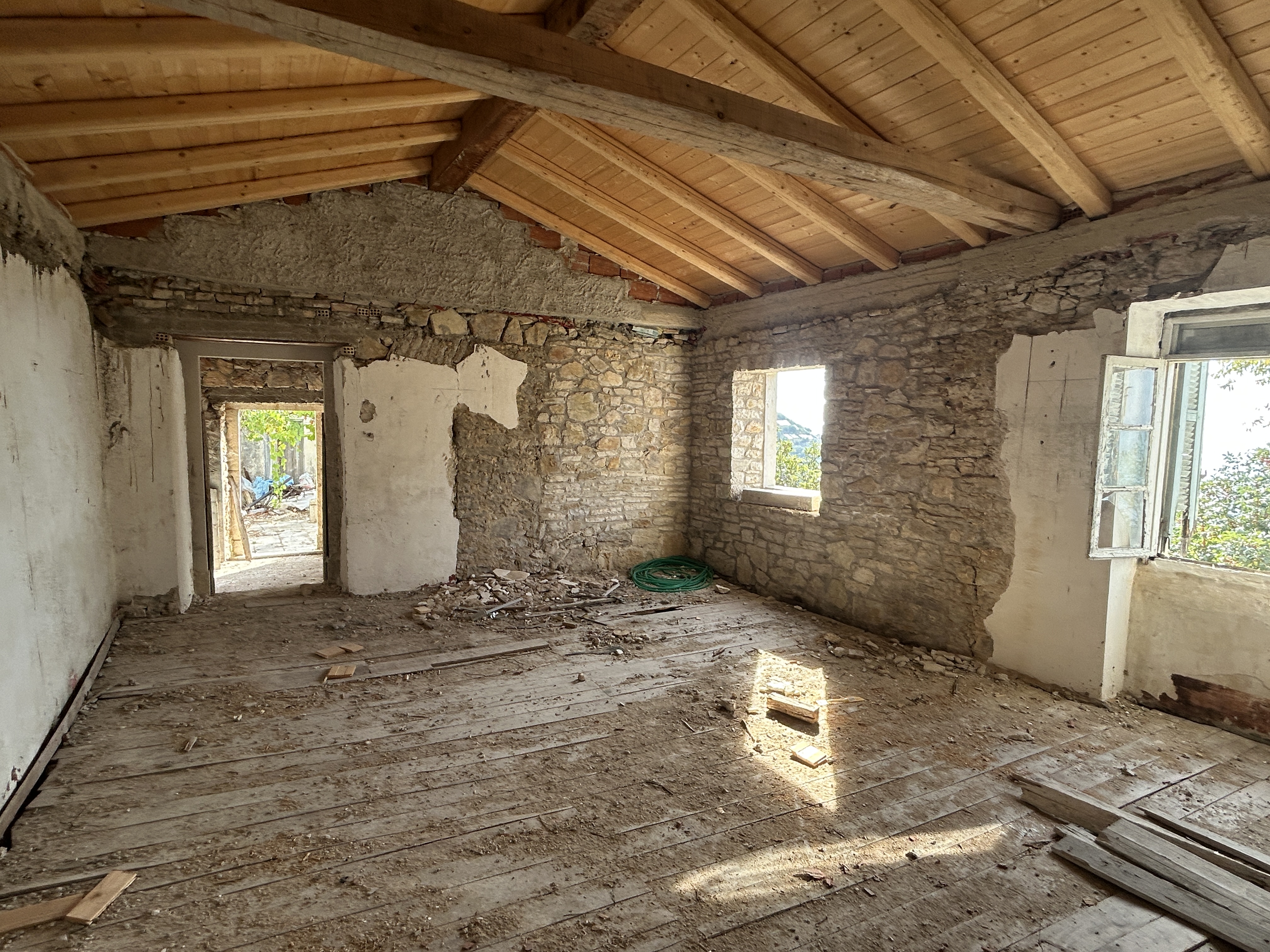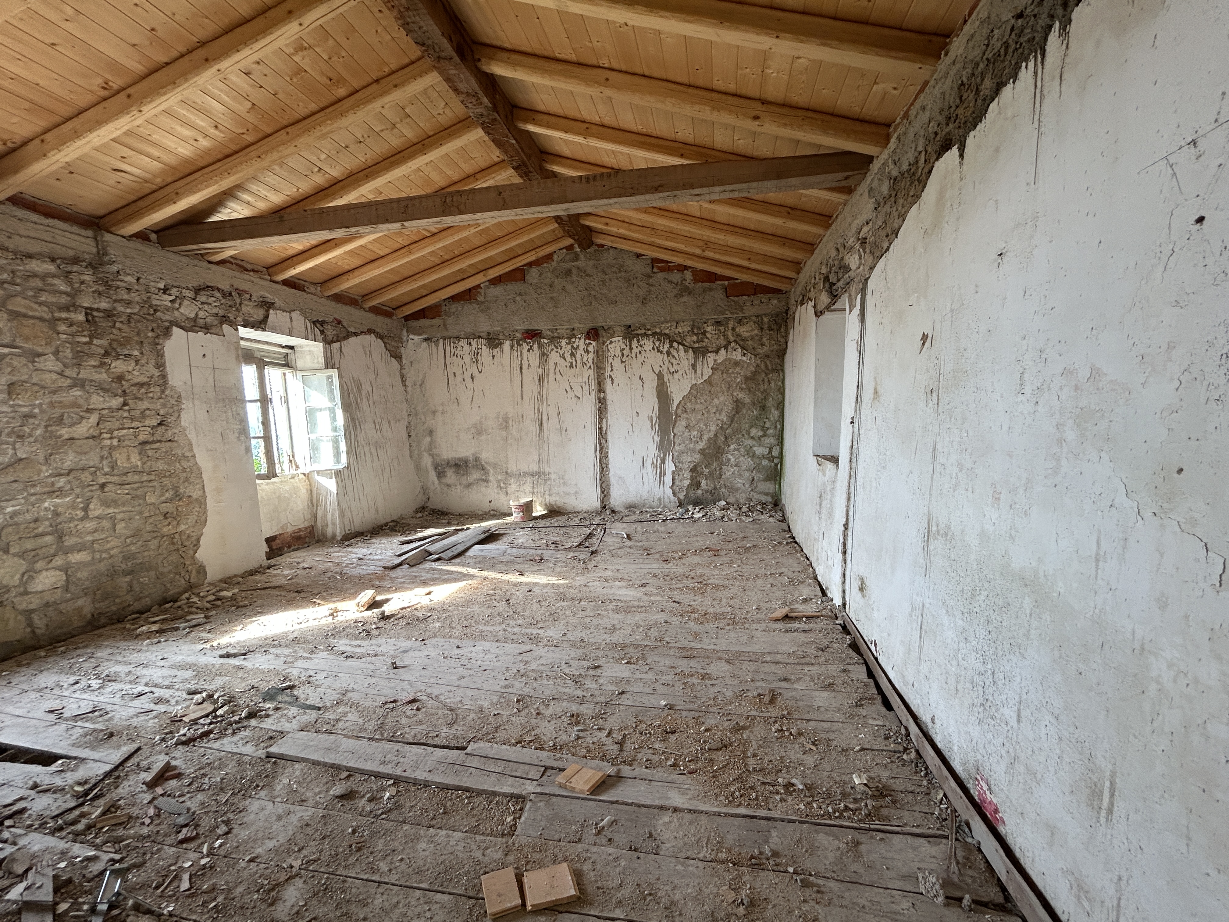 The house is on the end of a row of about five houses, and is probably the most attractive of all the properties. It has a pretty grapevine covered terrace to one side, and a terraced olive grove below.