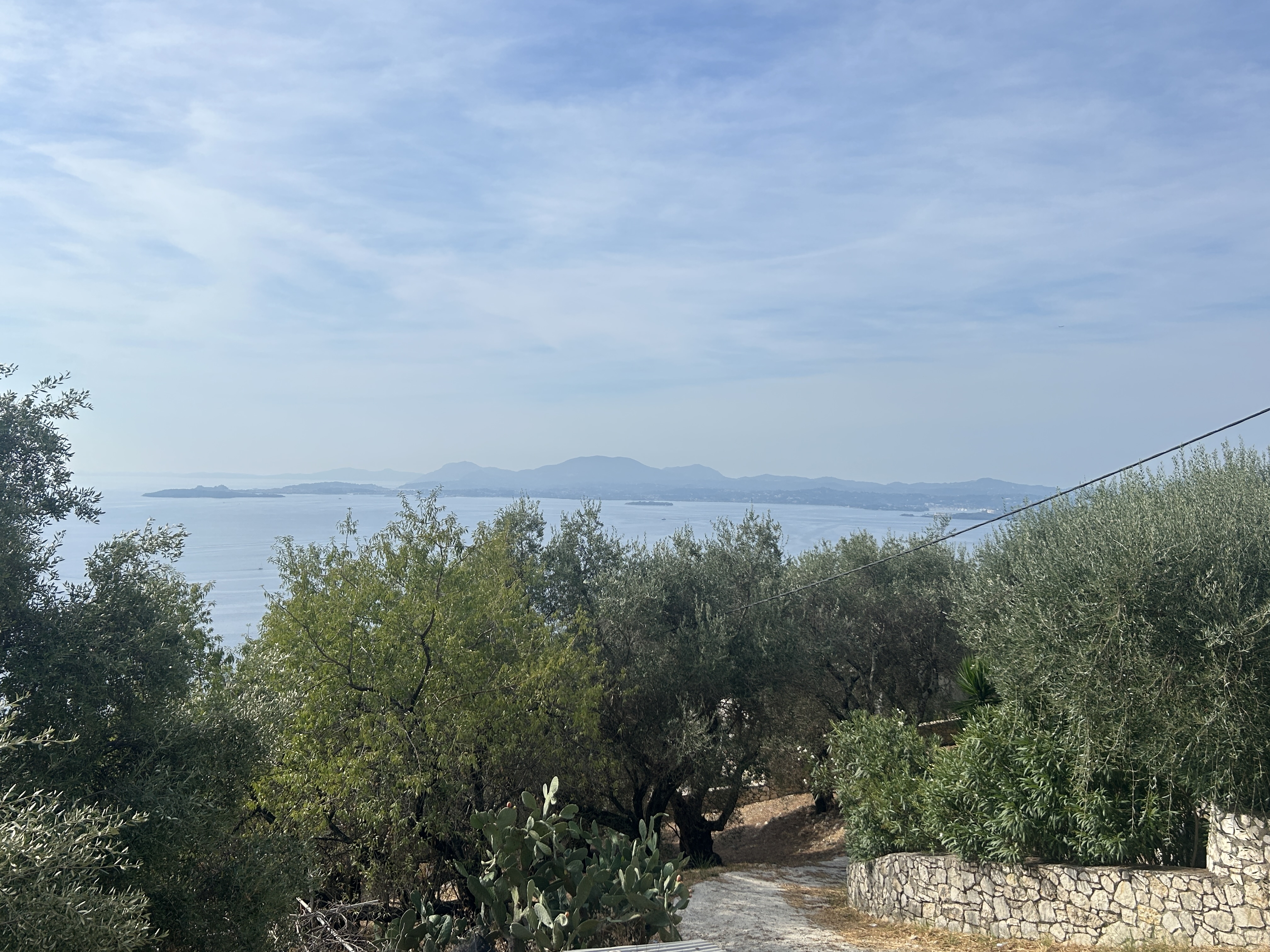 Trifonas Land is quite high up in the hills in the area of Viglatsouri, with great sea views over the olive trees towards Corfu Town.
